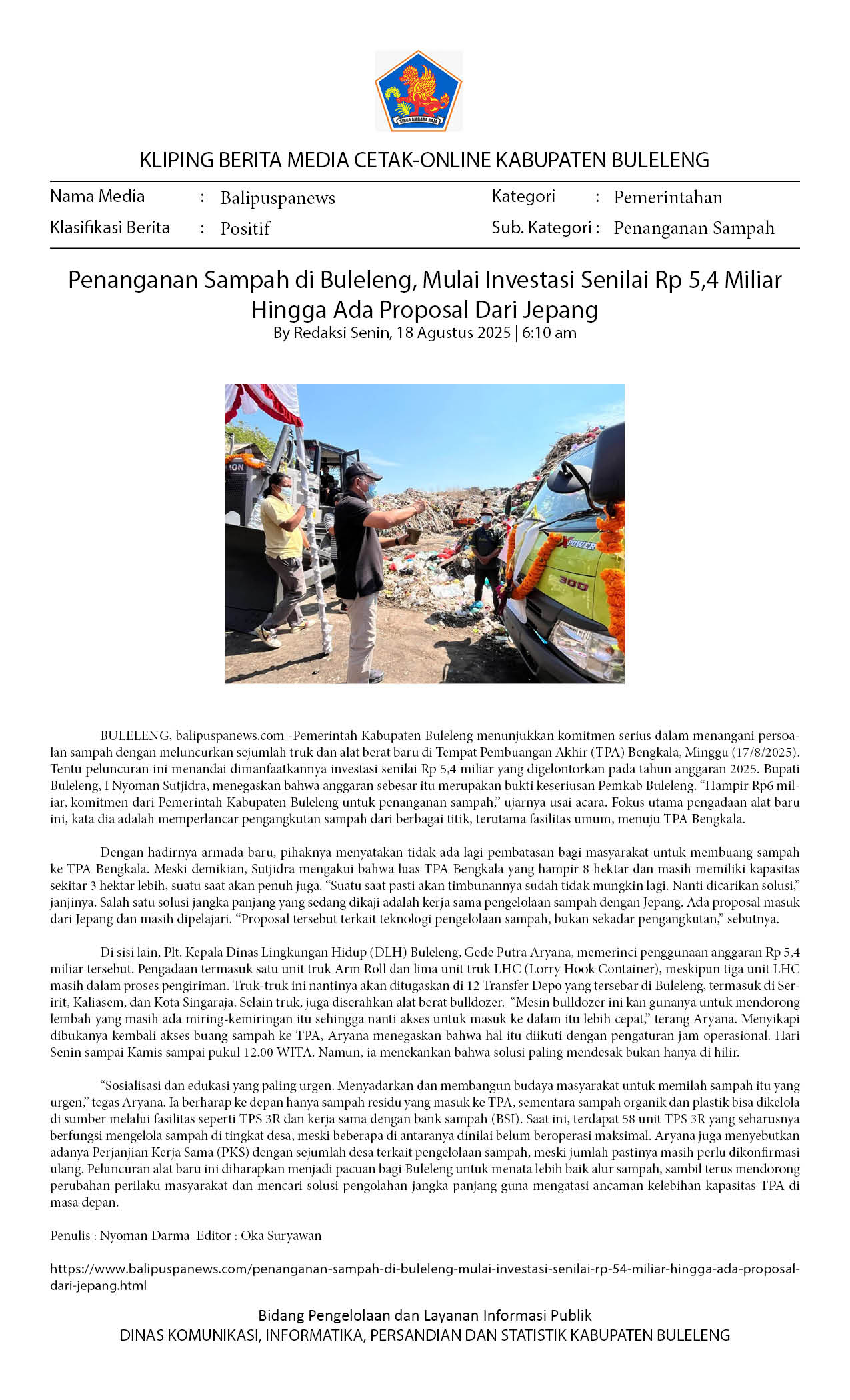 PENANGANAN SAMPAH DI BULELENG, MULAI INVESTASI SENILAI RP 5,4 MILIAR HINGGA ADA PROPOSAL DARI JEPANG