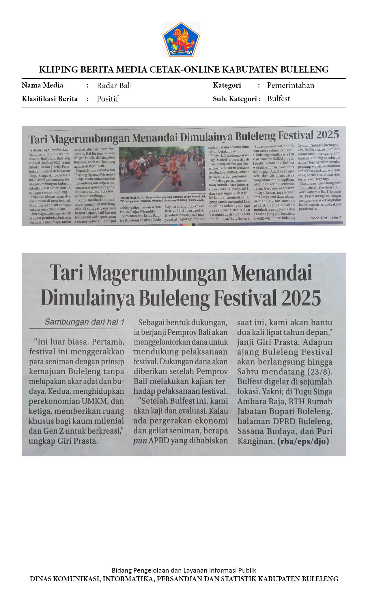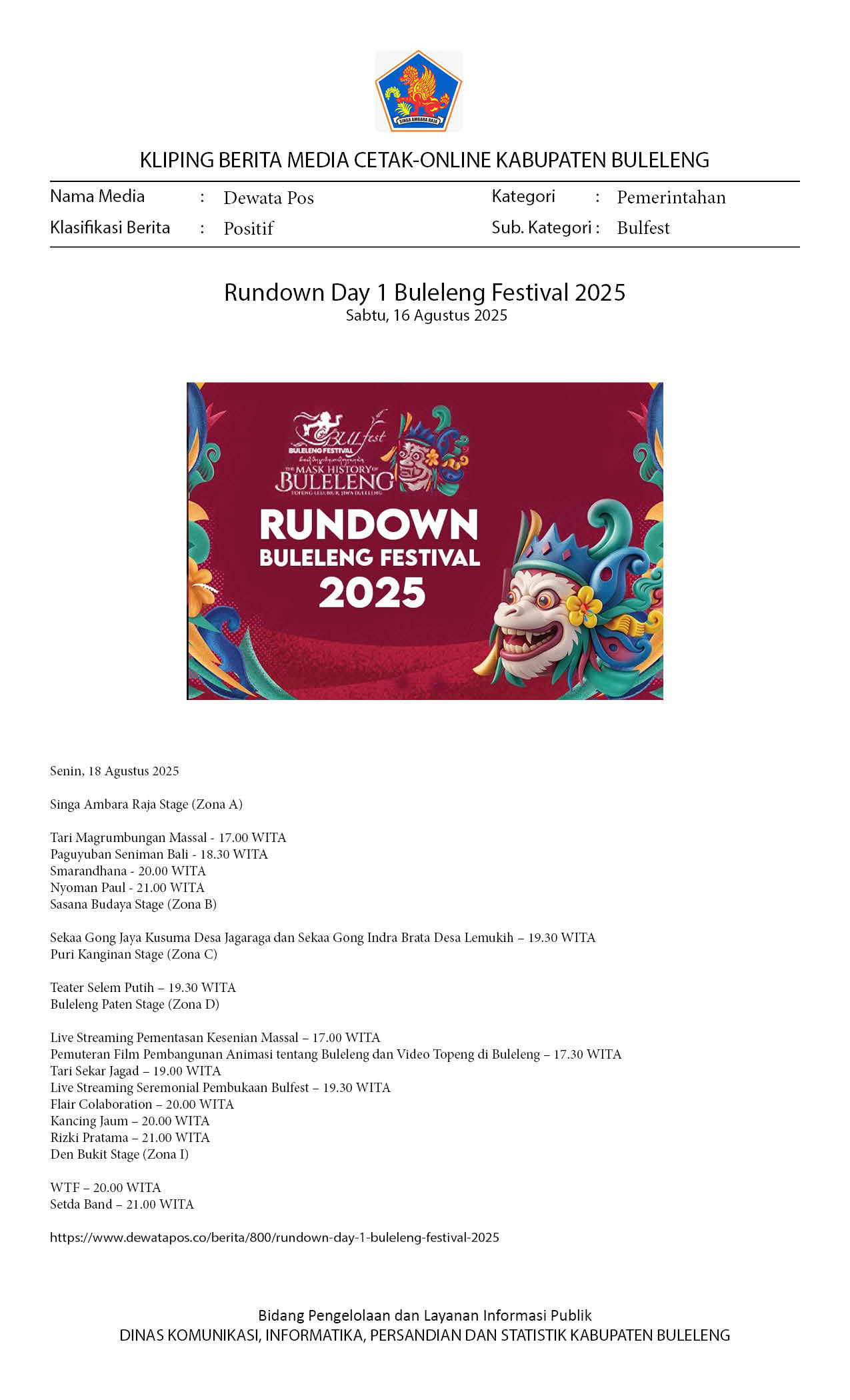 RUNDOWN DAY 1 BULELENG FESTIVAL 2025