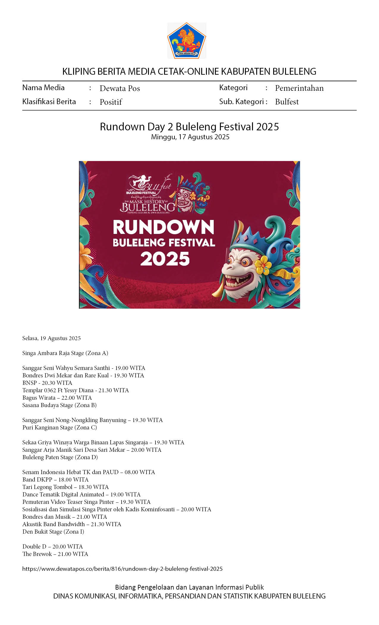 RUNDOWN DAY 2 BULELENG FESTIVAL 2025