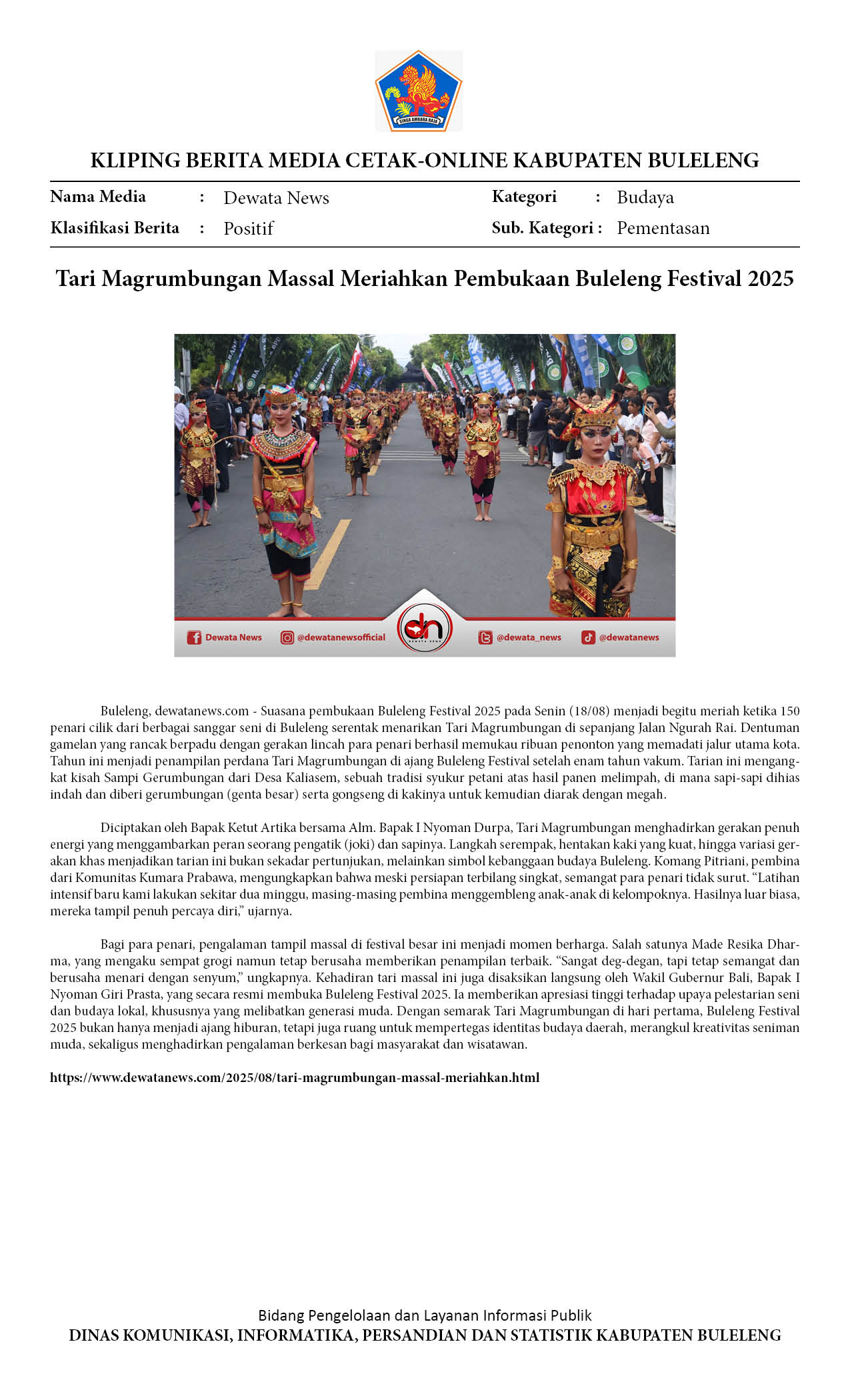 Kliping Kategori Budaya Edisi 20 Agustus 2025