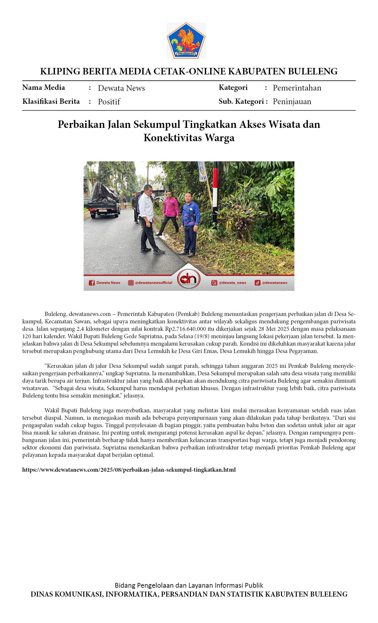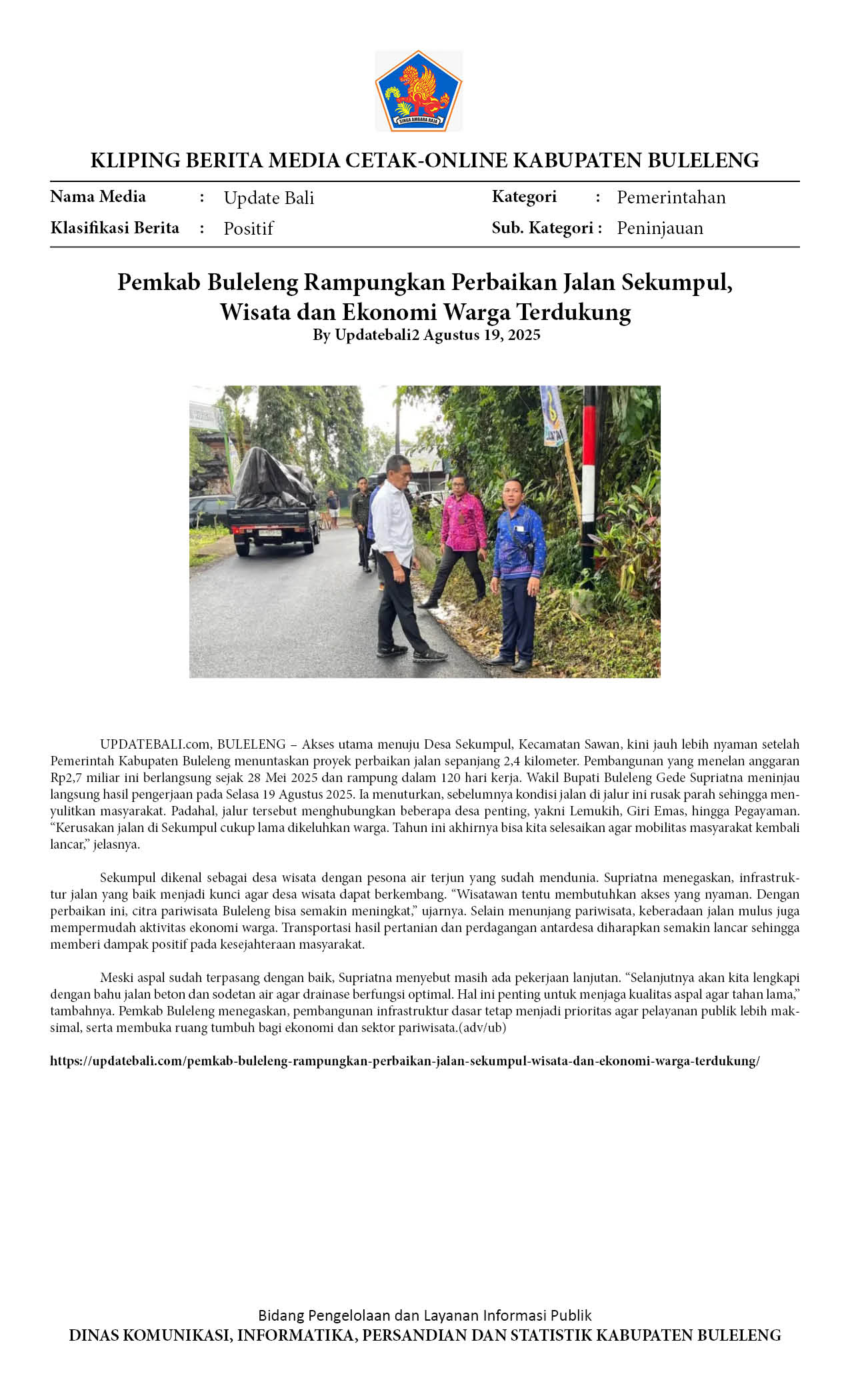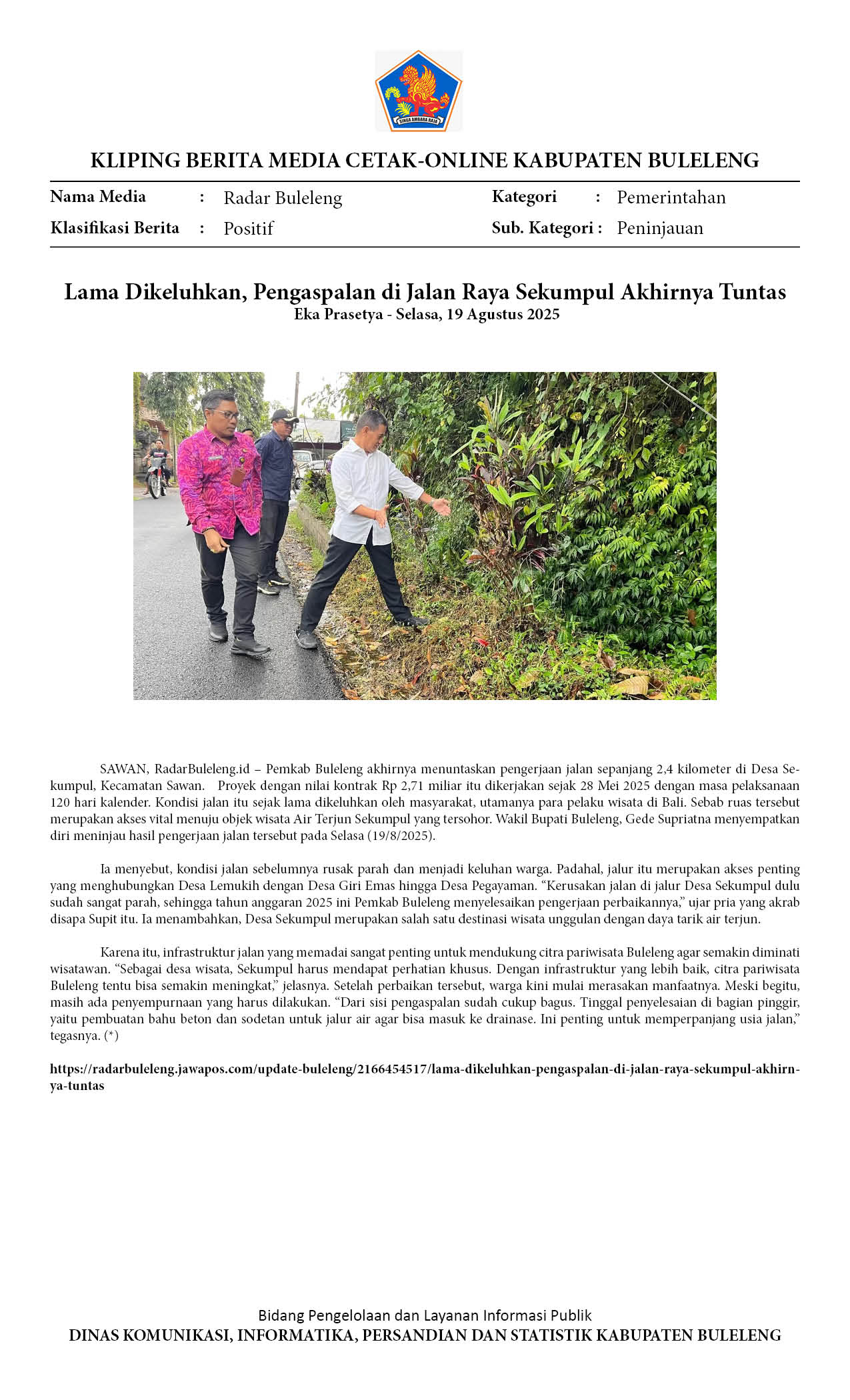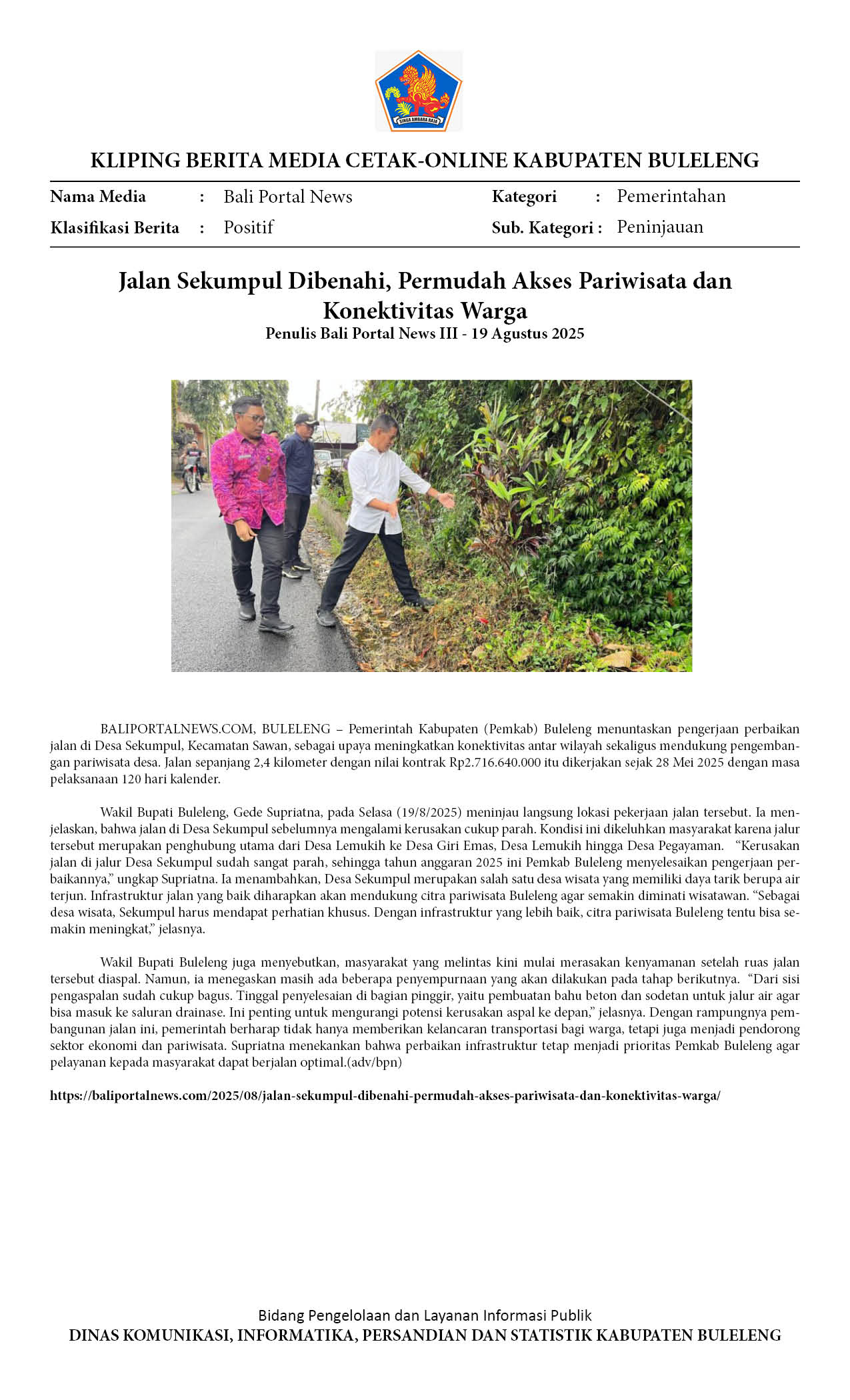 PEMKAB BULELENG RAMPUNGKAN PERBAIKAN JALAN SEKUMPUL, WISATA DAN EKONOMI WARGA TERDUKUNG
