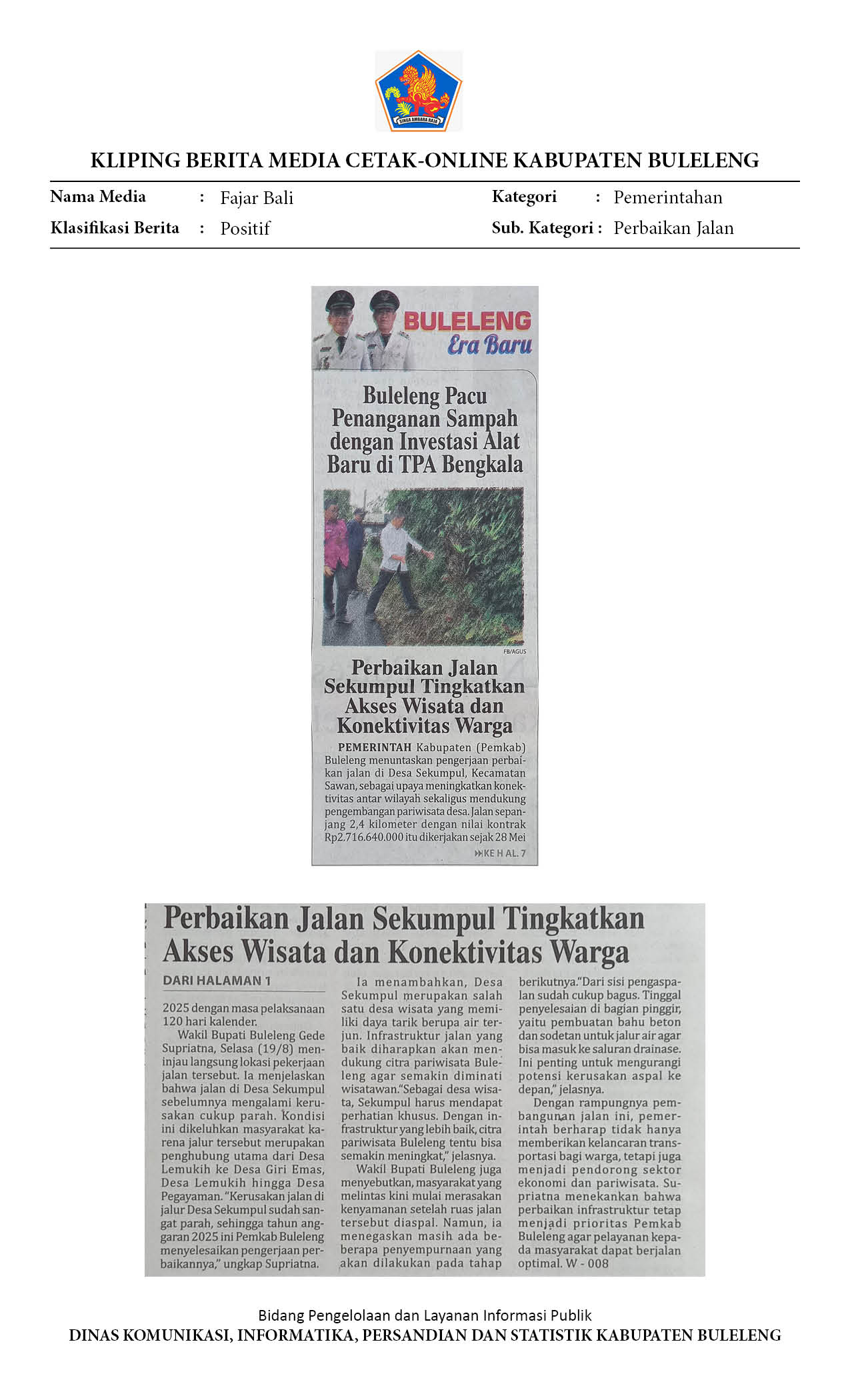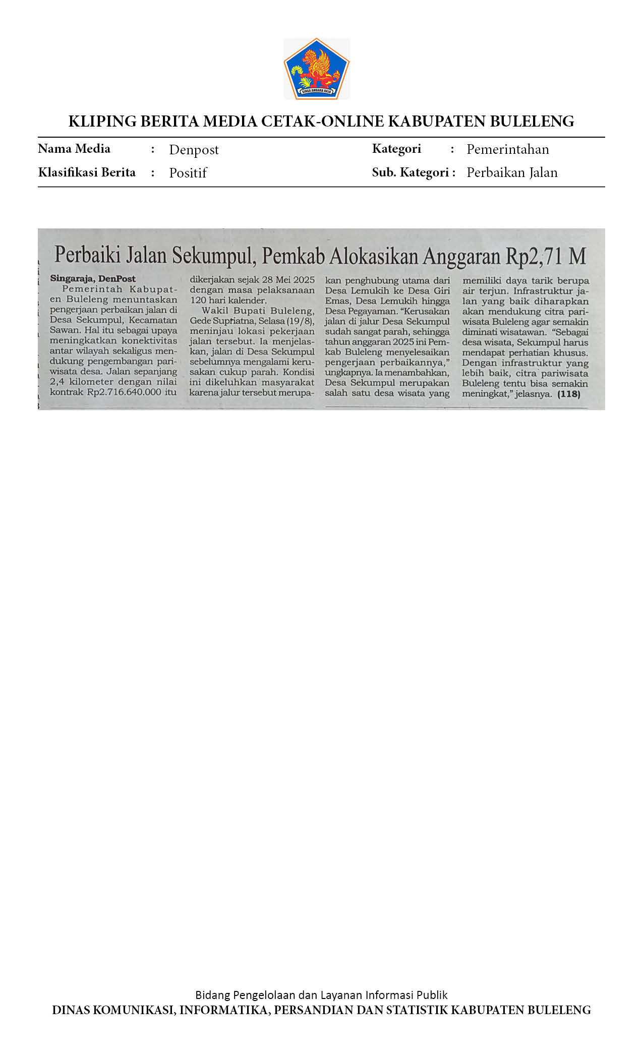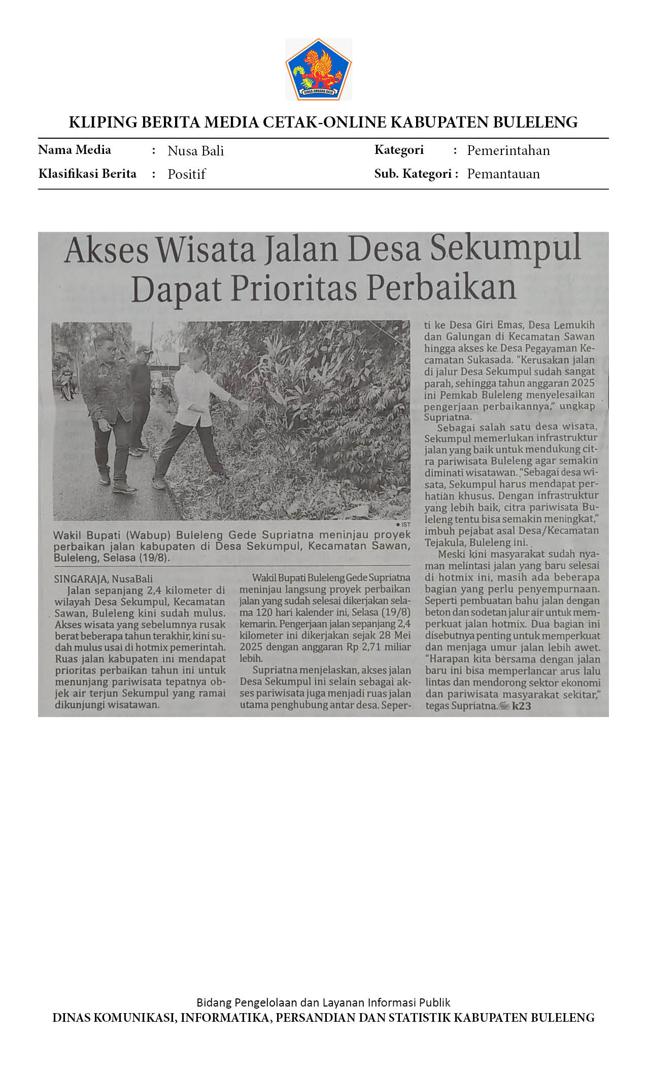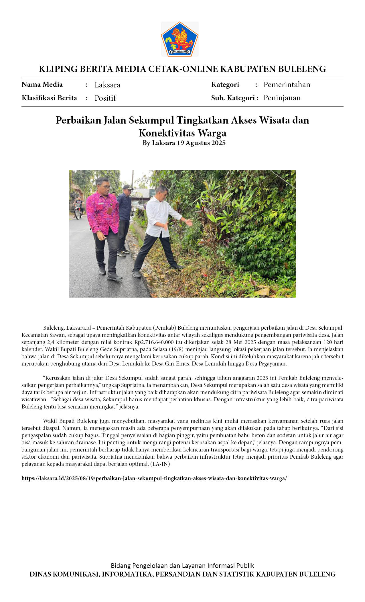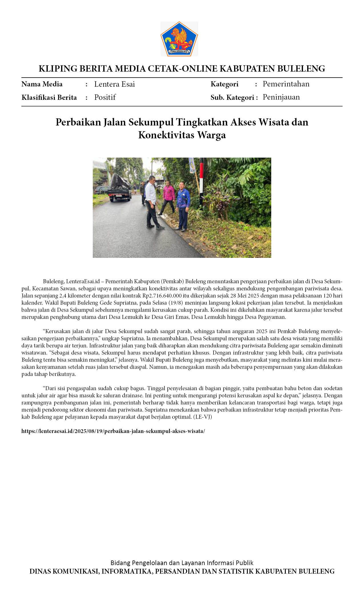 PEMKAB BULELENG RAMPUNGKAN PERBAIKAN JALAN SEKUMPUL, WISATA DAN EKONOMI WARGA TERDUKUNG