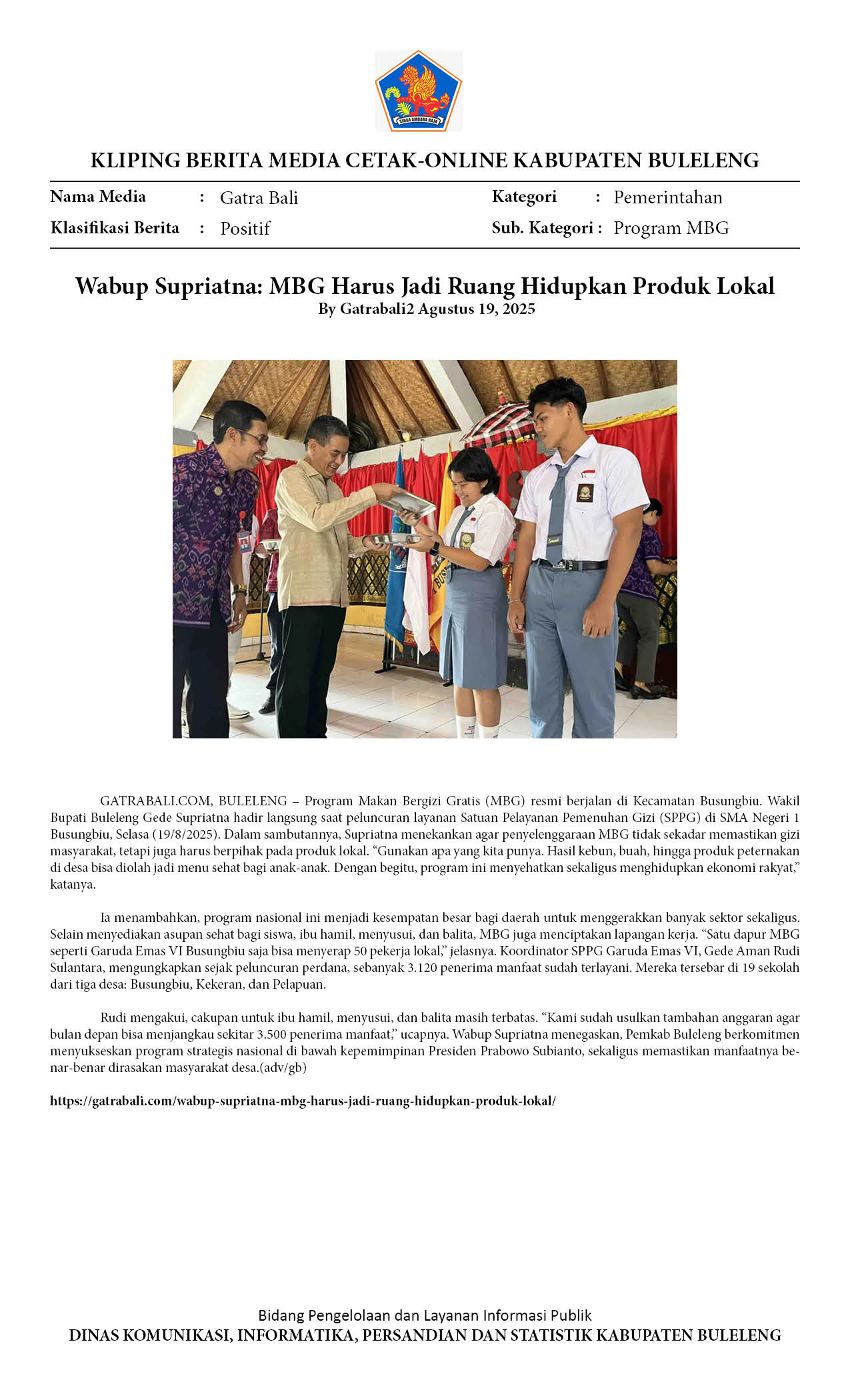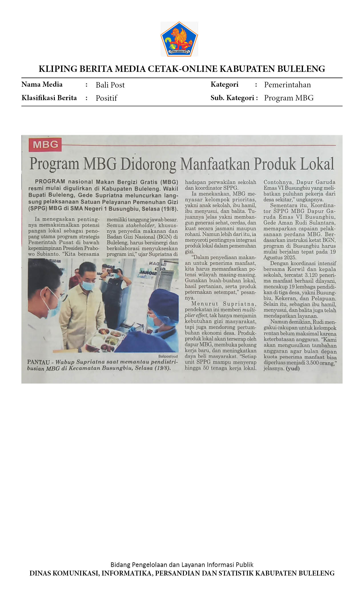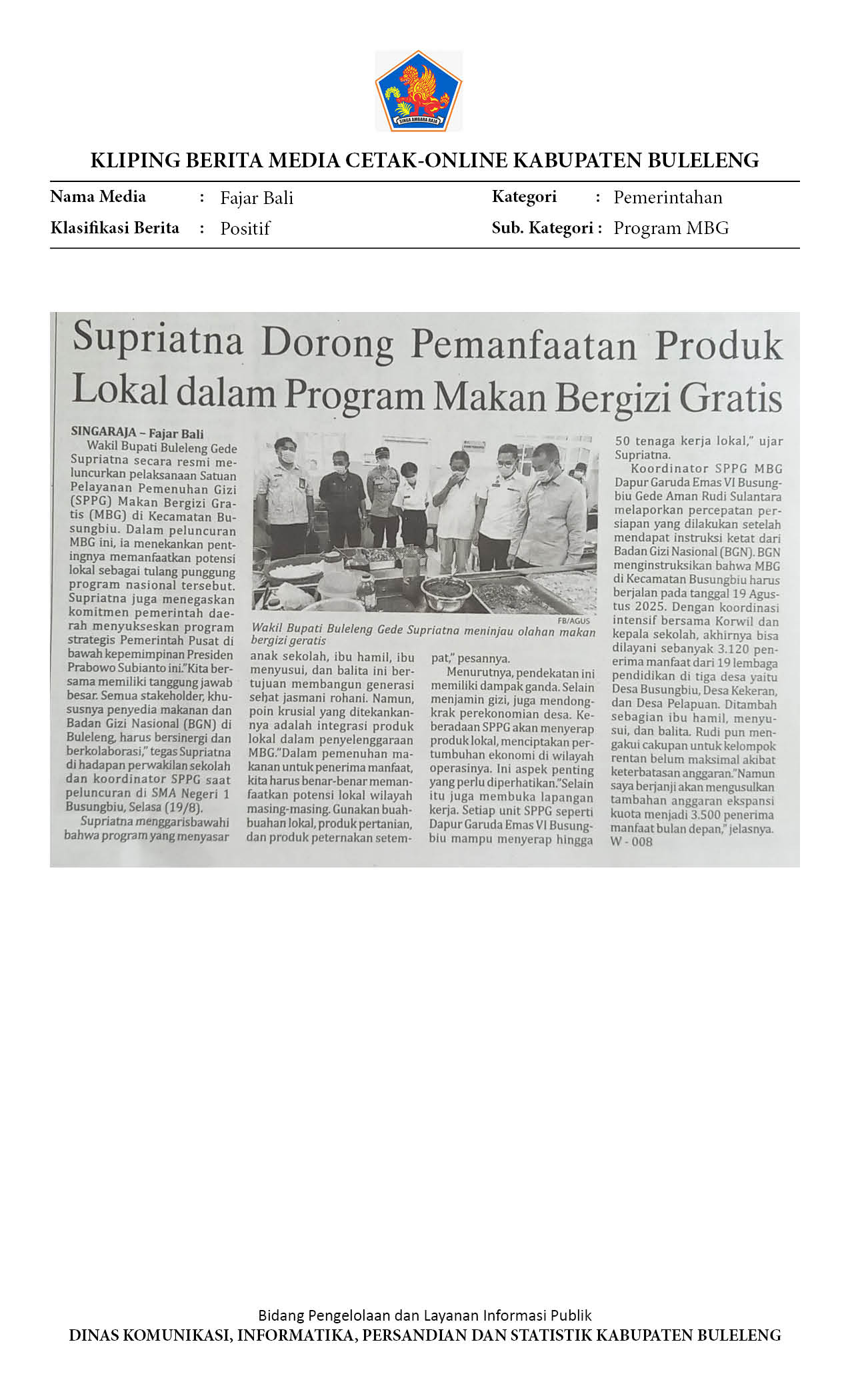 PEMKAB BULELENG JALANKAN PROGRAM MBG, WABUP SUPRIATNA INGATKAN PENTINGNYA PRODUK LOKAL