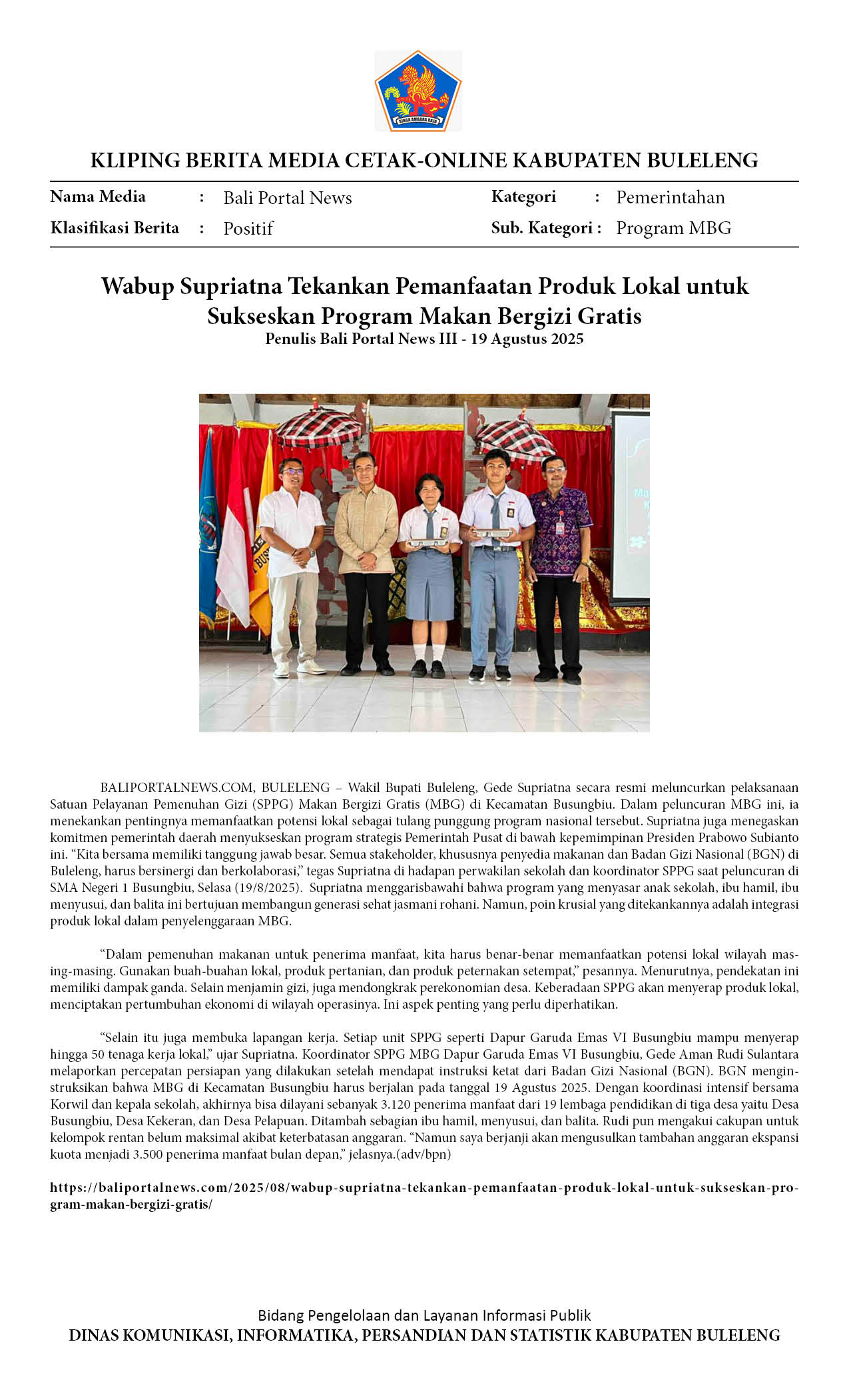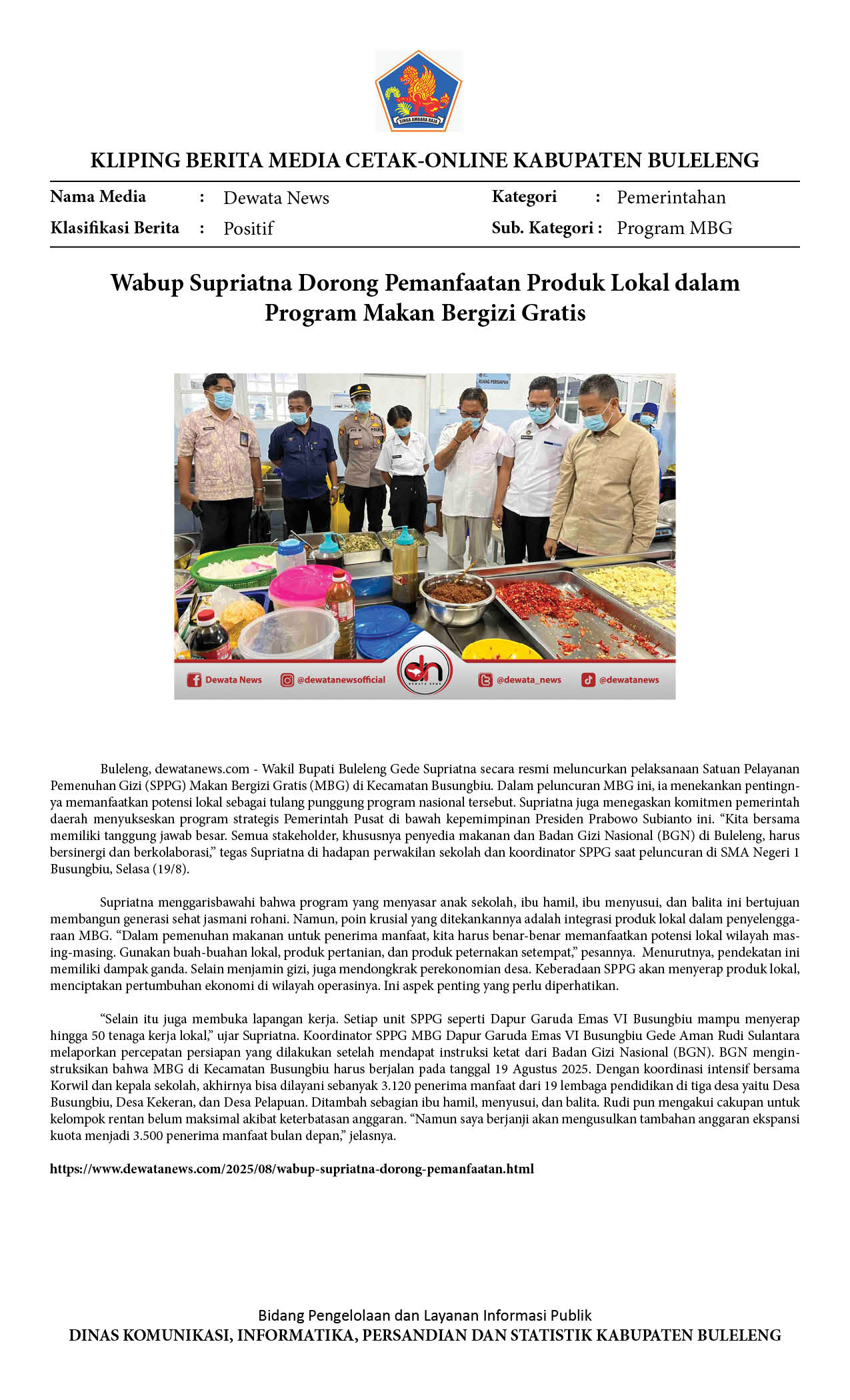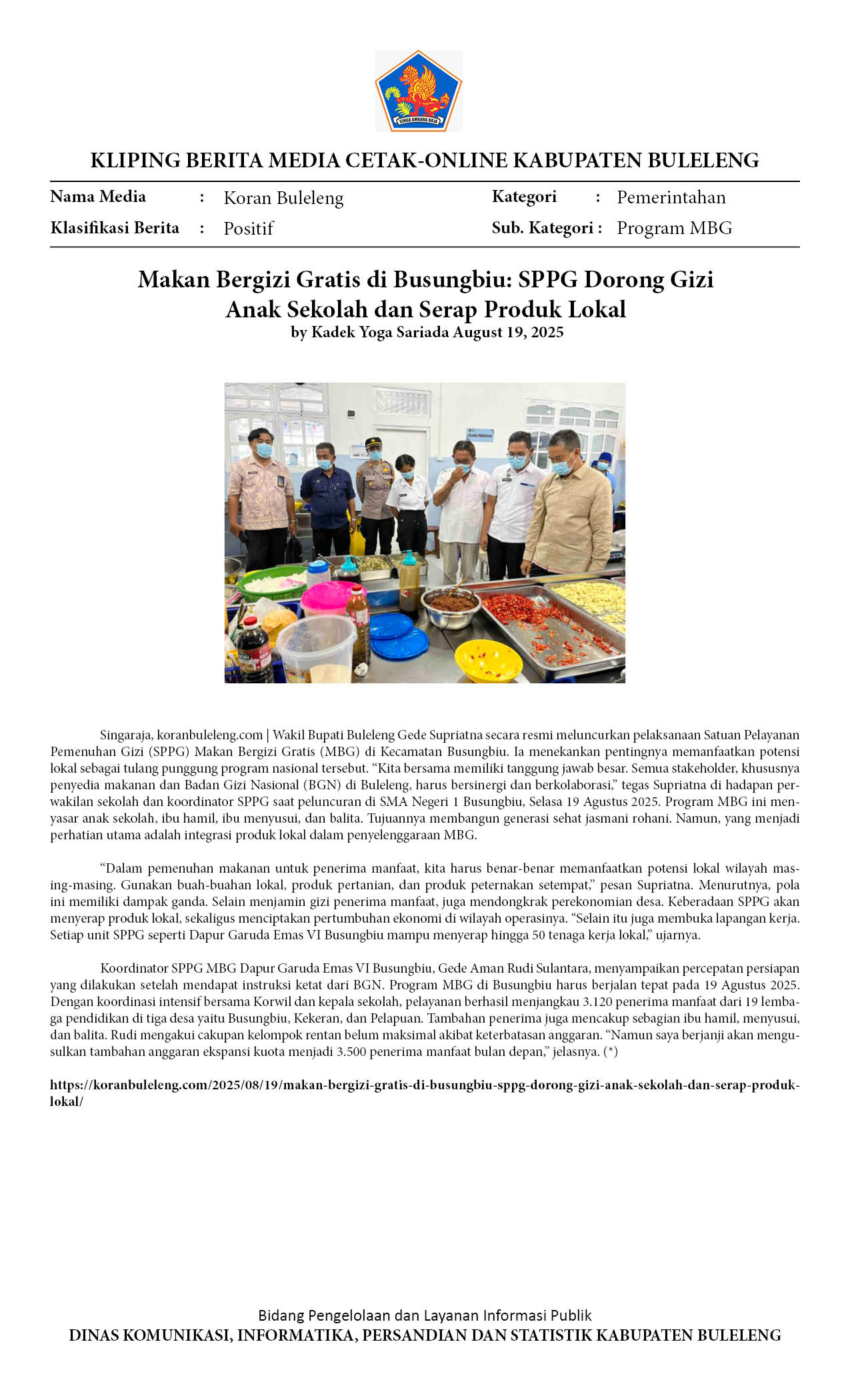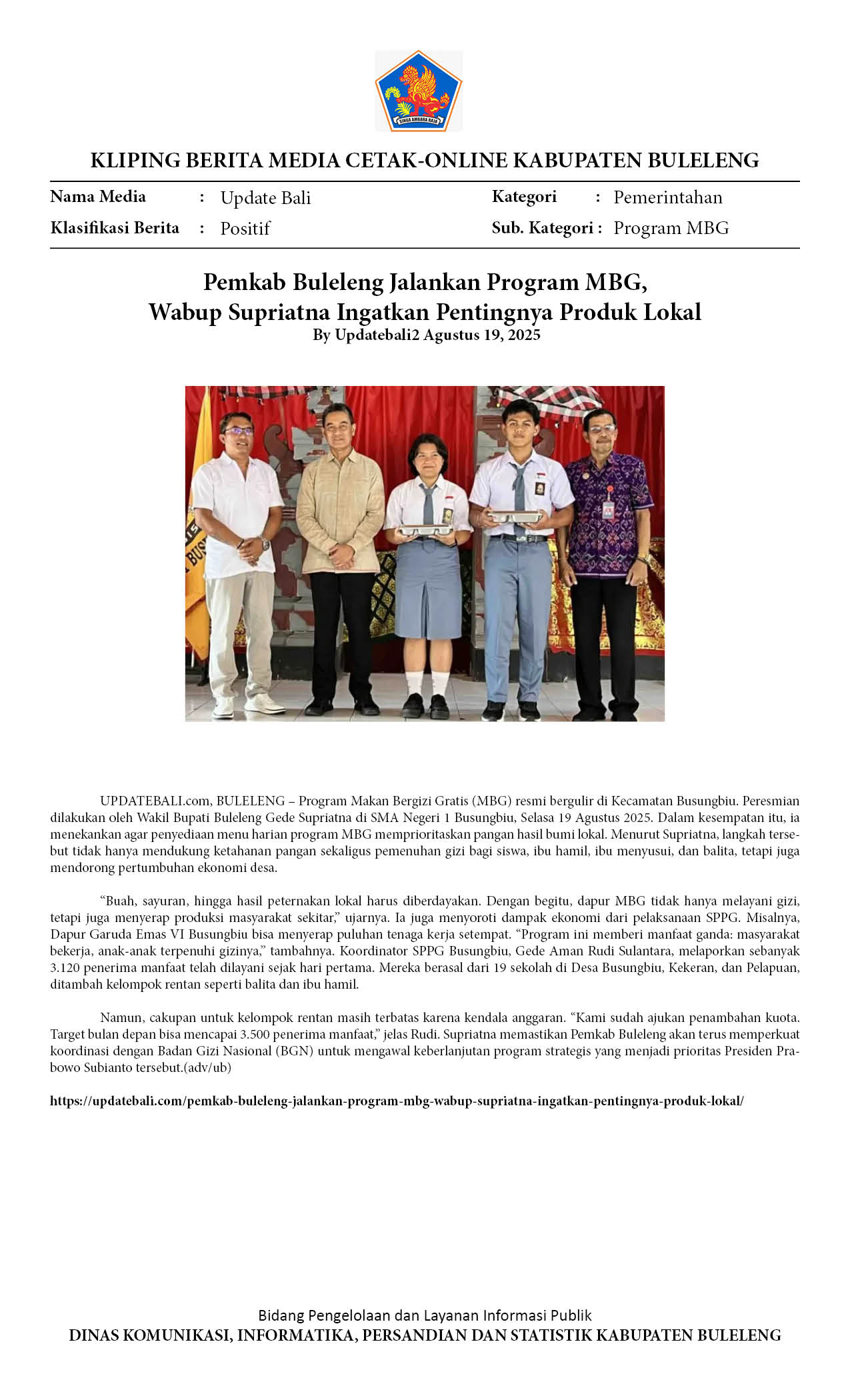 PEMKAB BULELENG JALANKAN PROGRAM MBG, WABUP SUPRIATNA INGATKAN PENTINGNYA PRODUK LOKAL