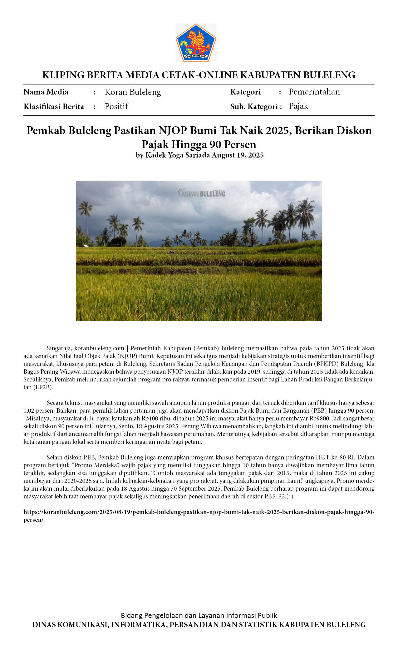 PEMKAB BULELENG PASTIKAN NJOP BUMI TAK NAIK 2025, BERIKAN DISKON PAJAK HINGGA 90 PERSEN