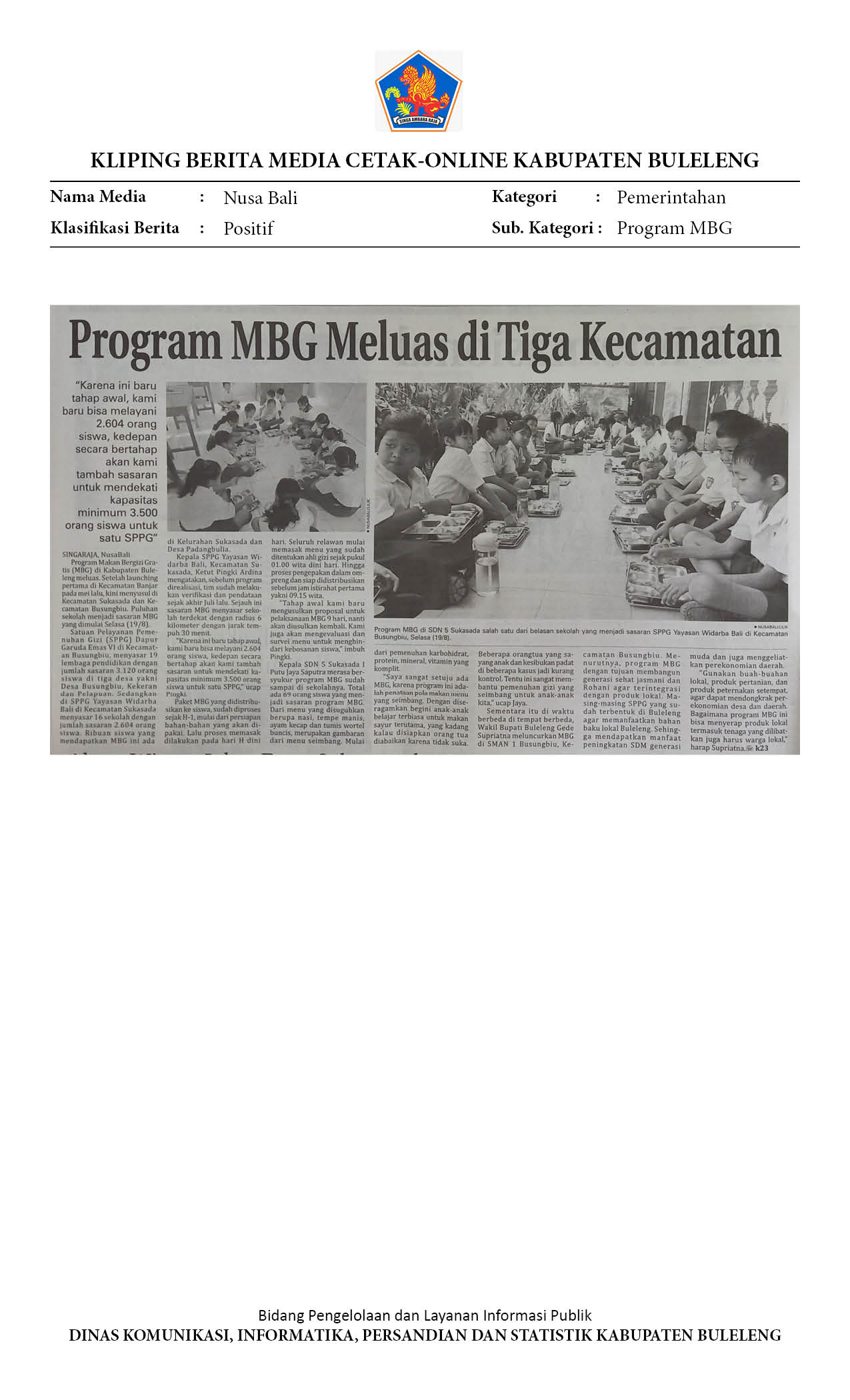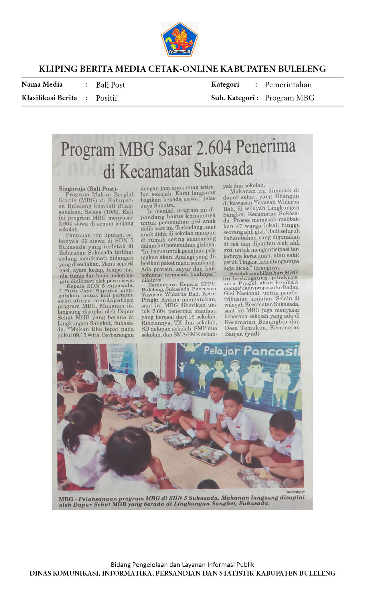 PROGRAM MBG SASAR 2.604 PENERIMA DI KECAMATAN SUKASADA