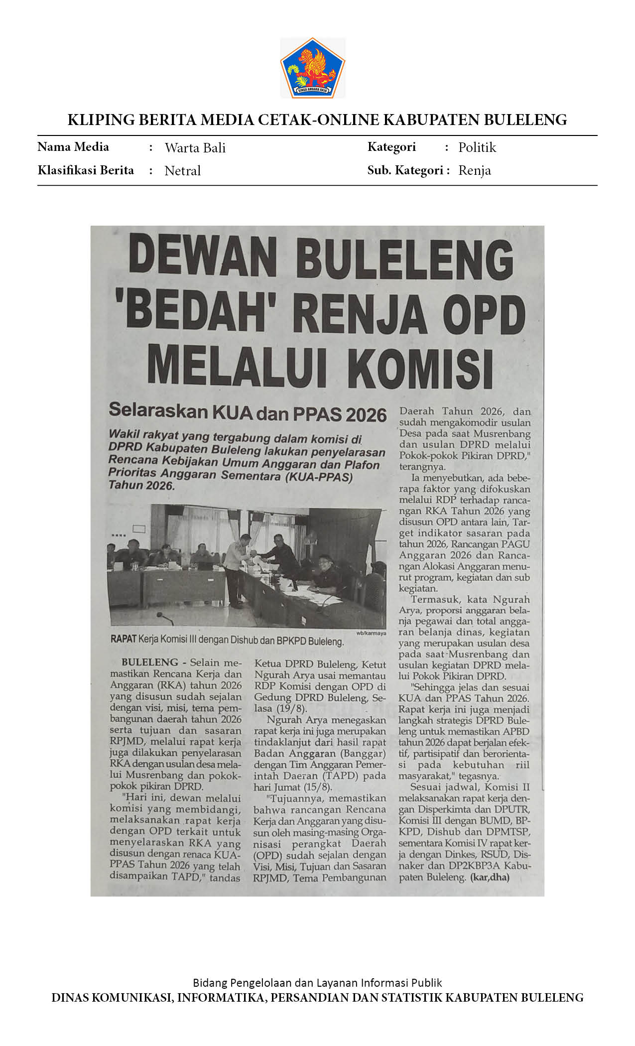 DEWAN BULELENG BEDAH RENJA OPD MELALUI KOMISI