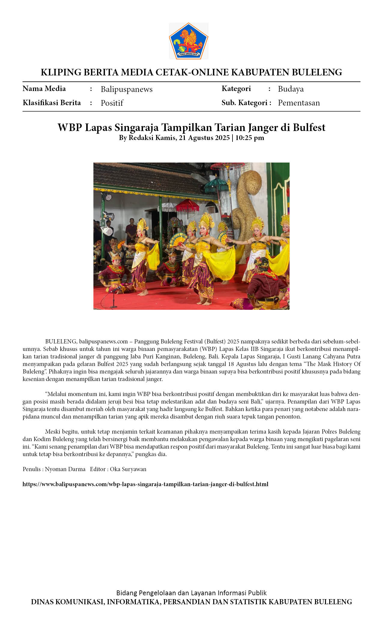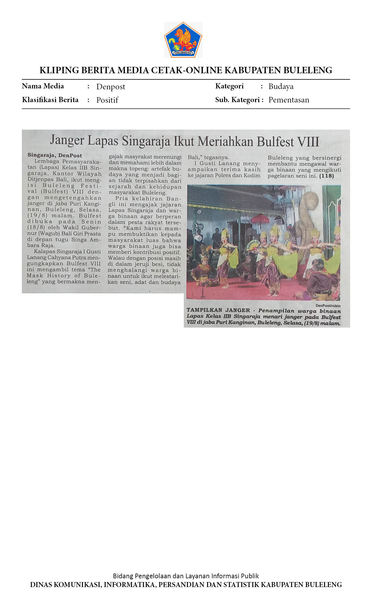 WBP LAPAS SINGARAJA TAMPILKAN TARIAN JANGER DI BULFEST