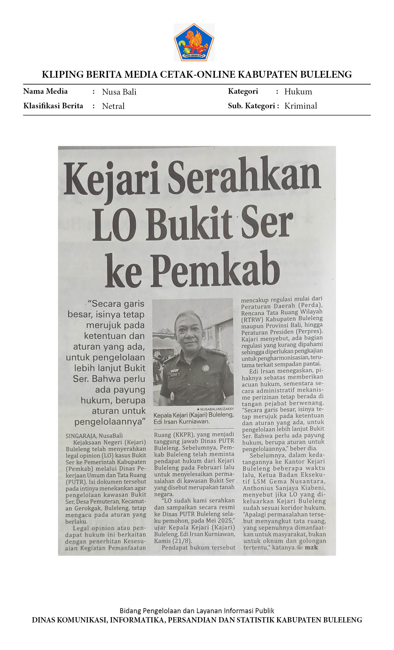 KEJARI SERAHKAN LEGAL OPINION BUKIT SER