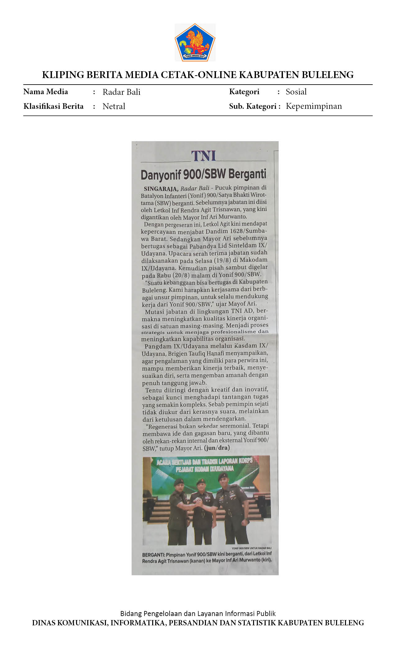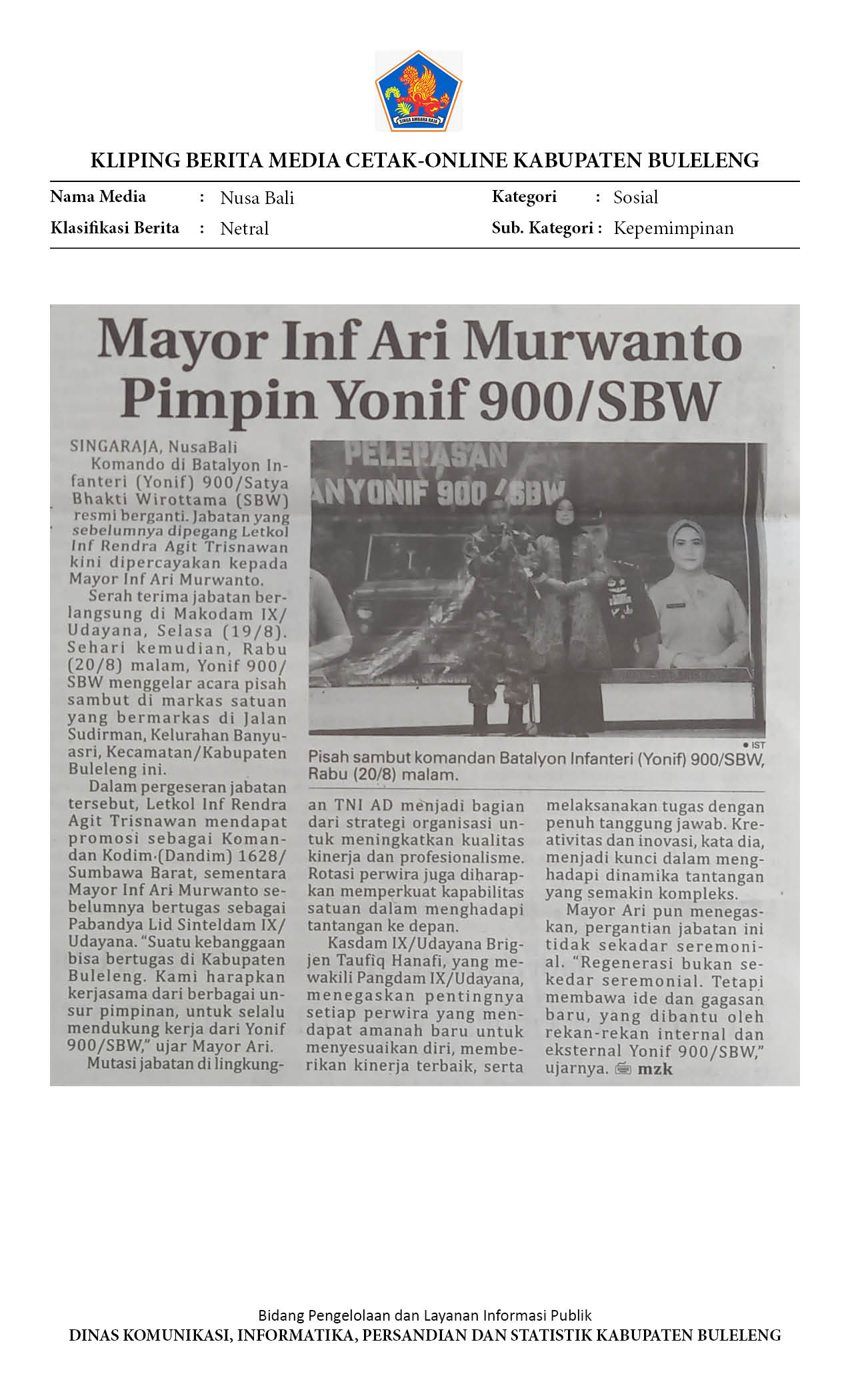 MAYOR INF ARI MURWANTO PIMPIN YONIF 900/SBW