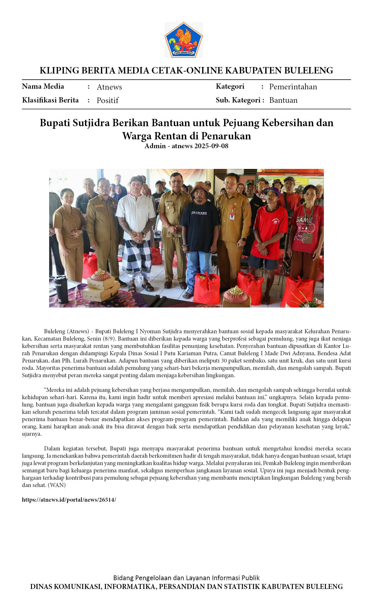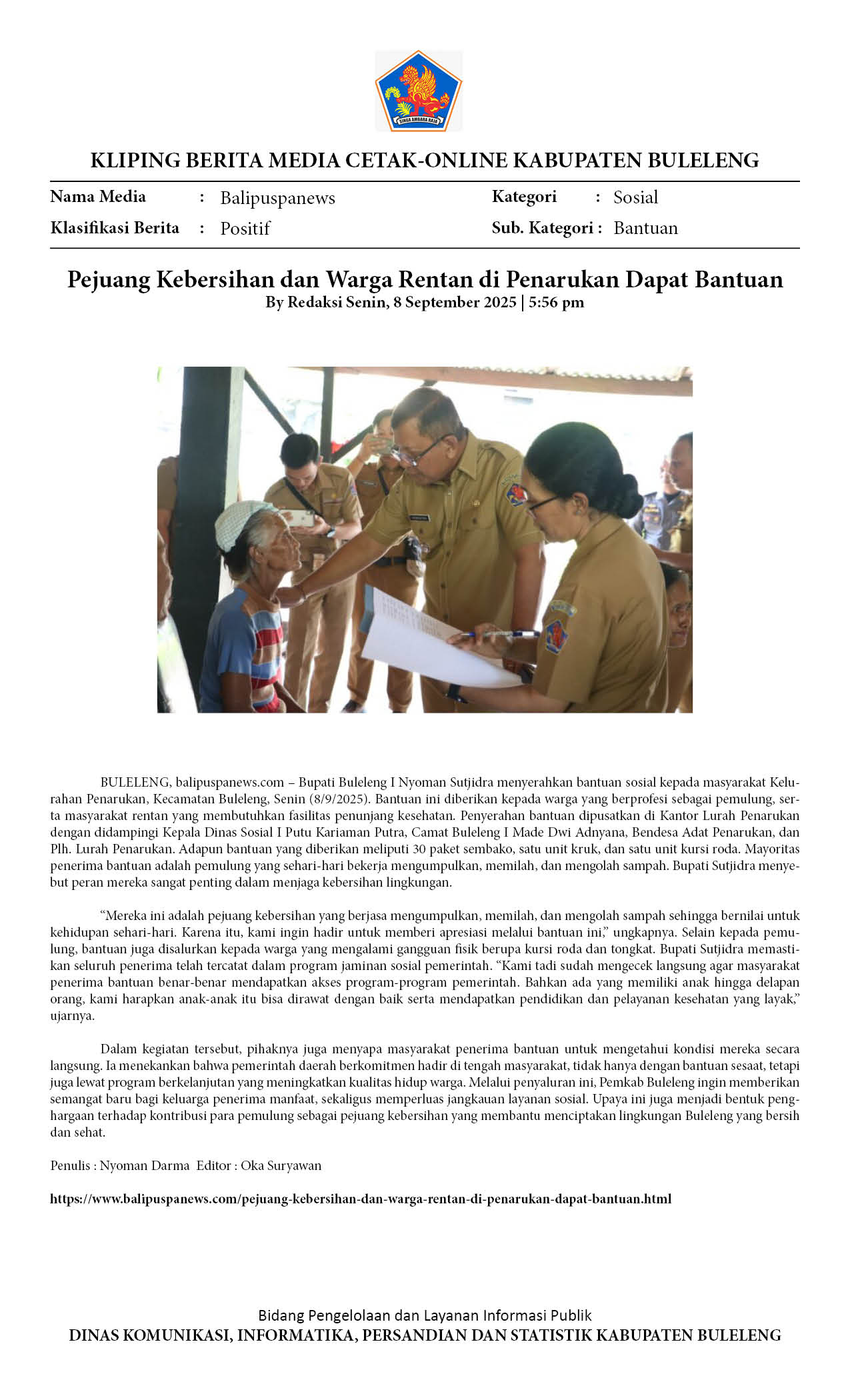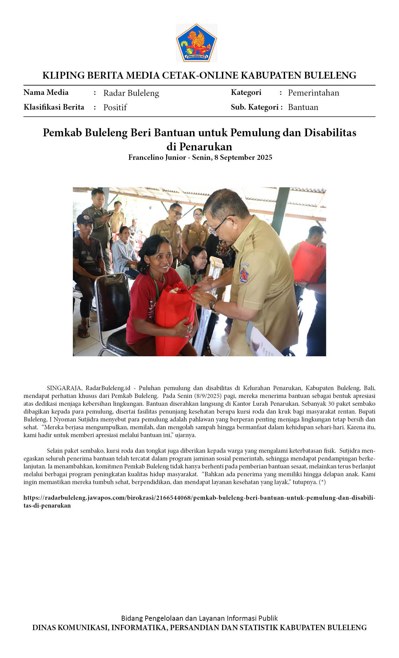 PEMKAB BULELENG BERI BANTUAN UNTUK PEMULUNG DAN DISABILITAS DI PENARUKAN