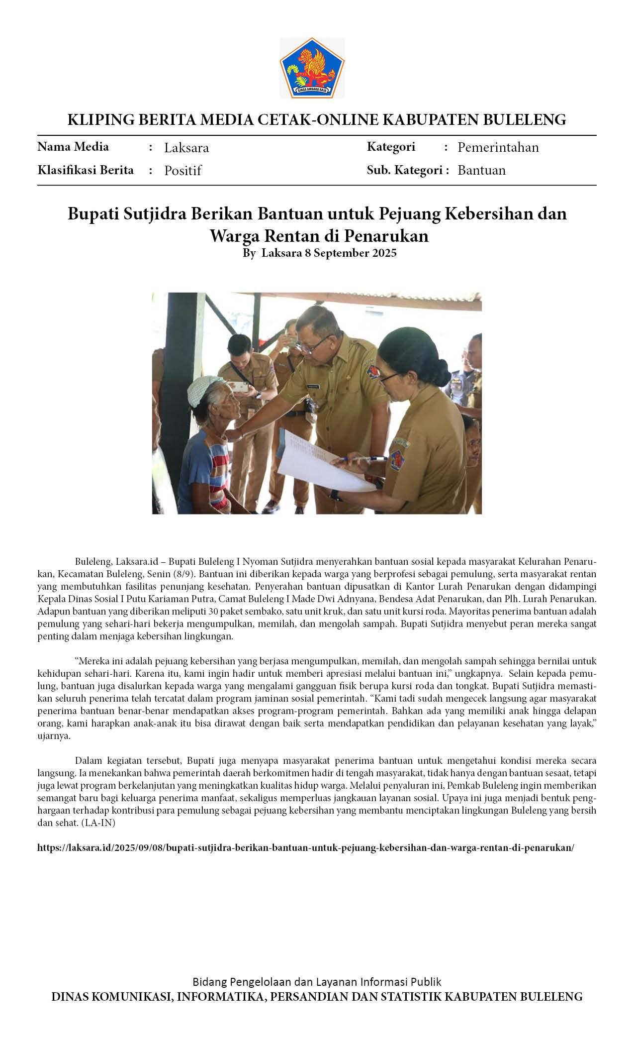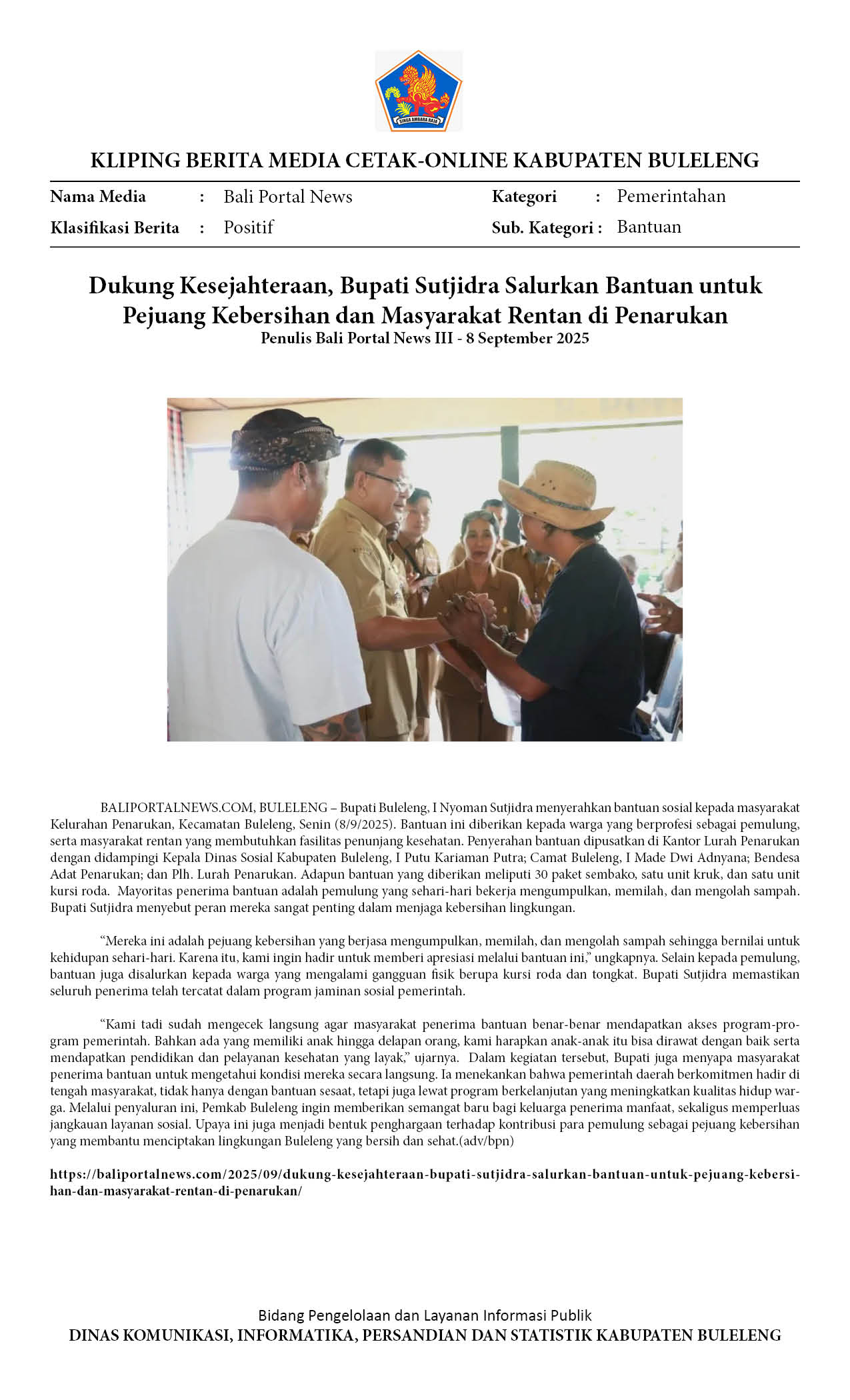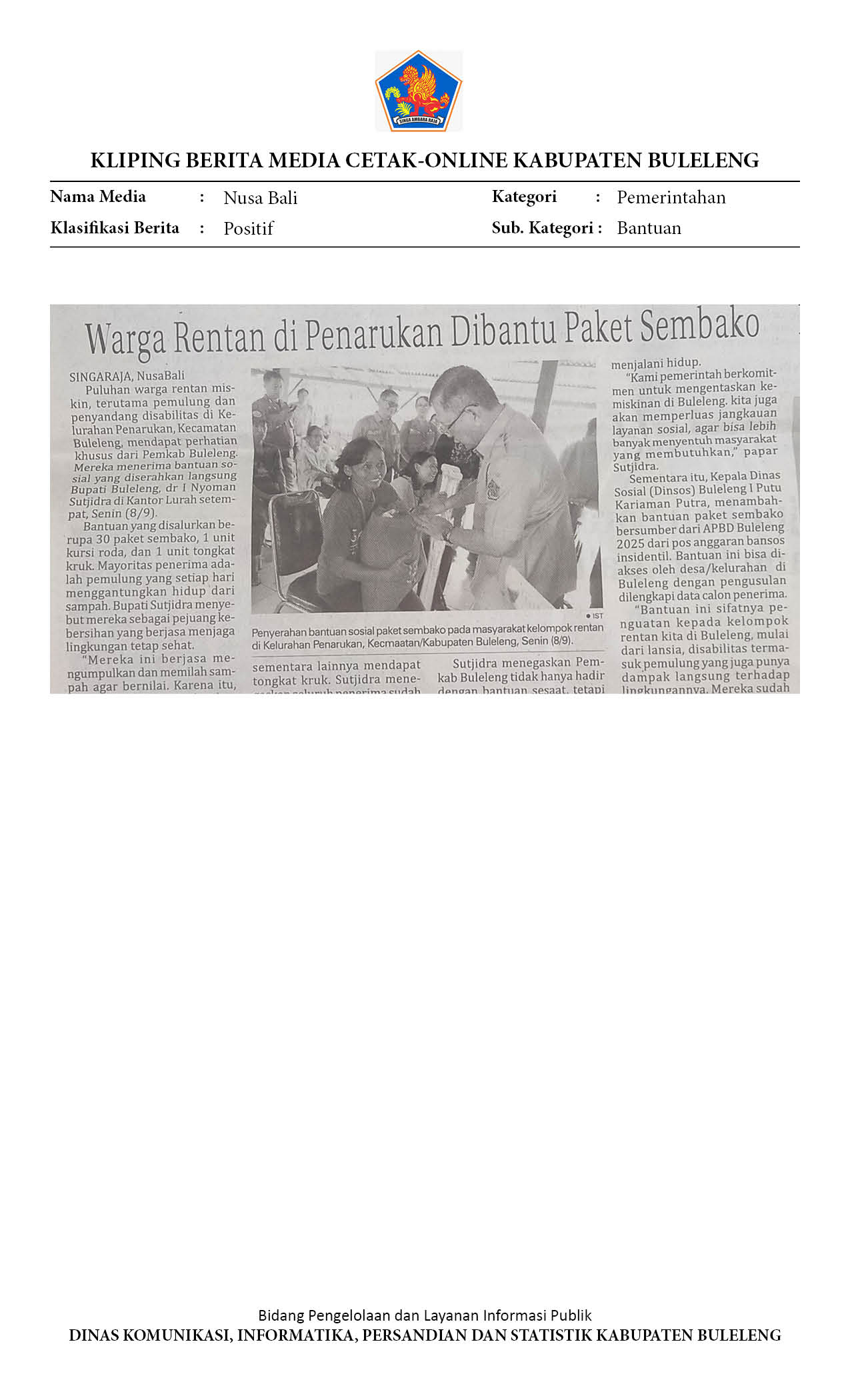 PEMKAB BULELENG BERI BANTUAN UNTUK PEMULUNG DAN DISABILITAS DI PENARUKAN