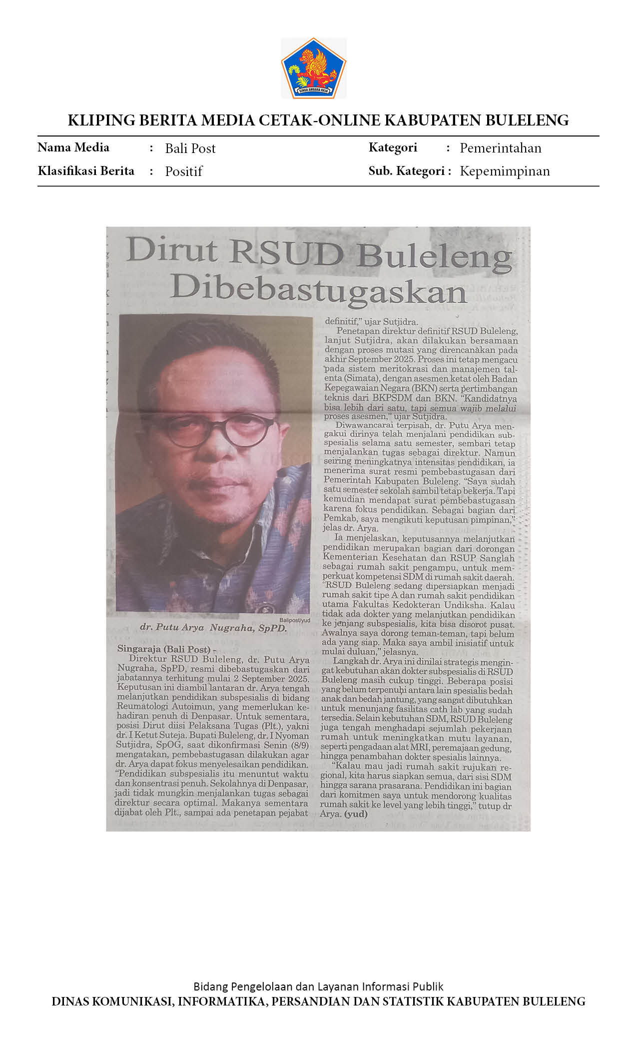 DIRUT RSUD BULELENG DIBEBASTUGASKAN