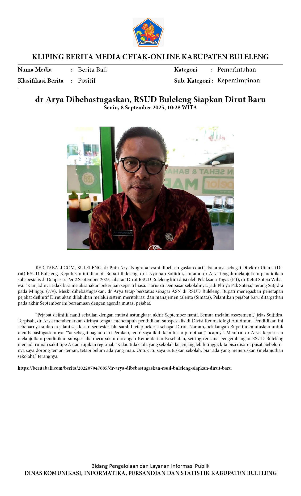 DR ARYA DIBEBASTUGASKAN, RSUD BULELENG SIAPKAN DIRUT BARU