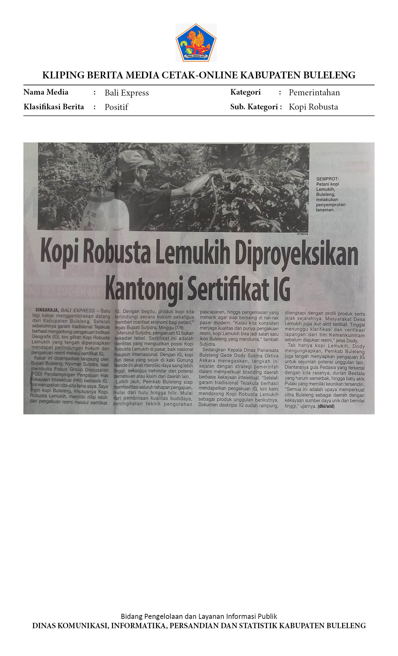 KOPI ROBUSTA LEMUKIH DIPROYEKSIKAN KANTONGI SERTIFIKAT IG