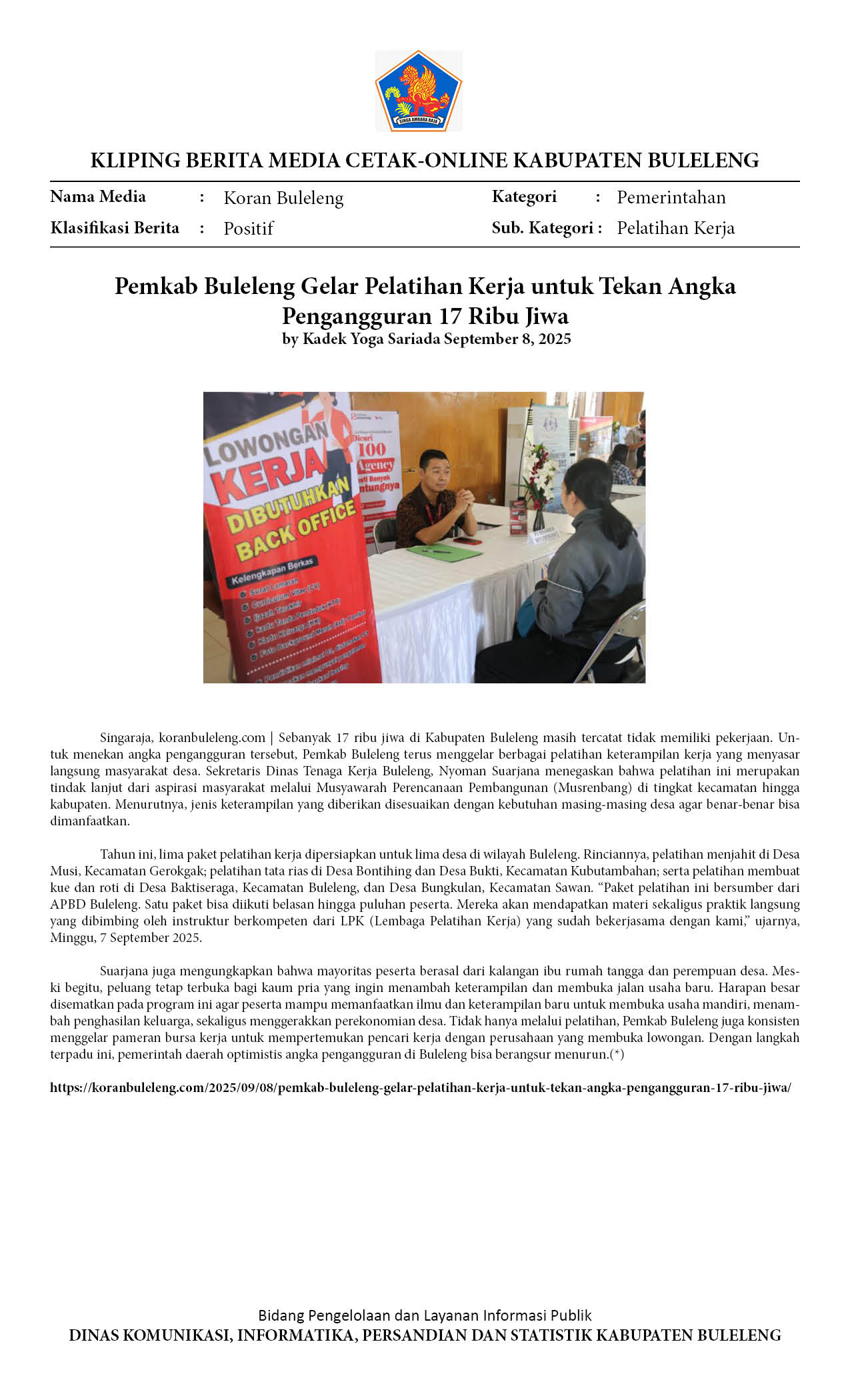 PEMKAB BULELENG GELAR PELATIHAN KERJA UNTUK TEKAN ANGKA PENGANGGURAN 17 RIBU JIWA