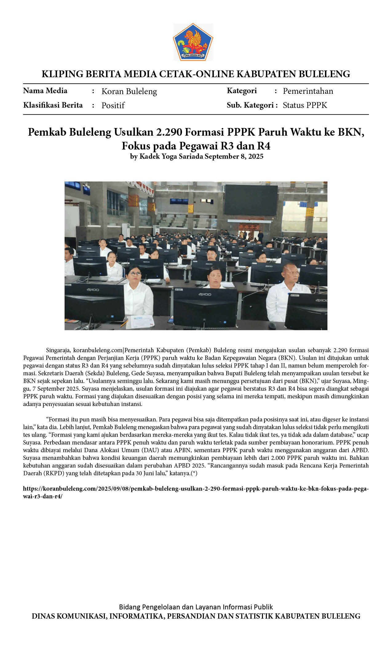 PEMKAB BULELENG USULKAN 2.290 FORMASI PPPK PARUH WAKTU KE BKN, FOKUS PADA PEGAWAI R3 DAN R4