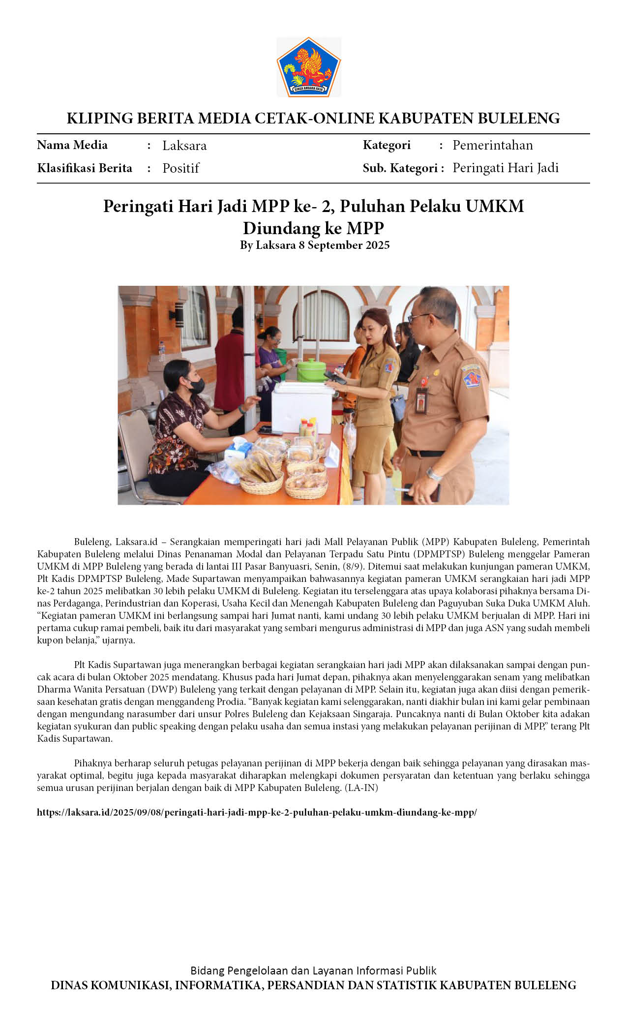 MPP BULELENG GELAR PAMERAN UMKM HINGGA PEMERIKSAAN KESEHATAN GRATIS