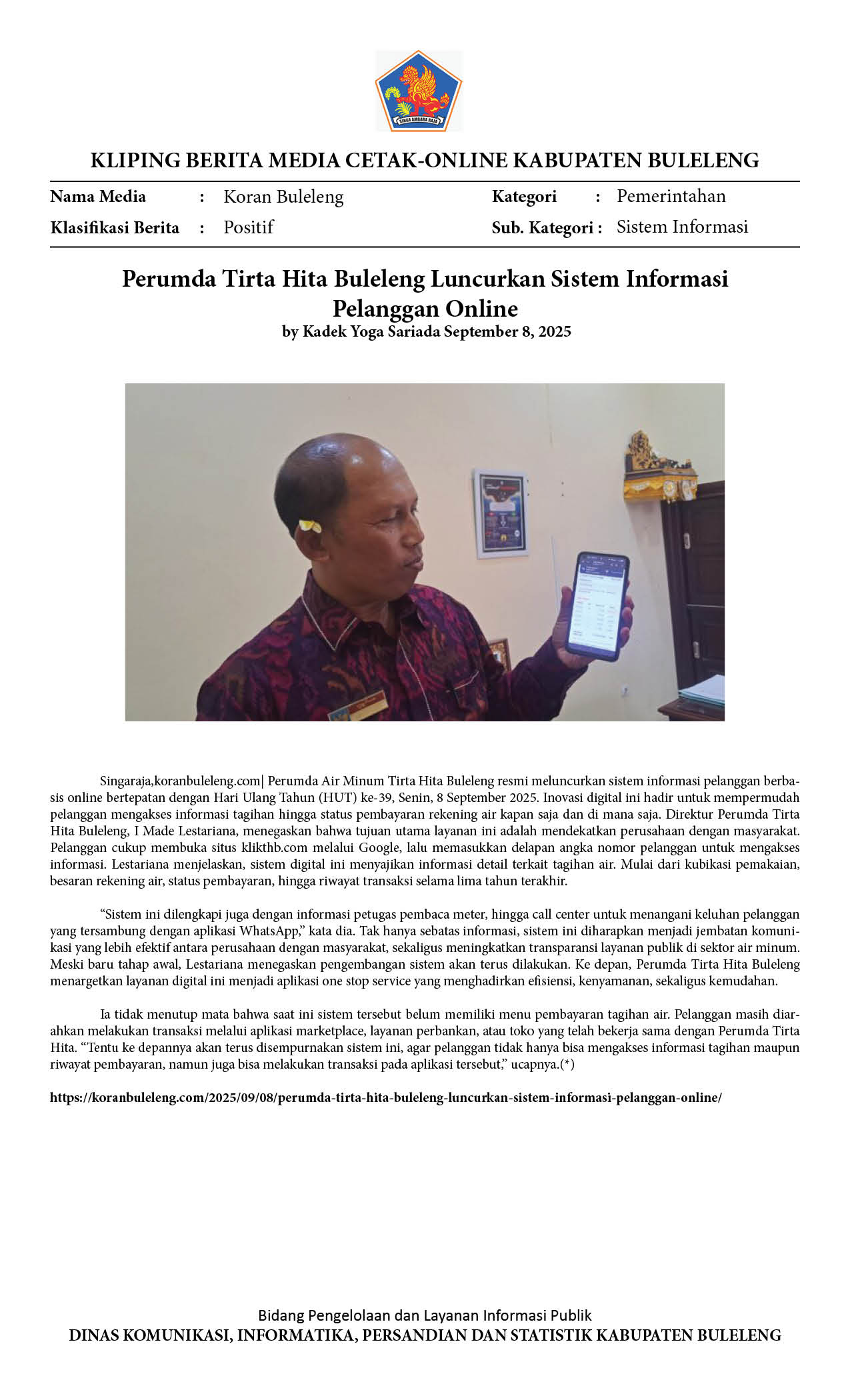 PERUMDA TIRTA HITA BULELENG LUNCURKAN SISTEM INFORMASI PELANGGAN ONLINE