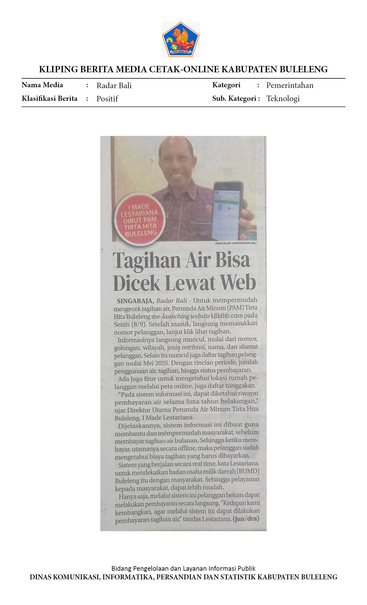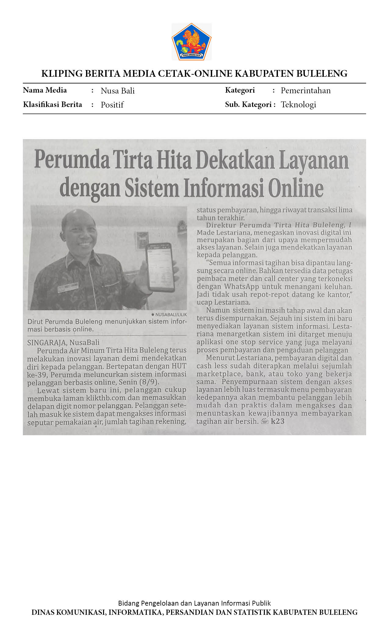 PERUMDA TIRTA HITA DEKATKAN LAYANAN DENGAN SISTEM INFORMASI ONLINE