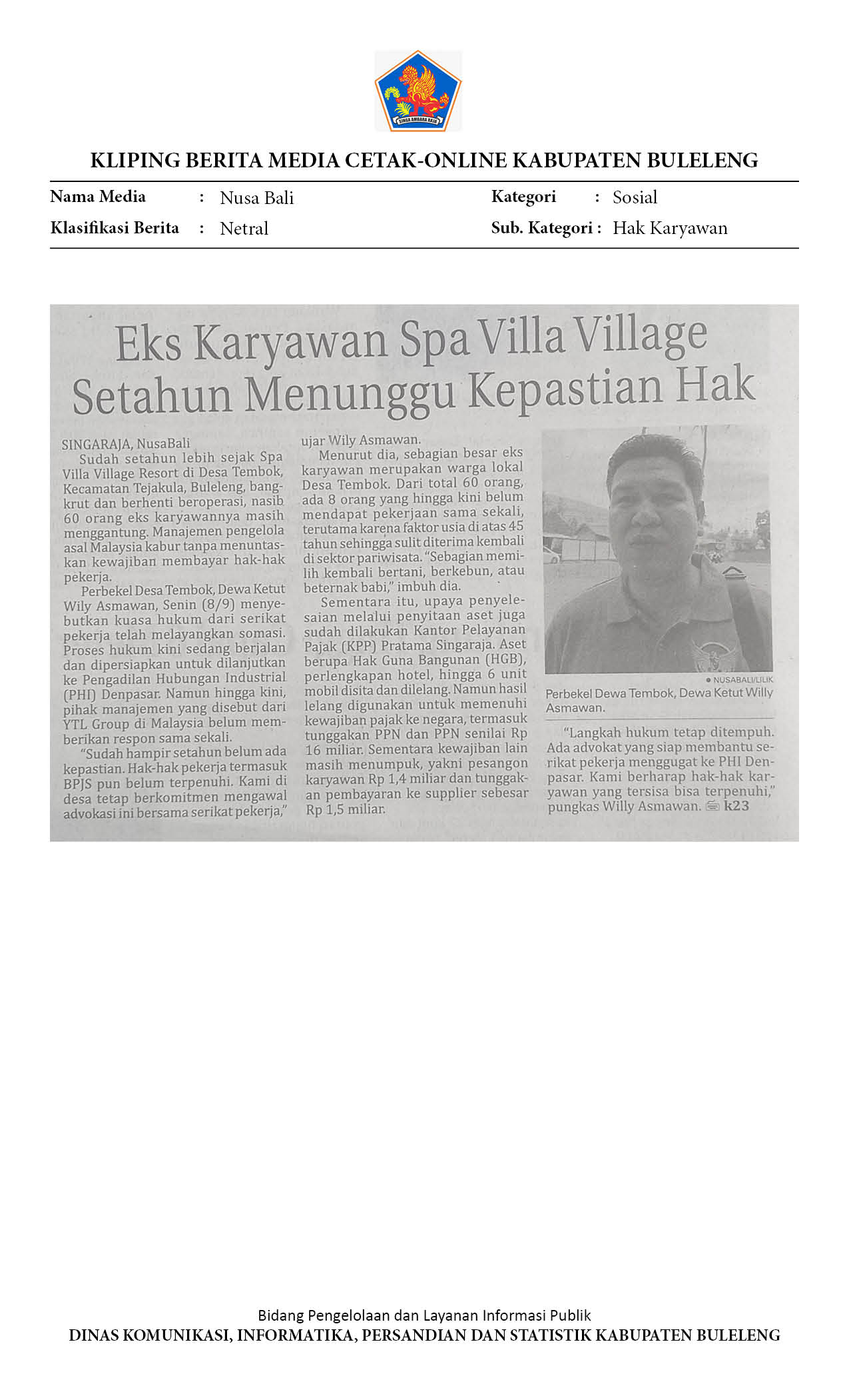EKS KARYAWAN SPA VILLA VILLAGE SETAHUN MENUNGGU KEPASTIAN HAK