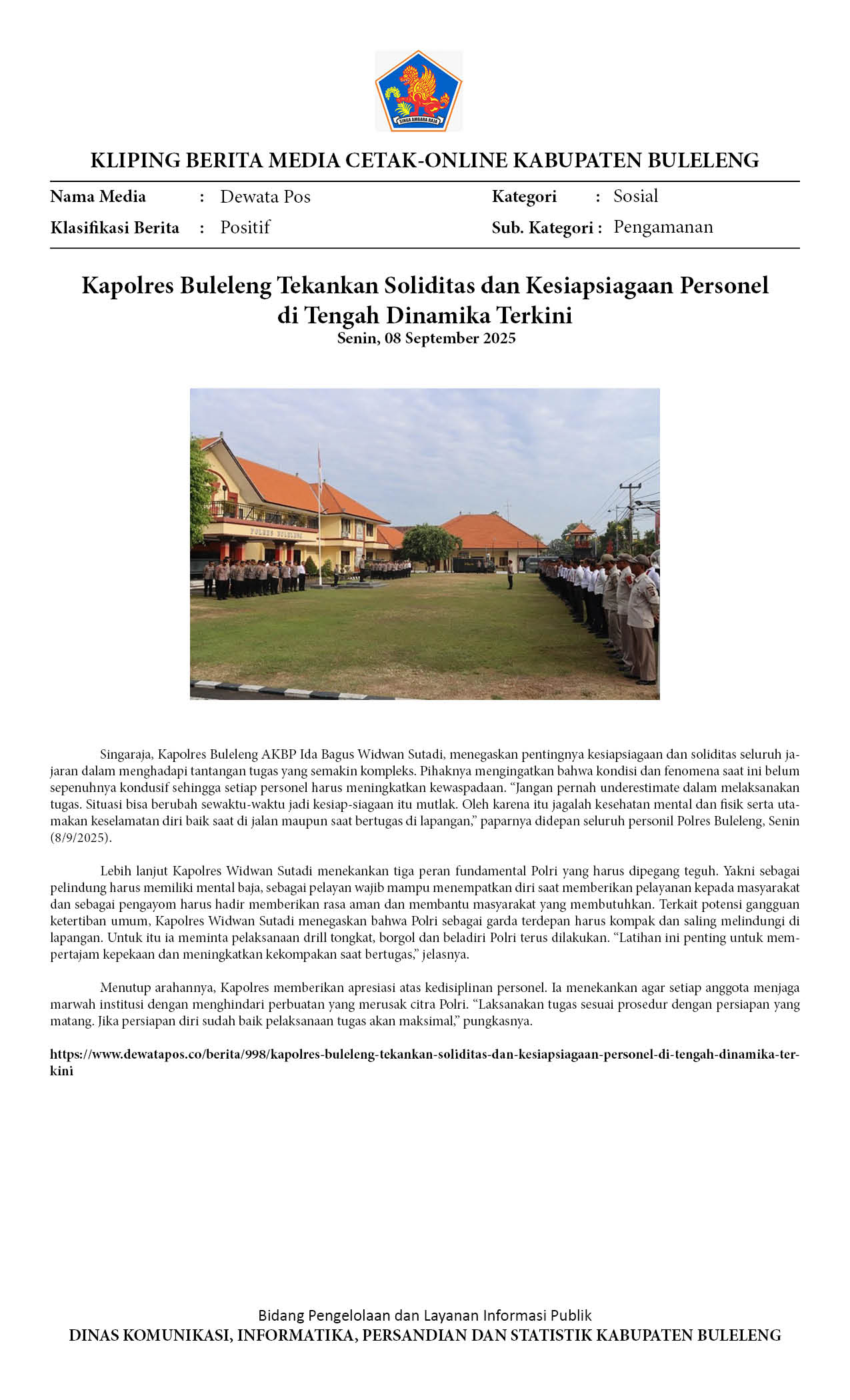 KAPOLRES BULELENG TEKANKAN SOLIDITAS DAN KESIAPSIAGAAN PERSONEL DI TENGAH DINAMIKA TERKINI