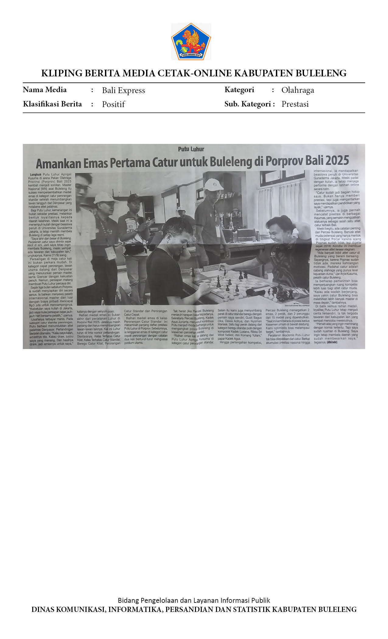 AMANKAN EMAS PERTAMA CATUR UNTUK BULELENG DI PORPROV BALI 2025
