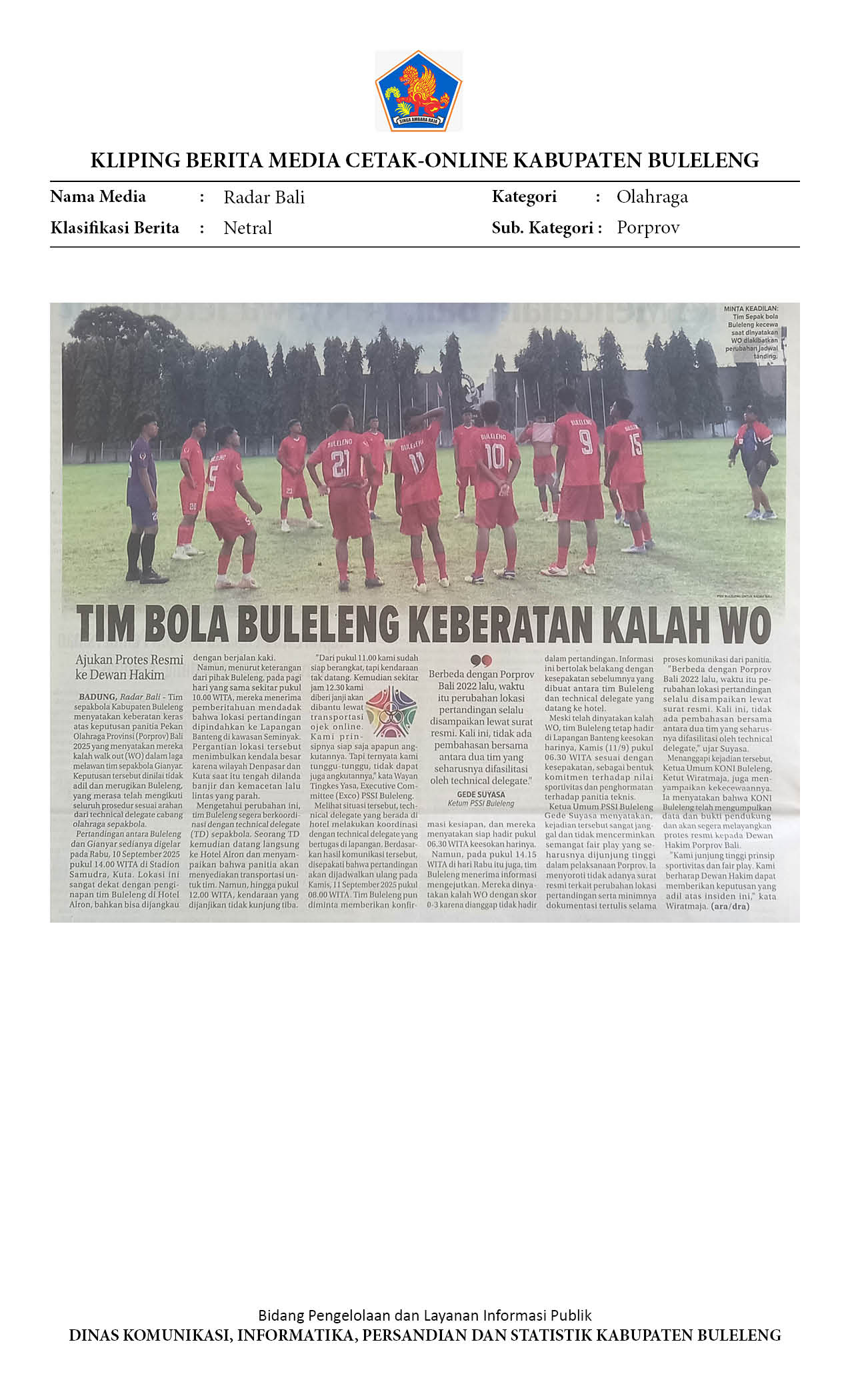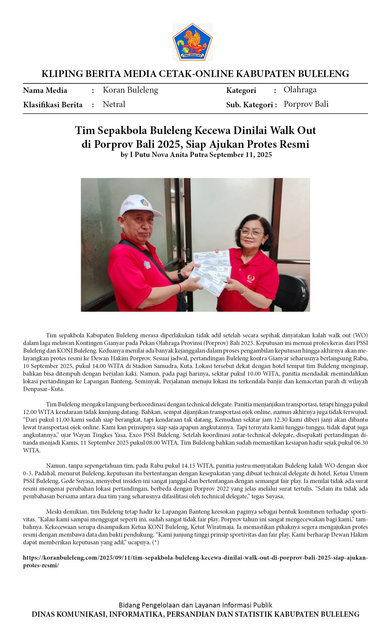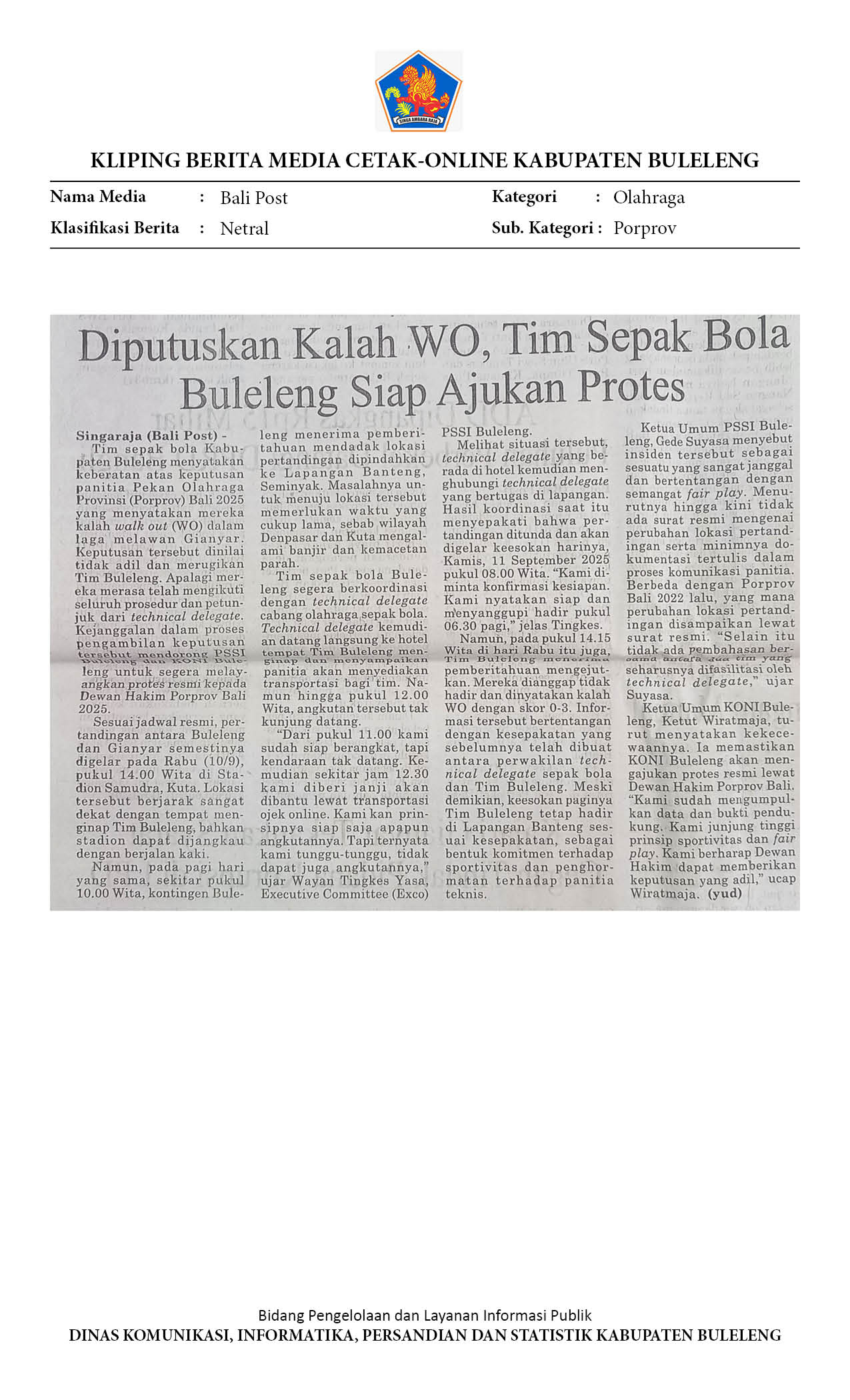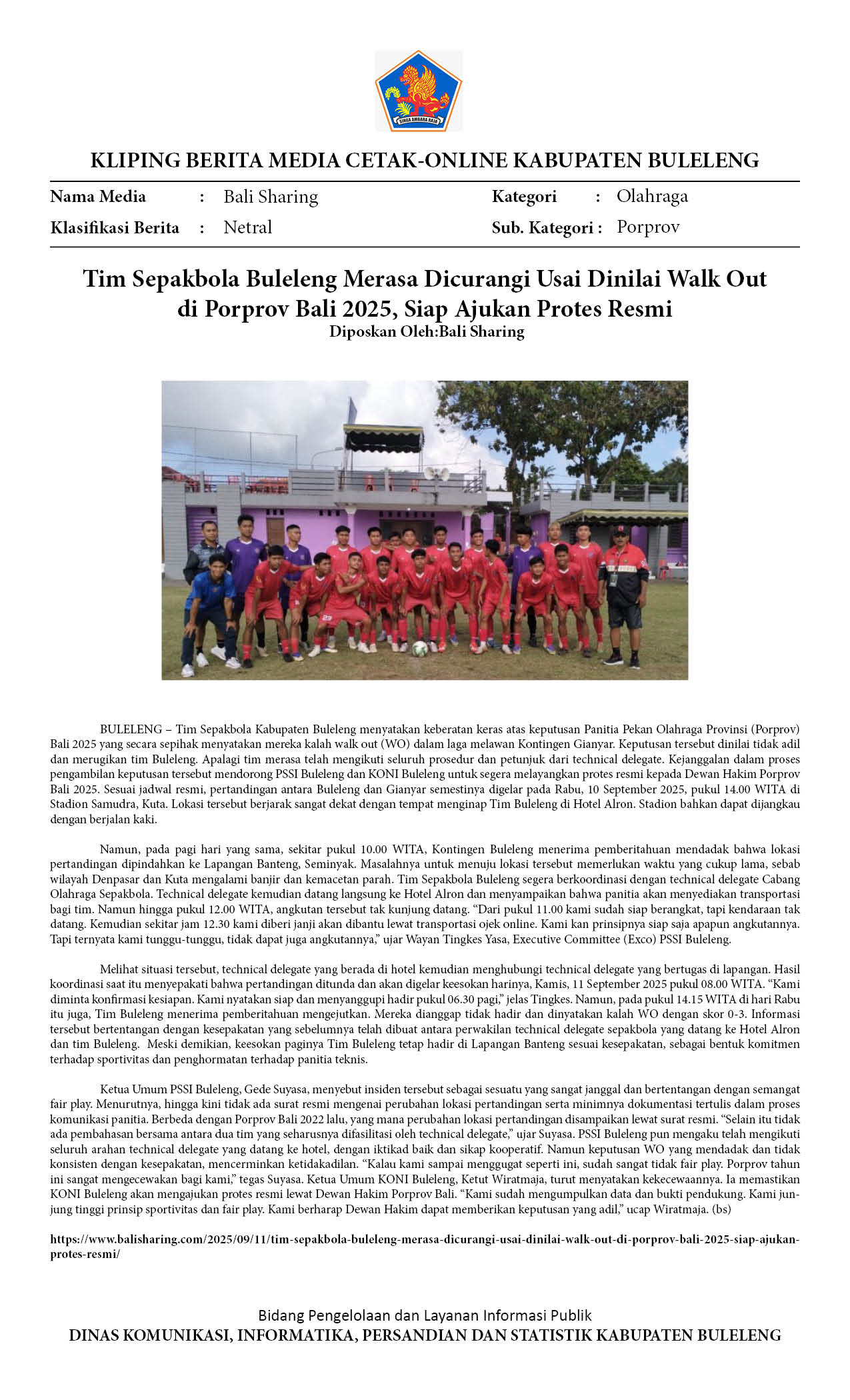TIM SEPAKBOLA BULELENG MERASA DICURANGI USAI DINILAI WALK OUT DI PORPROV BALI 2025, SIAP AJUKAN PROTES RESMI