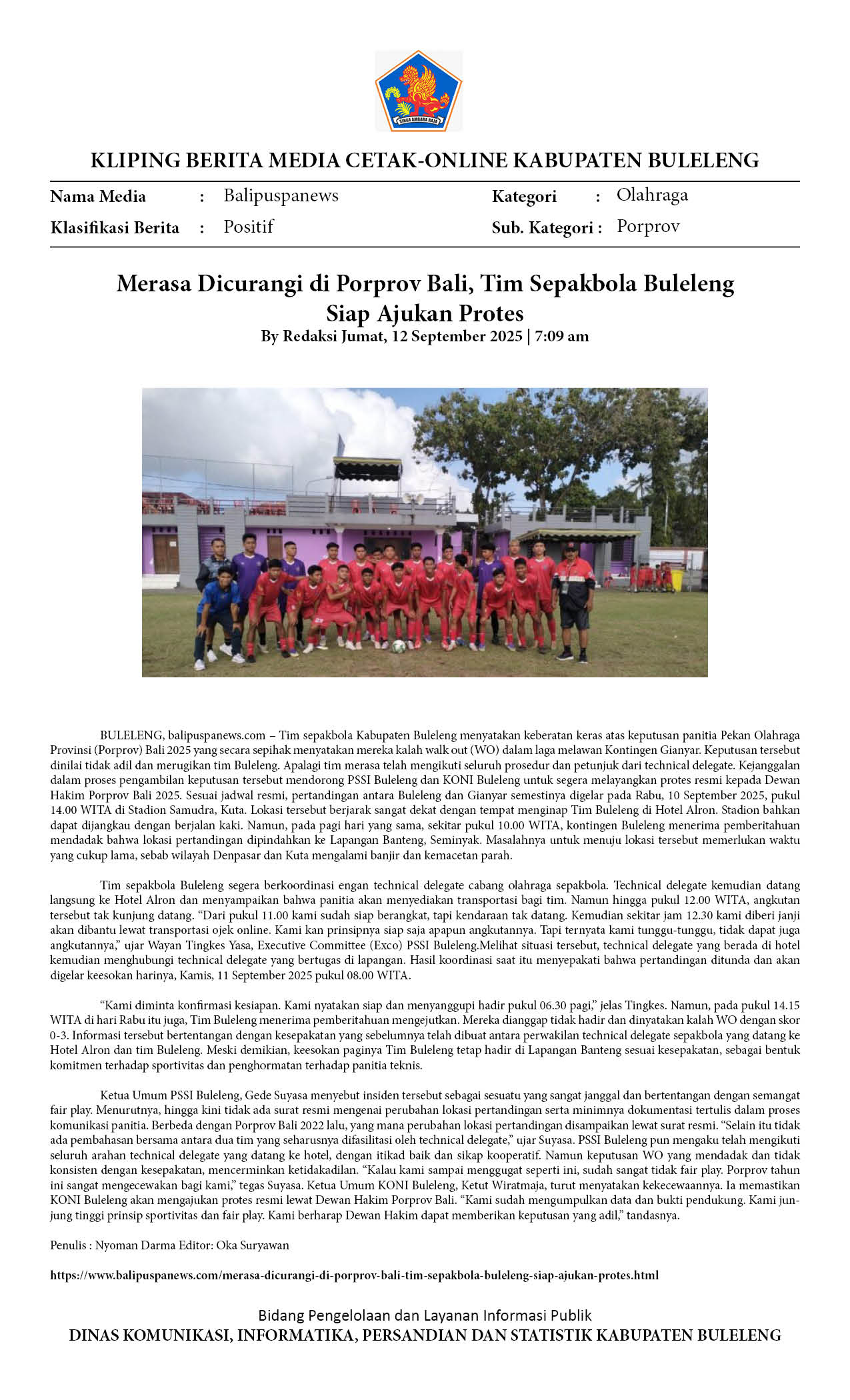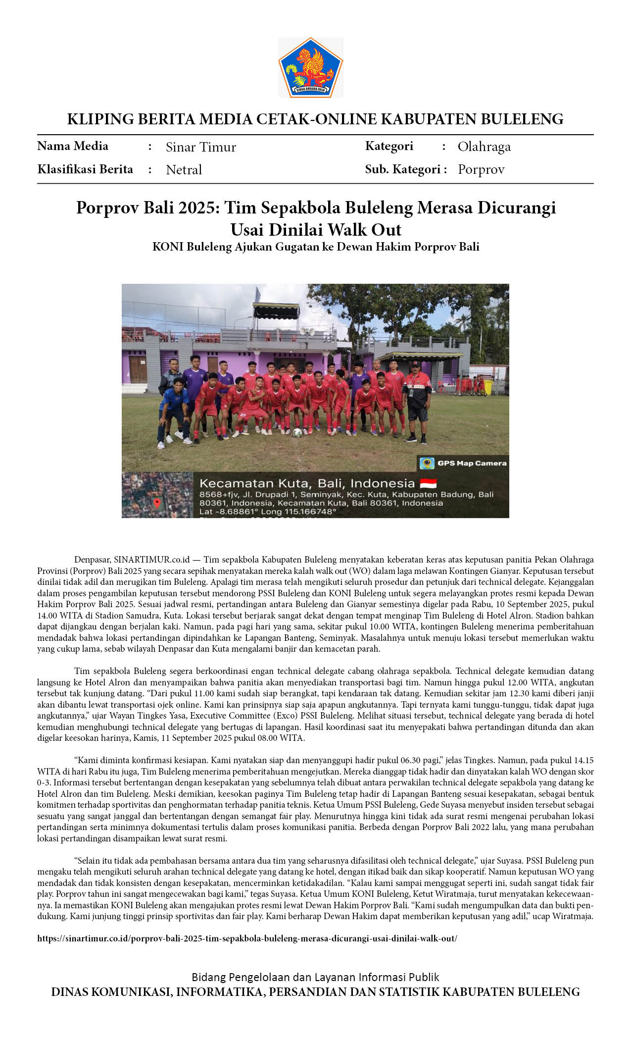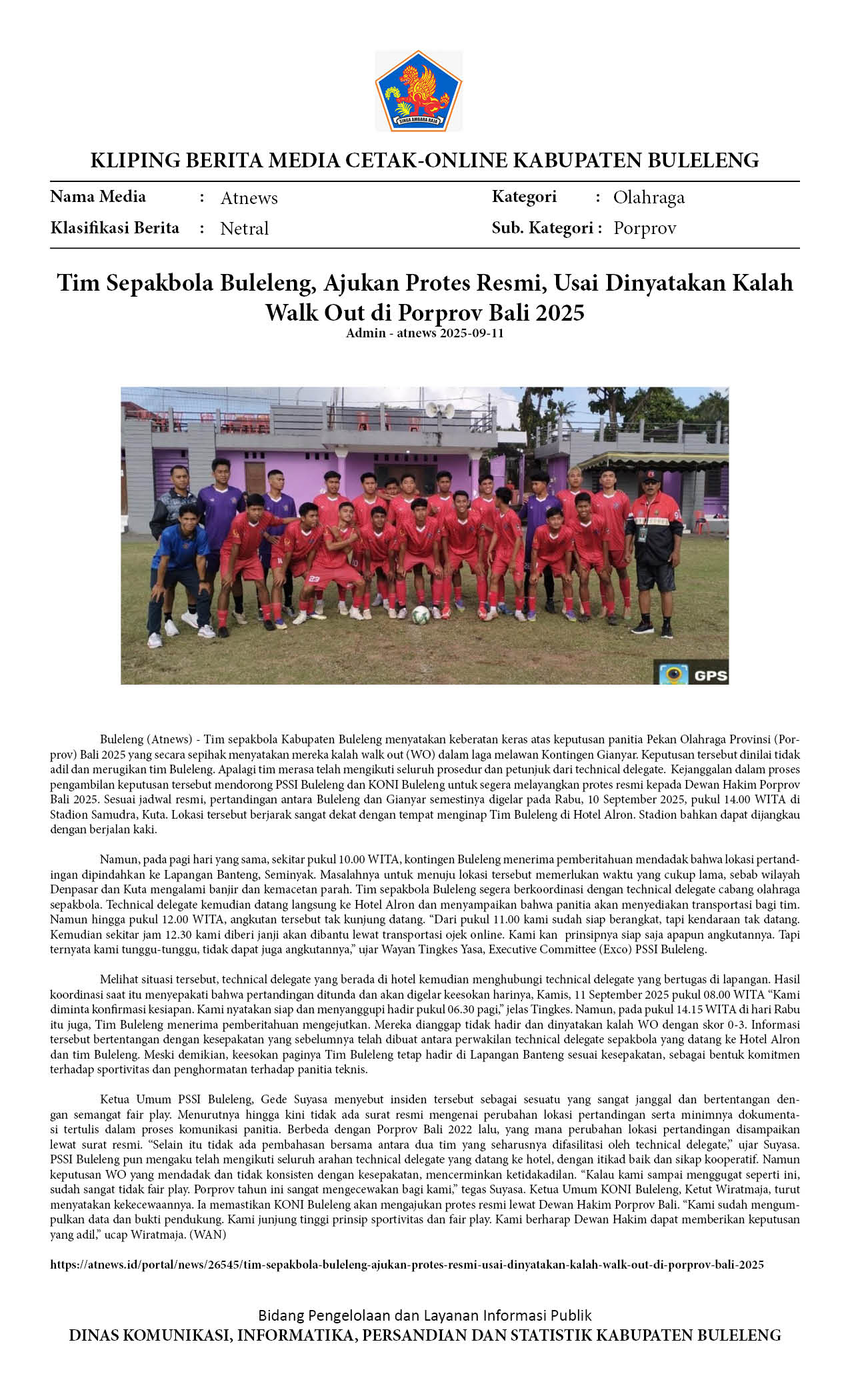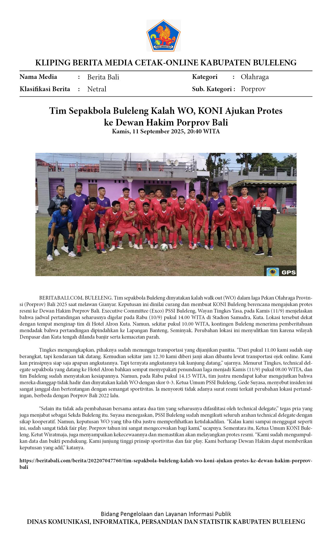 TIM SEPAKBOLA BULELENG MERASA DICURANGI USAI DINILAI WALK OUT DI PORPROV BALI 2025, SIAP AJUKAN PROTES RESMI