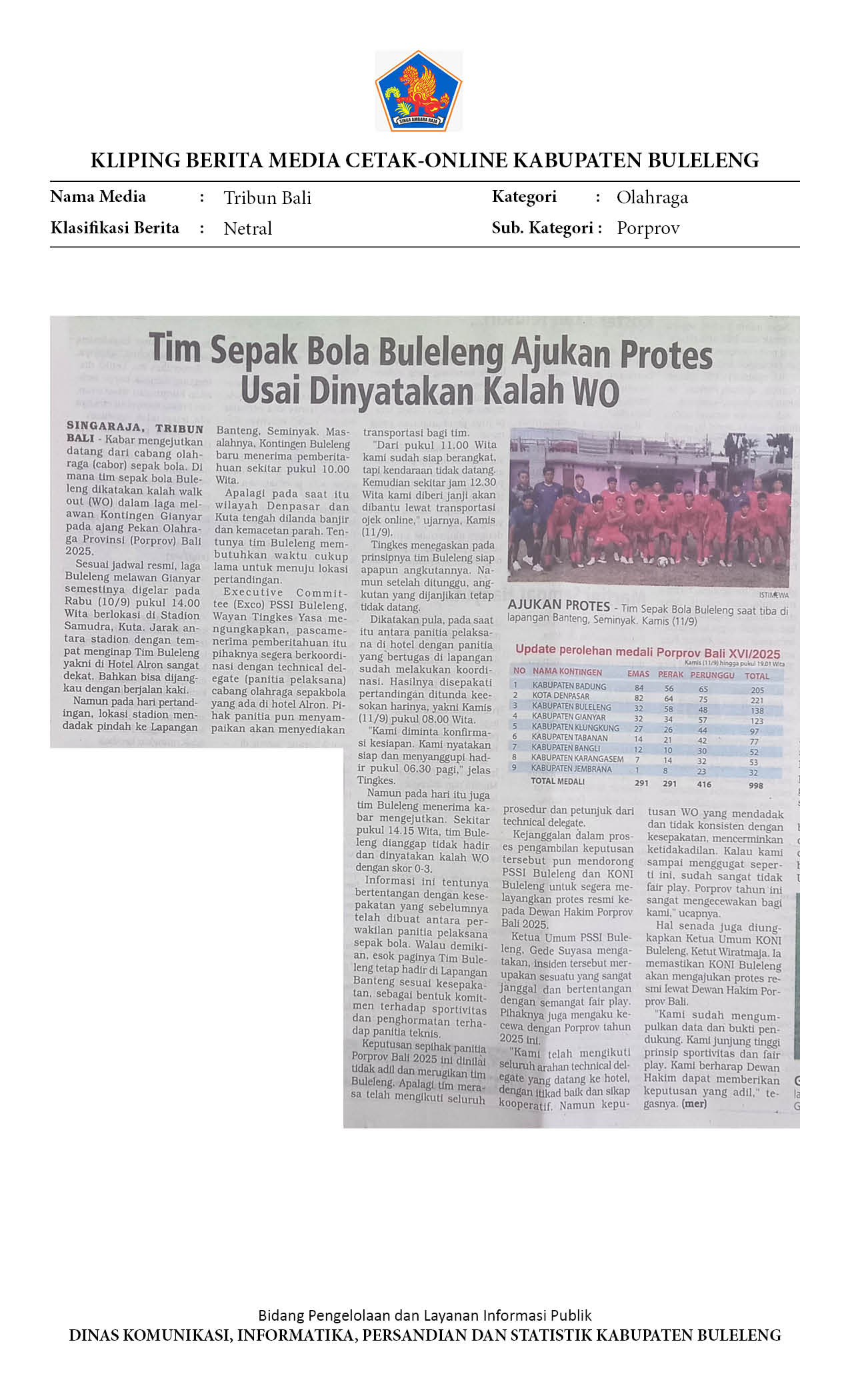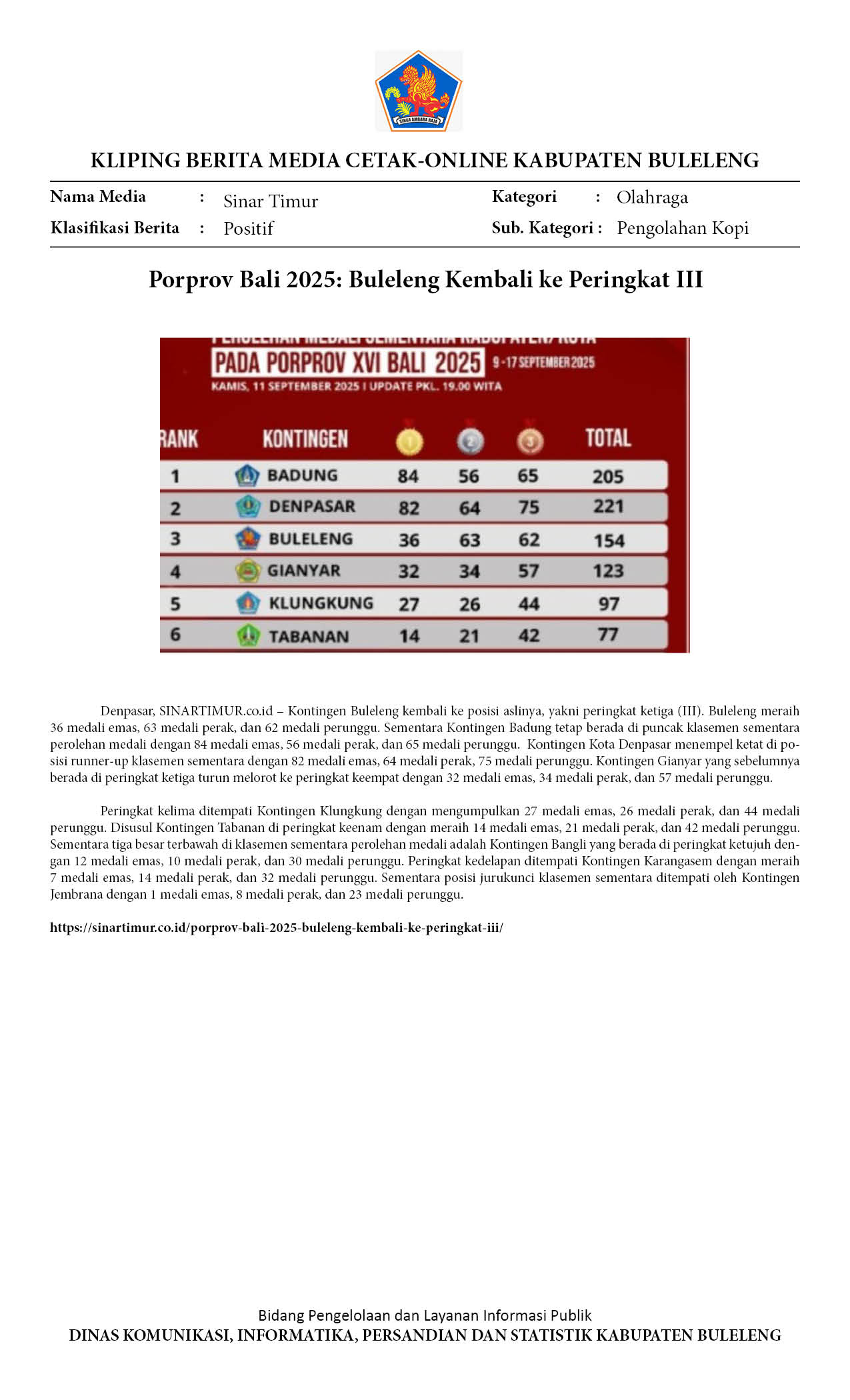 PORPROV BALI 2025: BULELENG KEMBALI KE PERINGKAT III