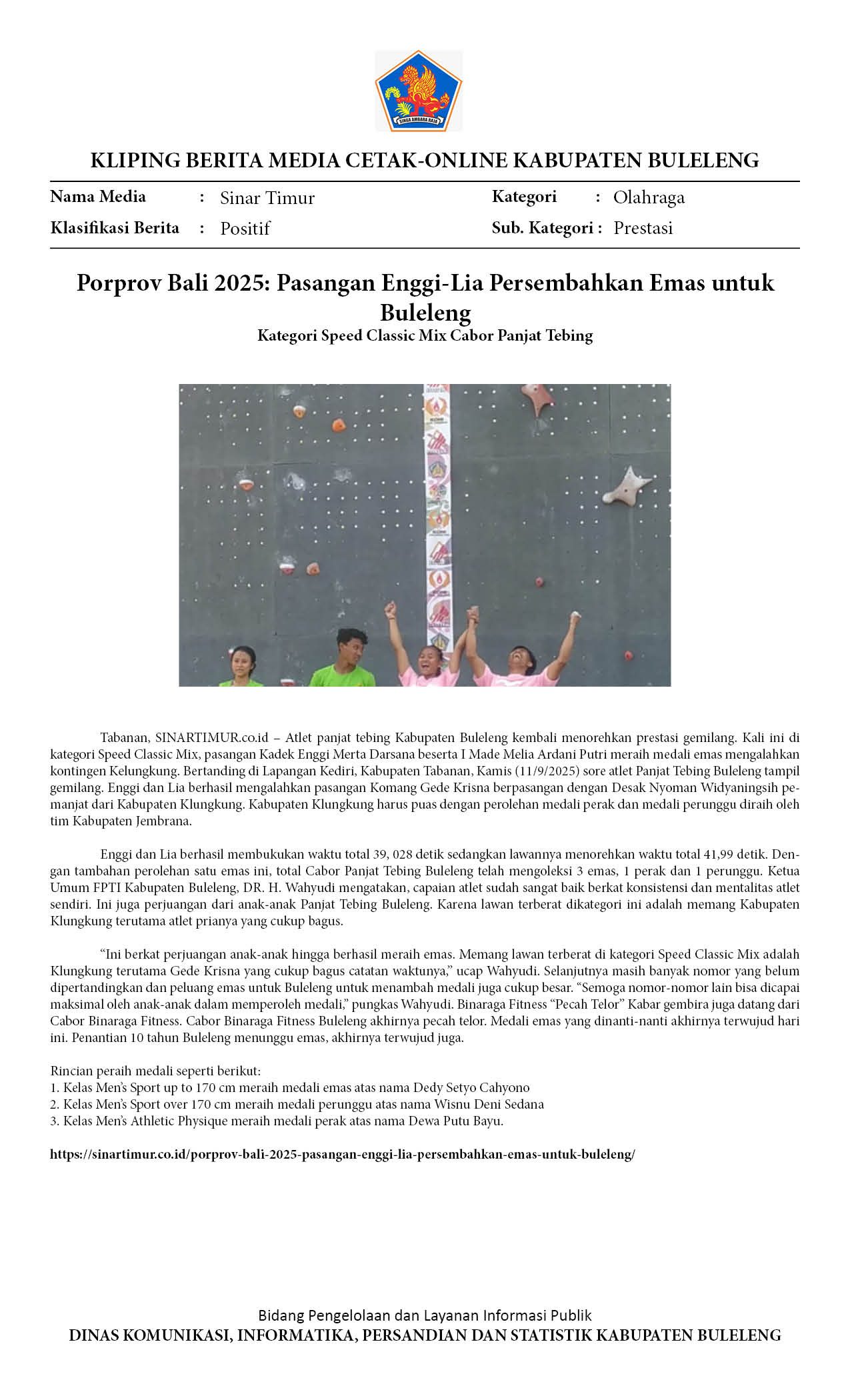 Kliping Kategori Olahraga Edisi 12 September 2025