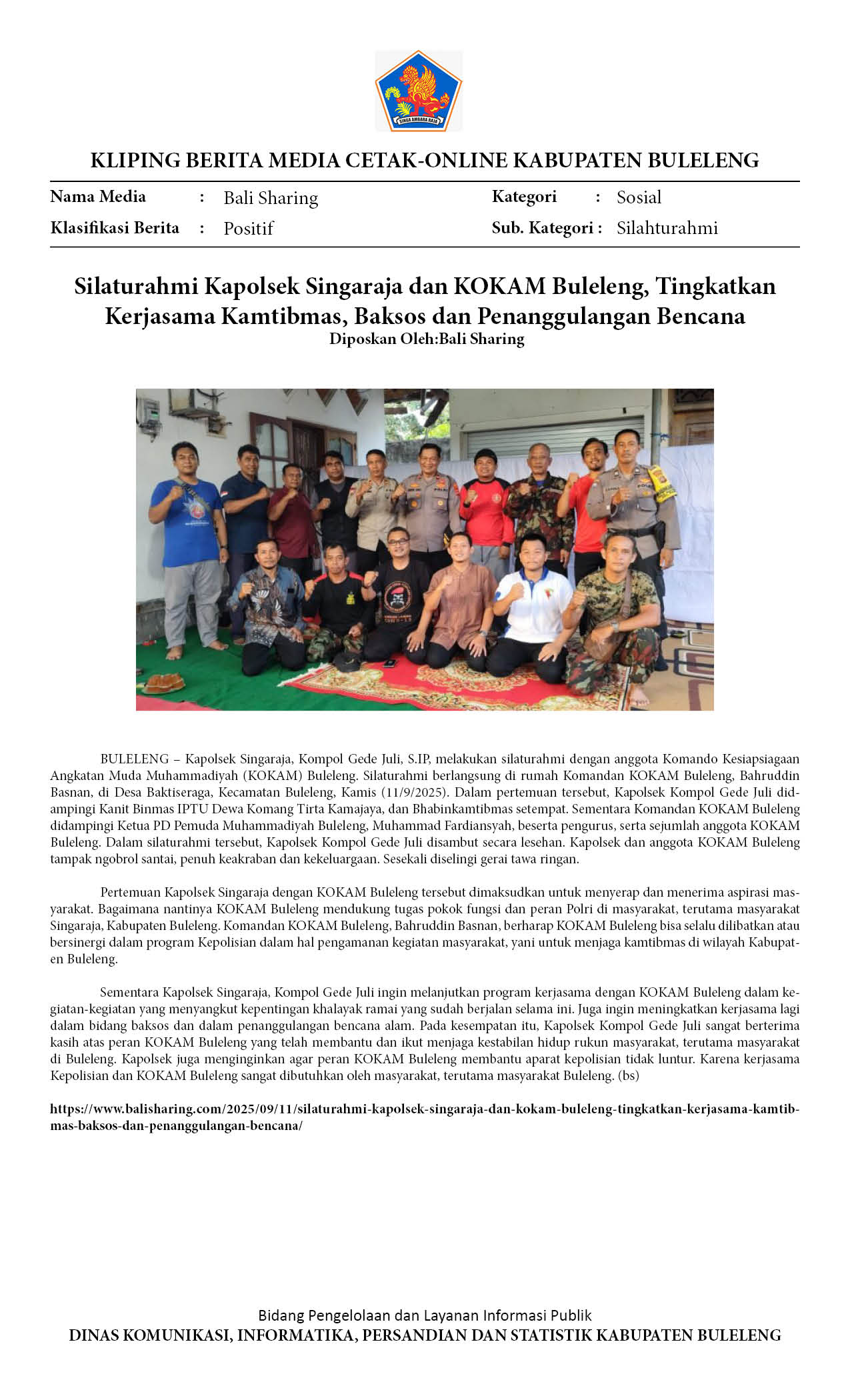 SILATURAHMI KAPOLSEK SINGARAJA DAN KOKAM BULELENG, TINGKATKAN KERJASAMA KAMTIBMAS, BAKSOS DAN PENANGGULANGAN BENCANA