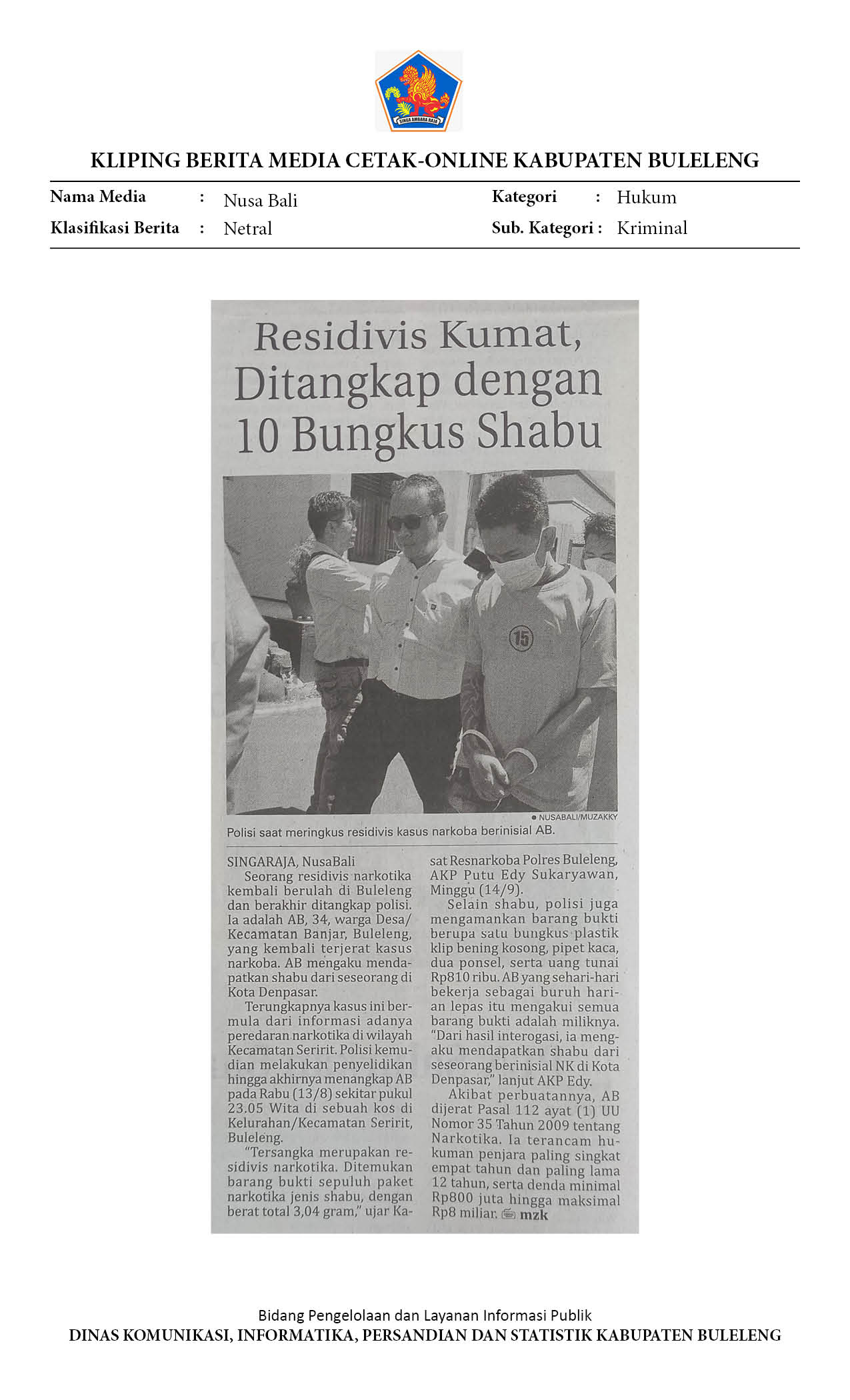 RESIDIVIS KUMAT, DITANGKAP DENGAN 10 BUNGKUS SHABU