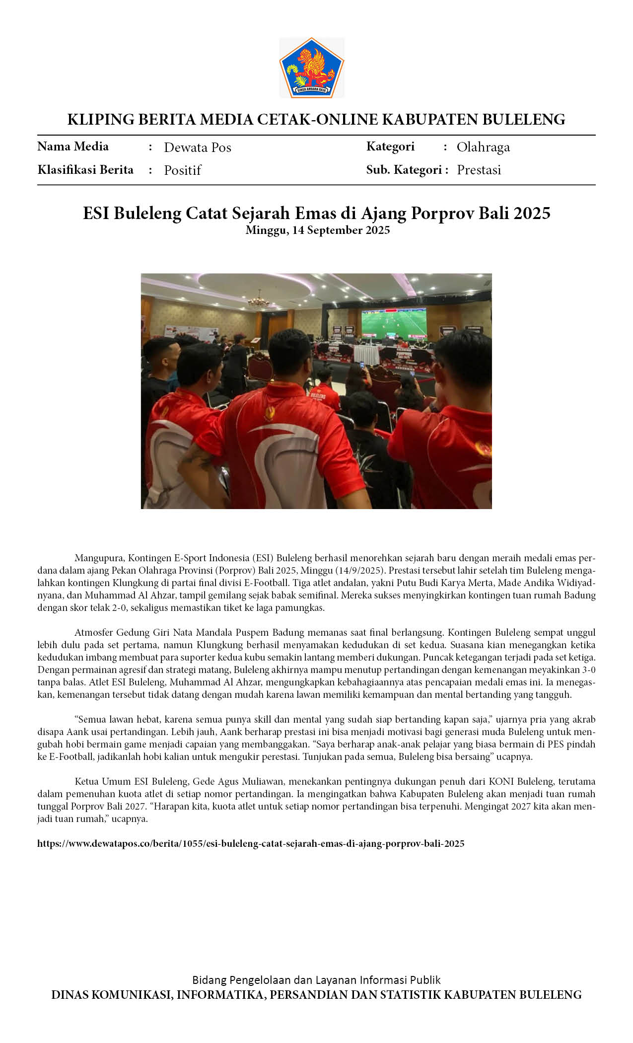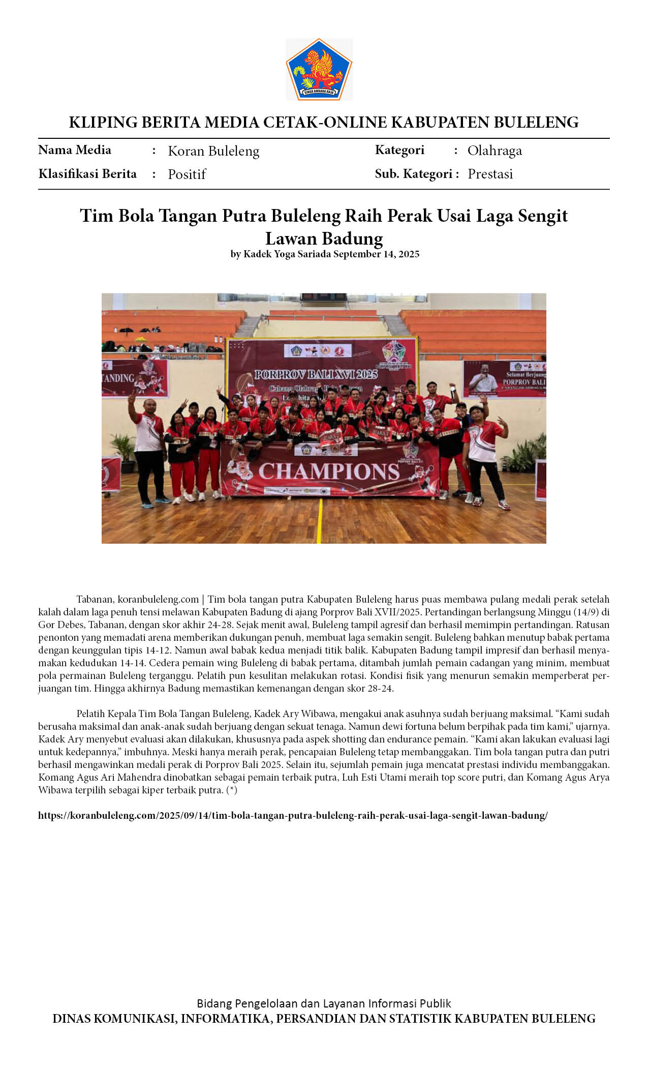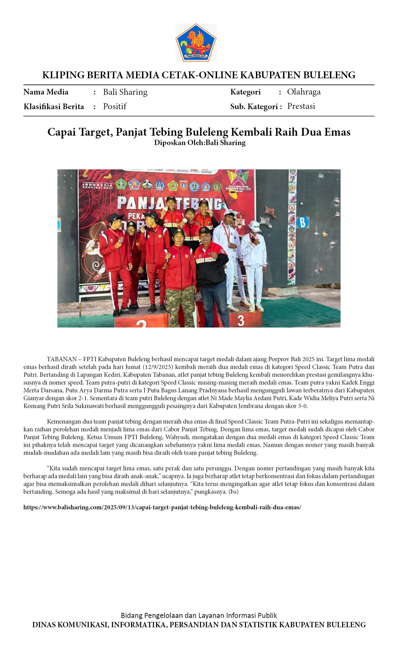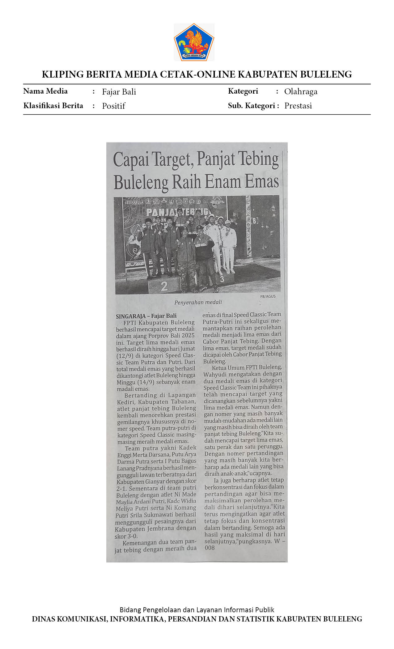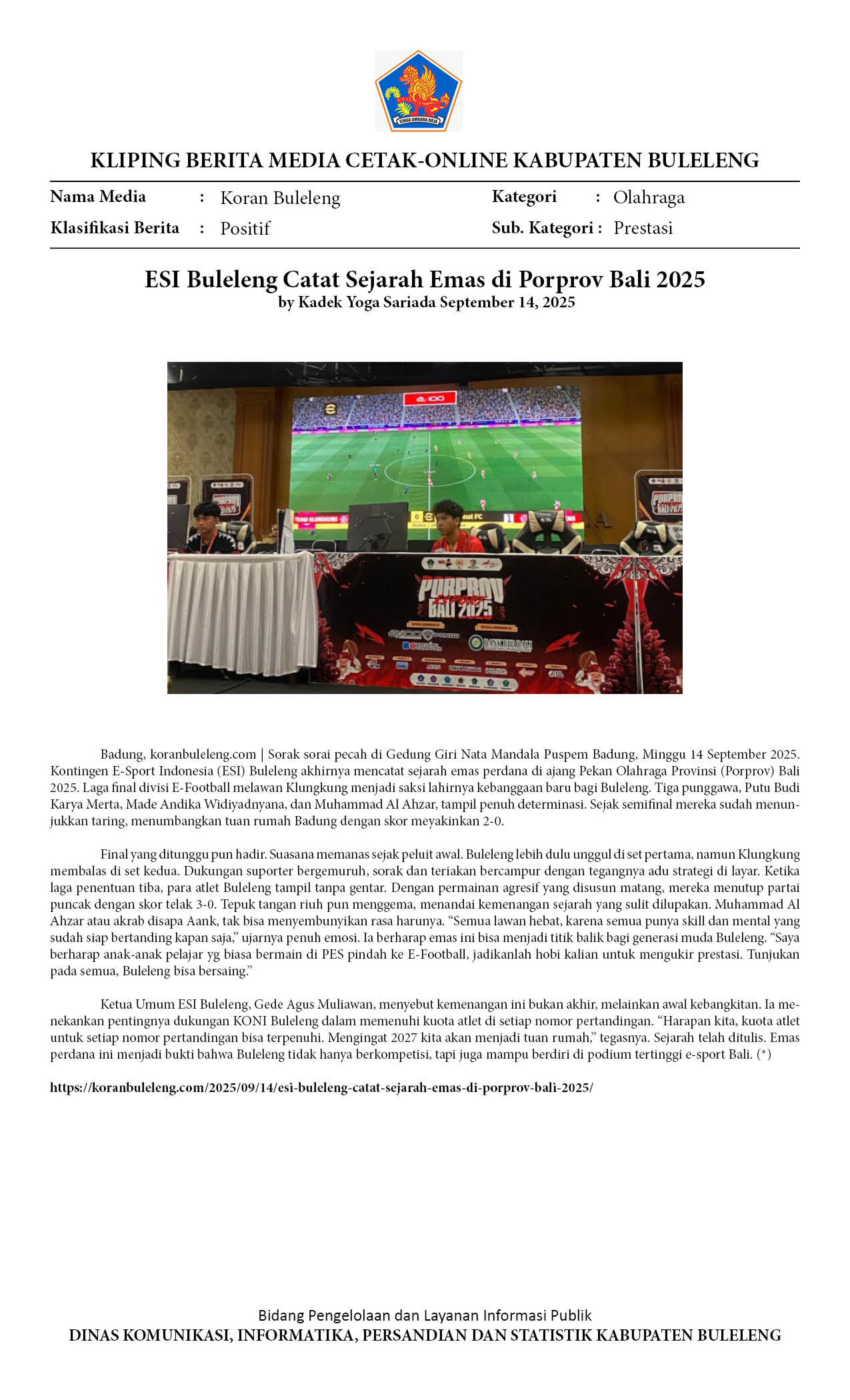 Kliping Kategori Olahraga Edisi 15 September 2025