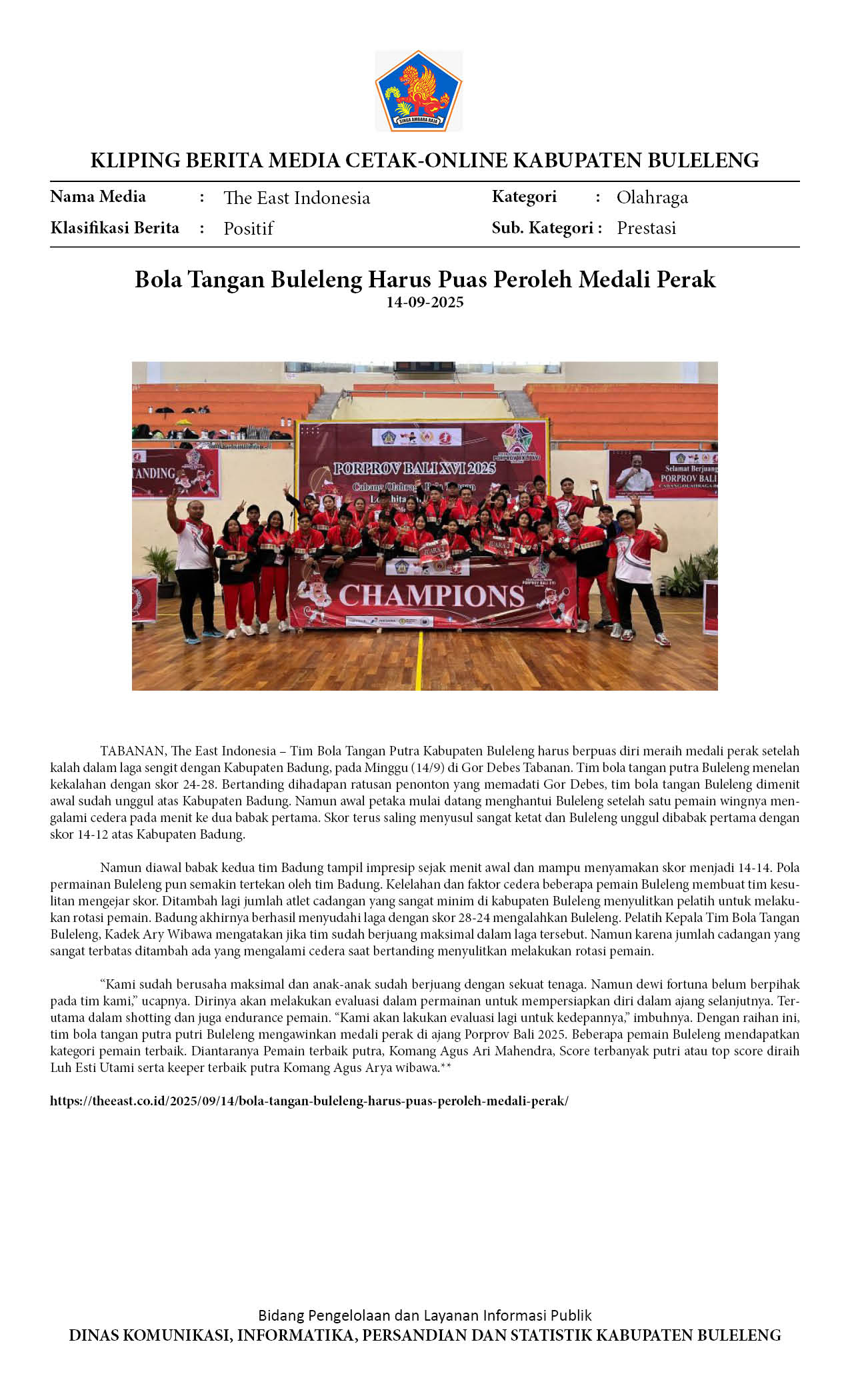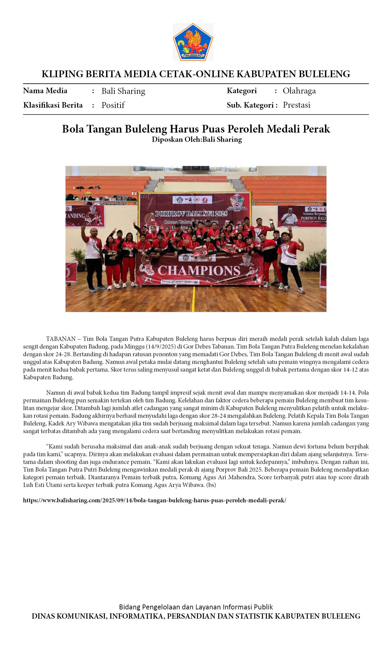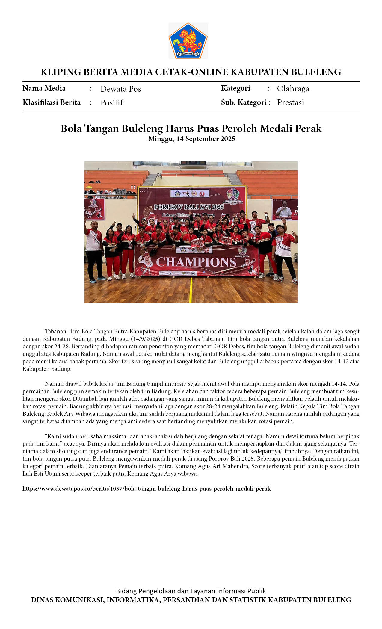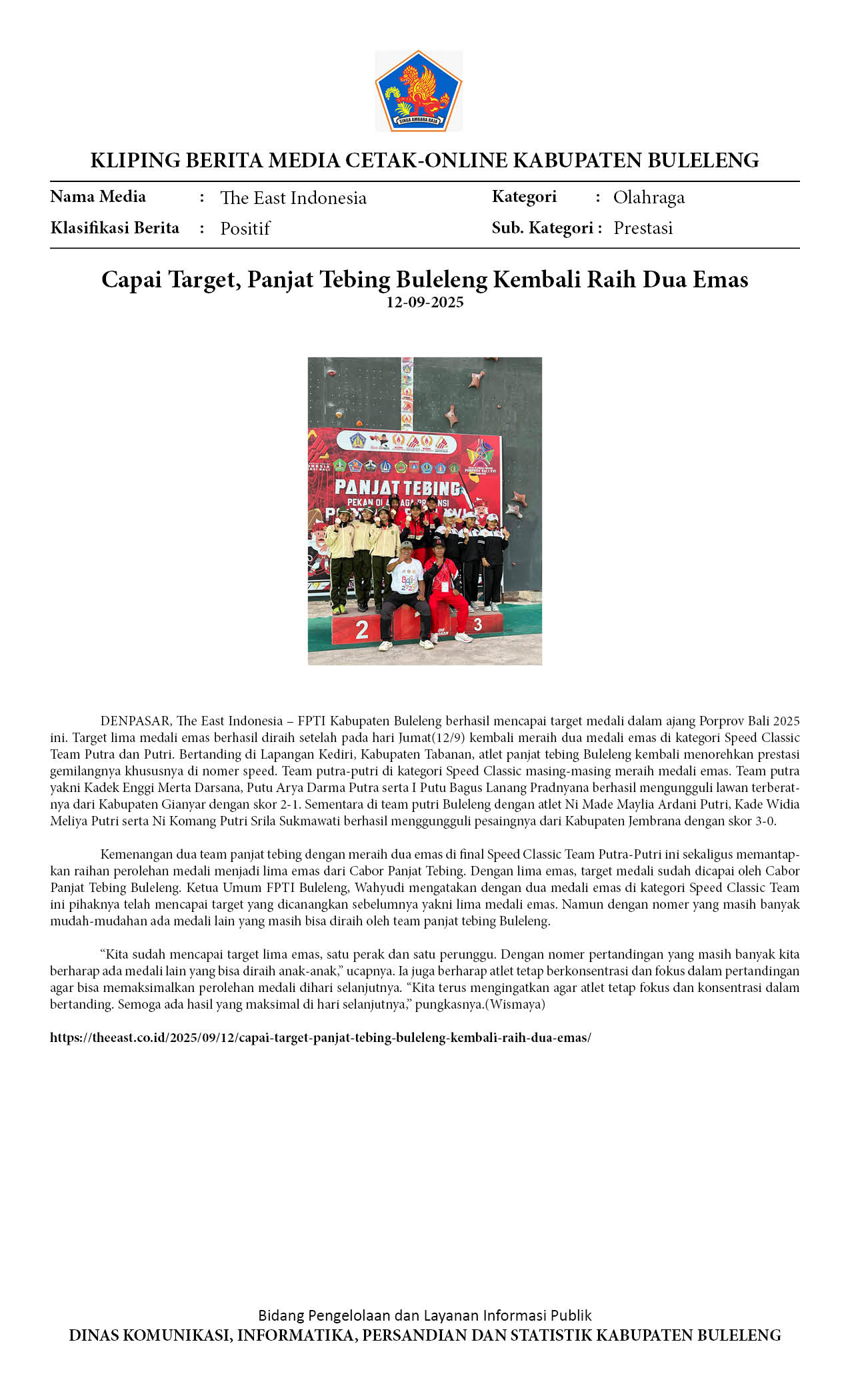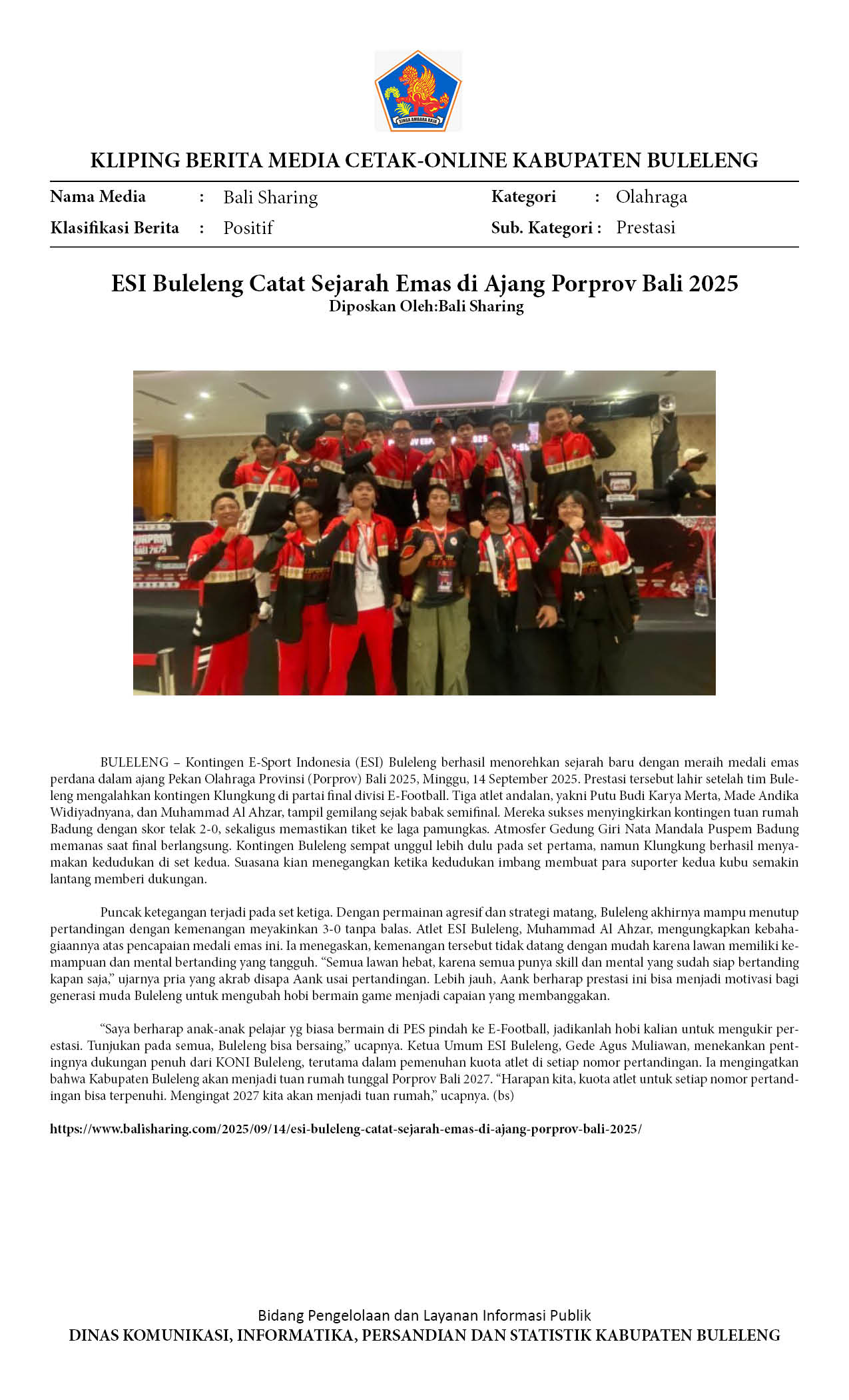 Kliping Kategori Olahraga Edisi 15 September 2025