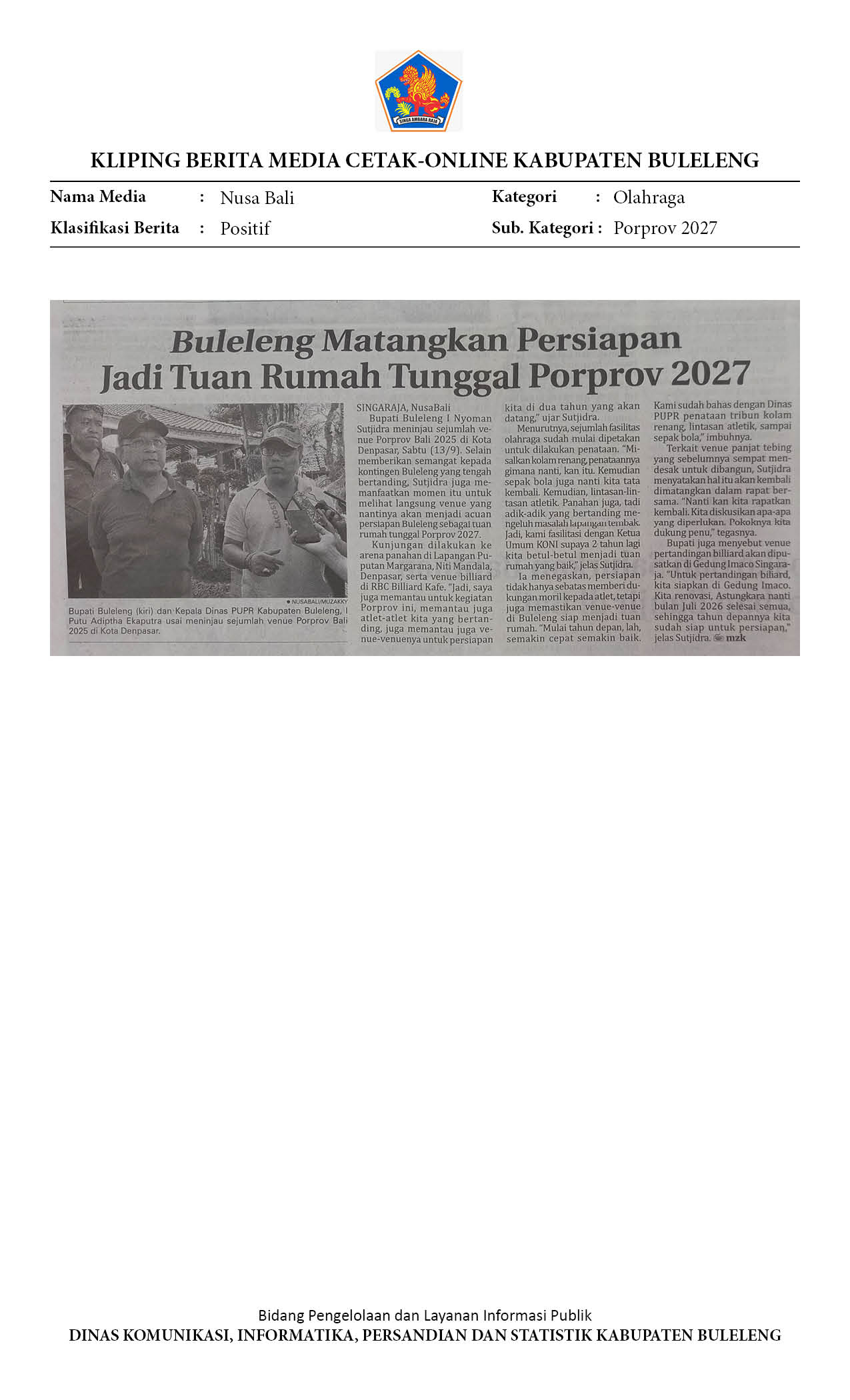 BULELENG MATANGKAN PERSIAPAN JADI TUAN RUMAH TUNGGAL PORPROV 2027