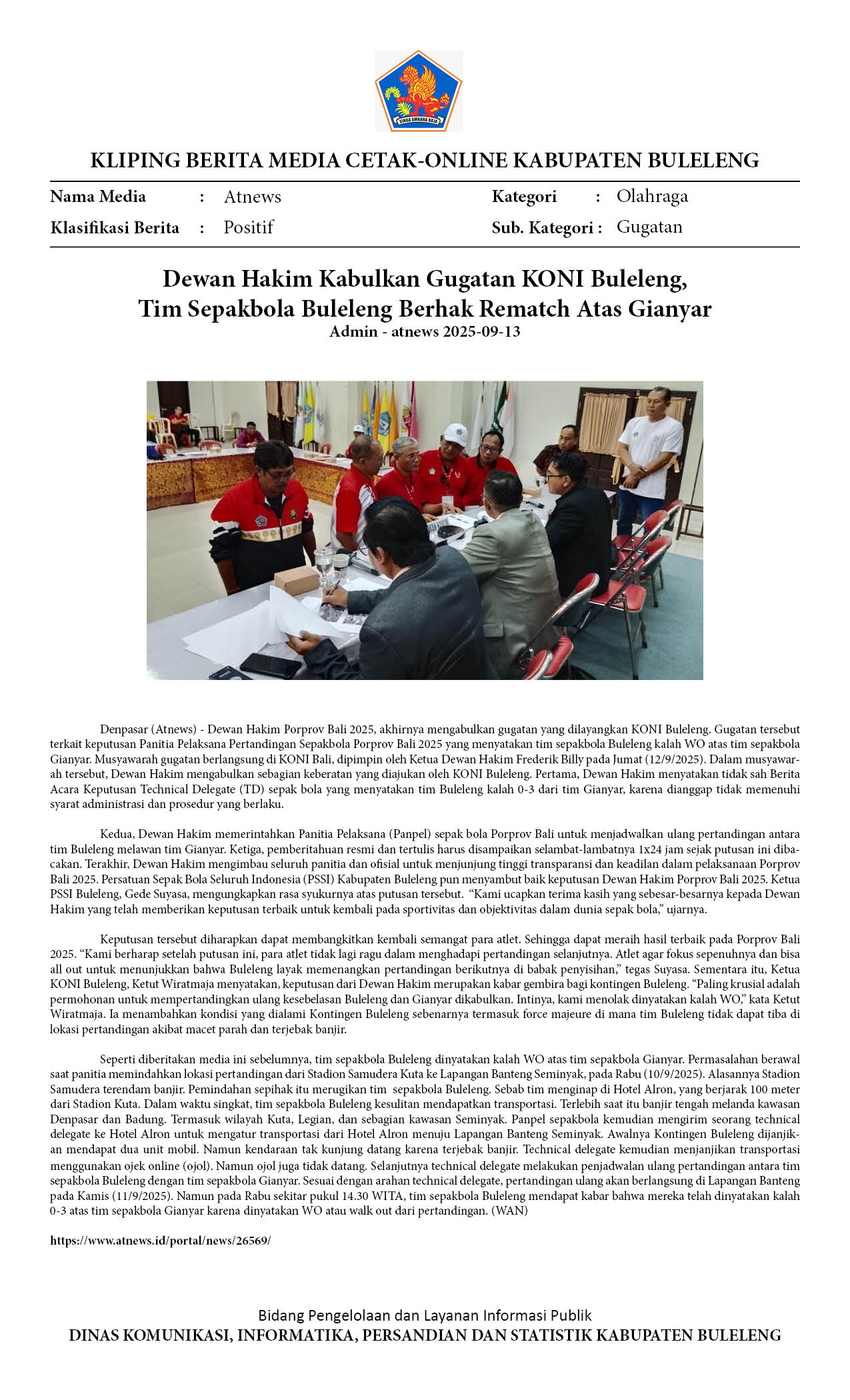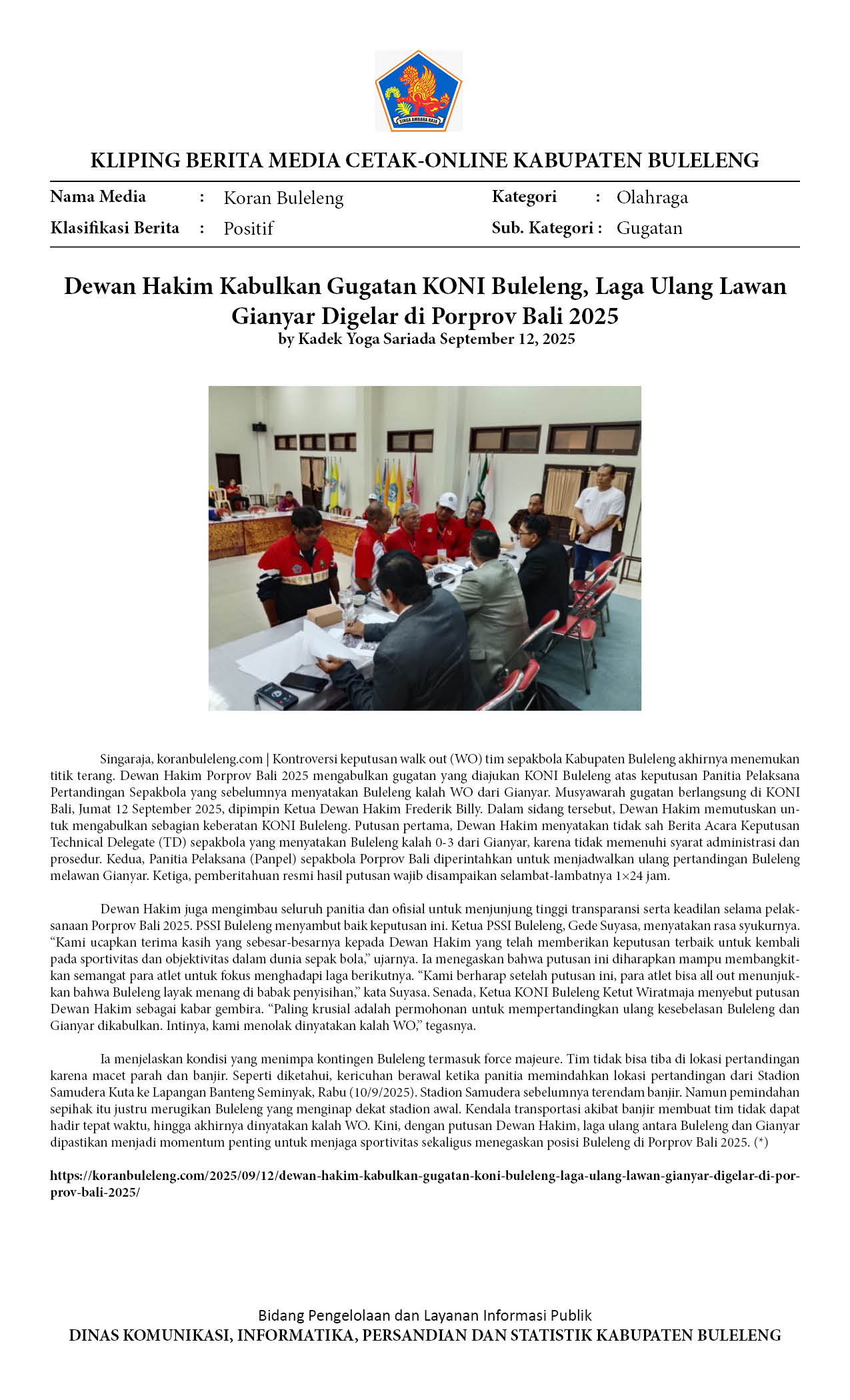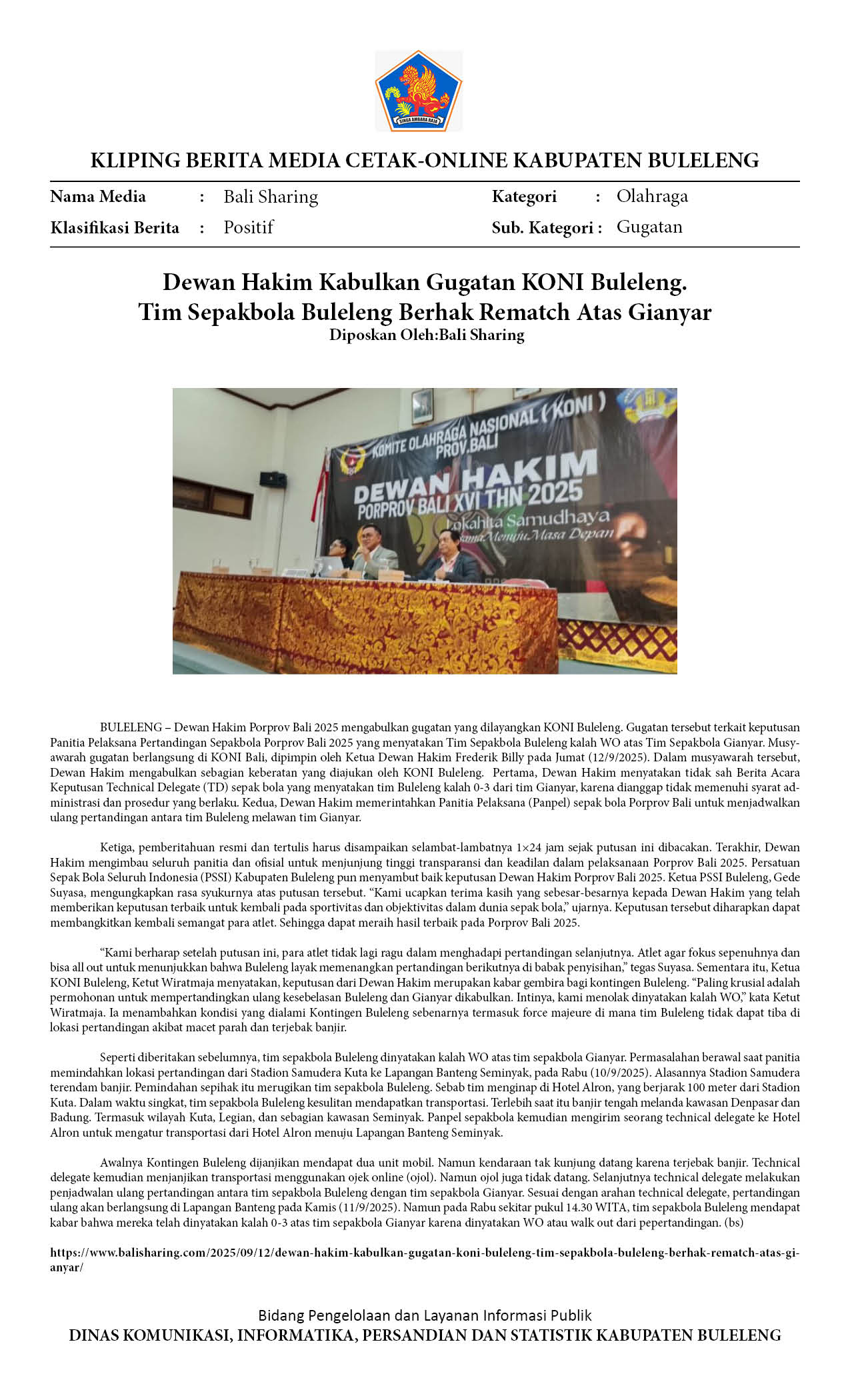 DEWAN HAKIM KABULKAN GUGATAN KONI BULELENG, LAGA ULANG LAWAN GIANYAR DIGELAR DI PORPROV BALI 2025
