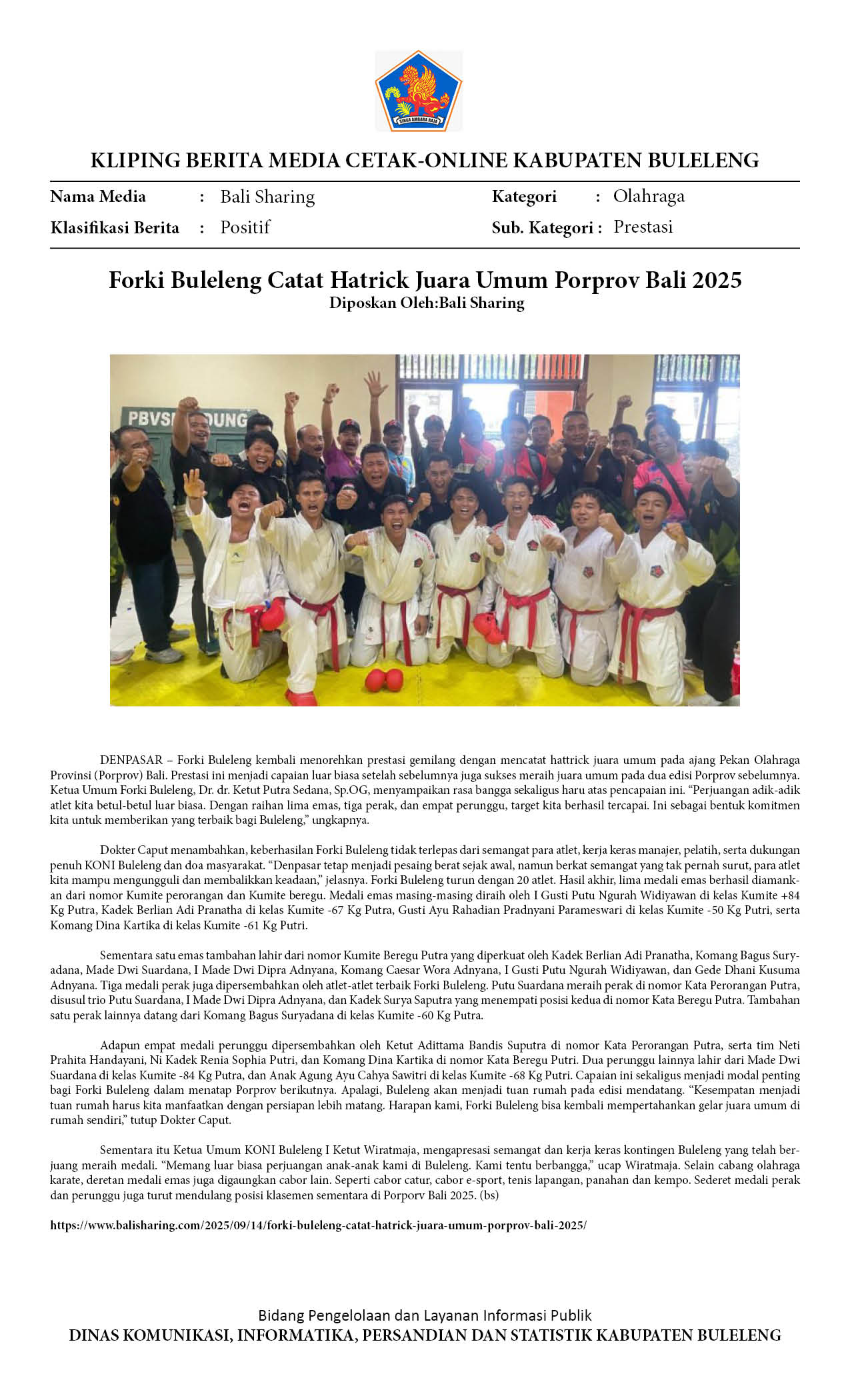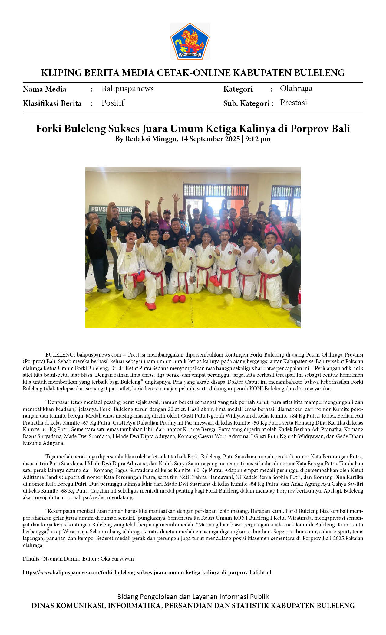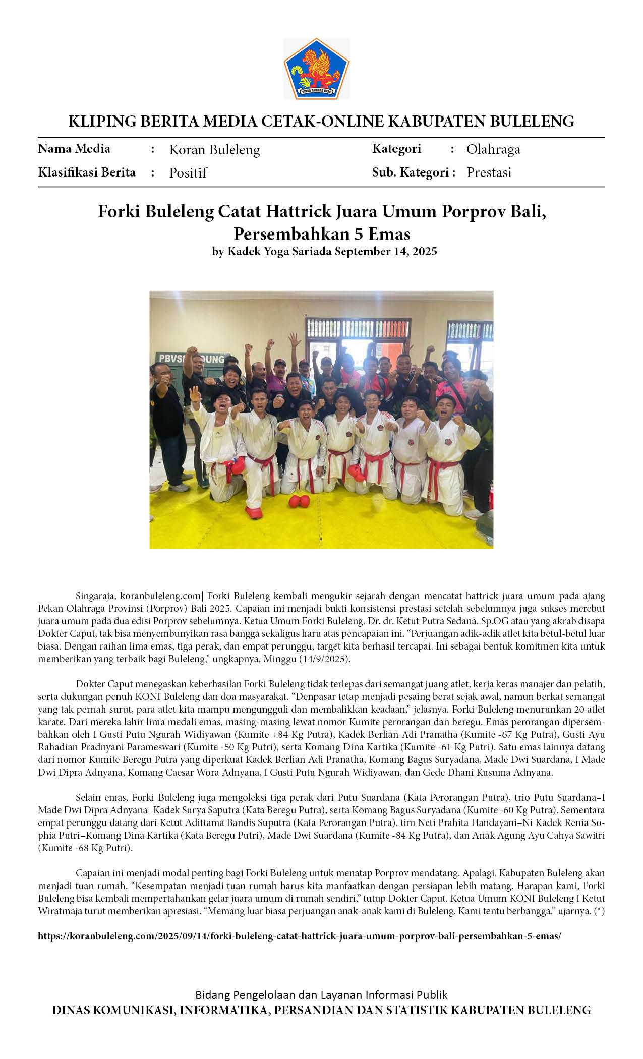 FORKI BULELENG CATAT HATTRICK JUARA UMUM PORPROV BALI, PERSEMBAHKAN 5 EMAS