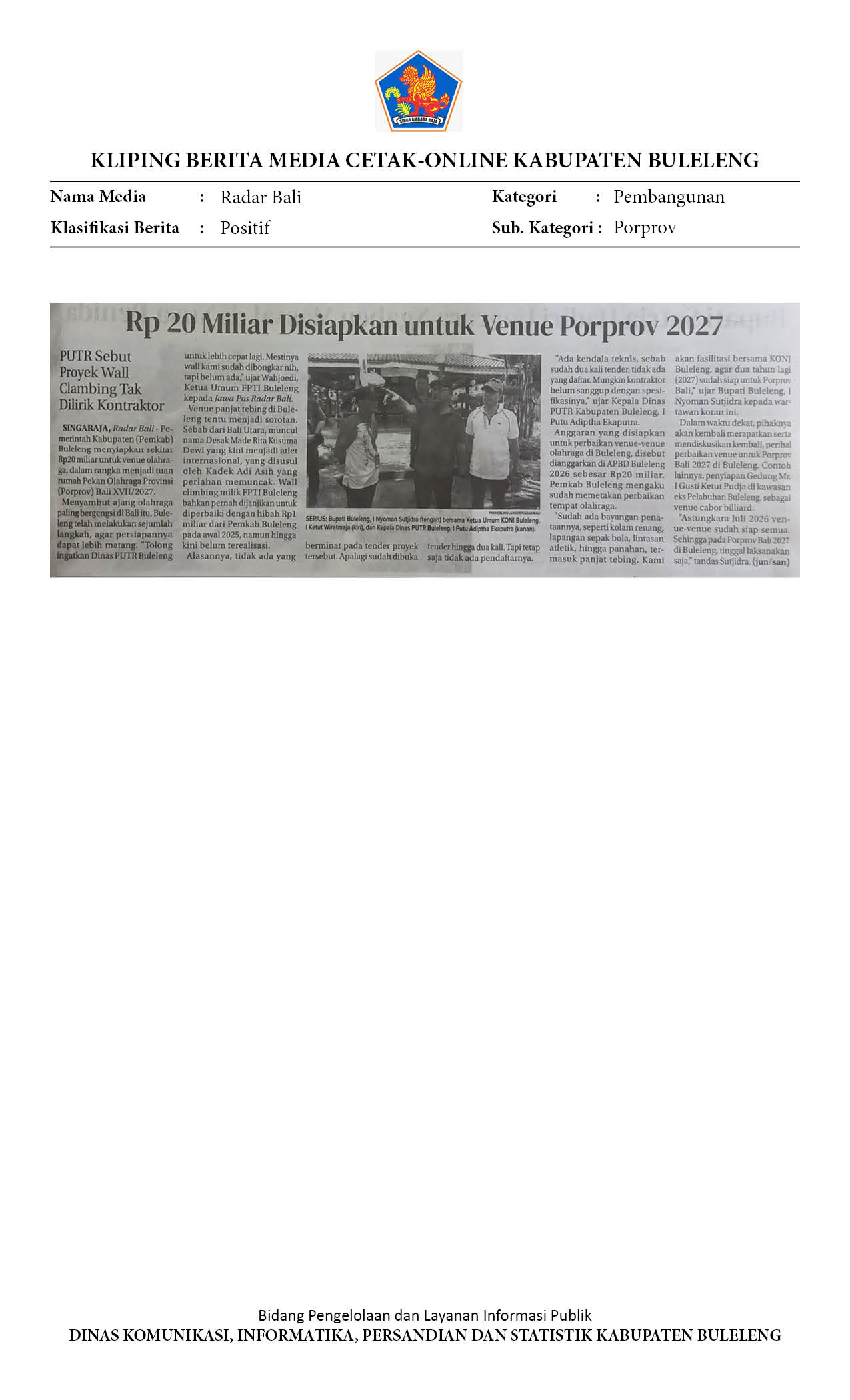 RP 20 MILIAR DISIAPKAN UNTUK VENUE PORPROV 2027