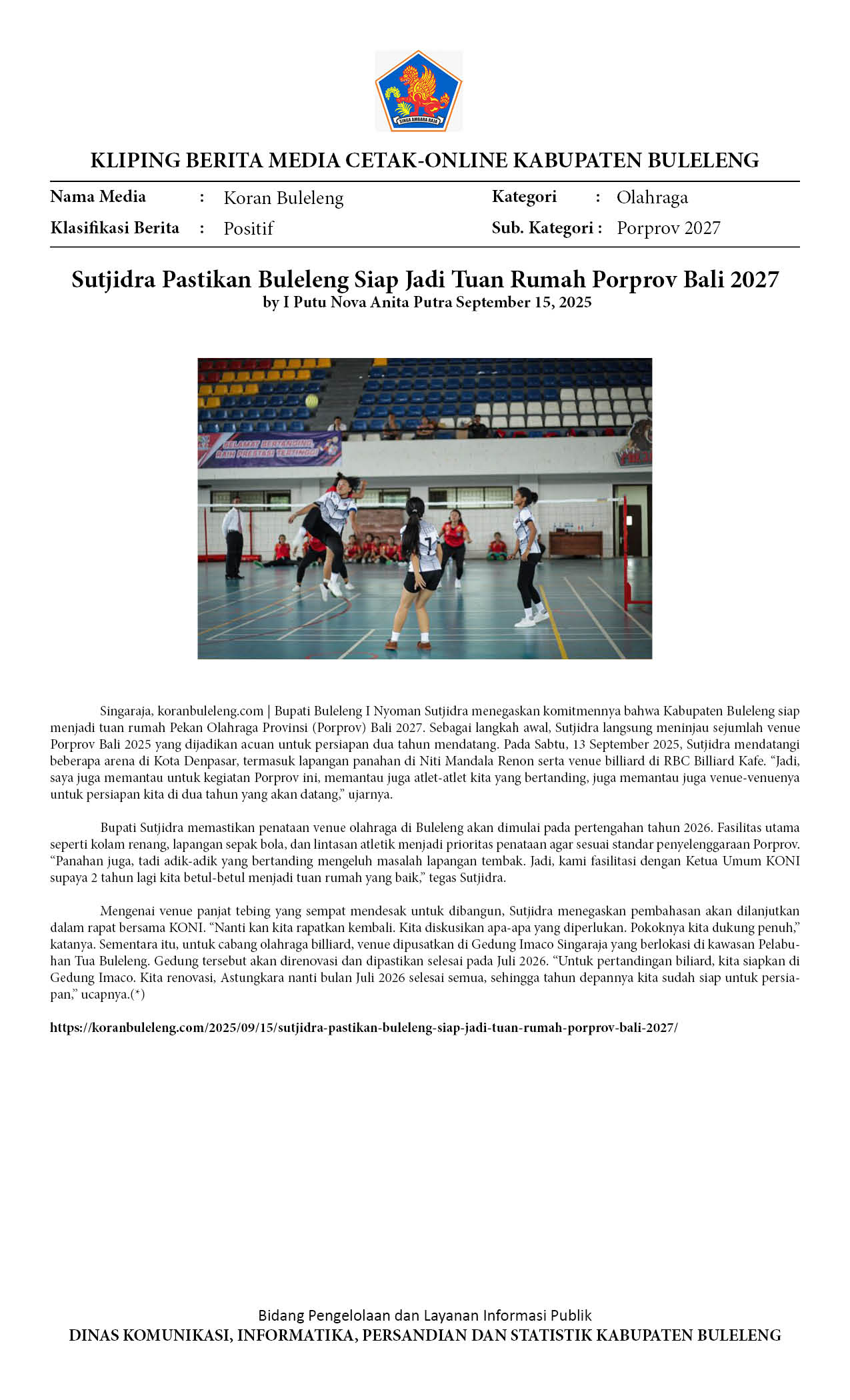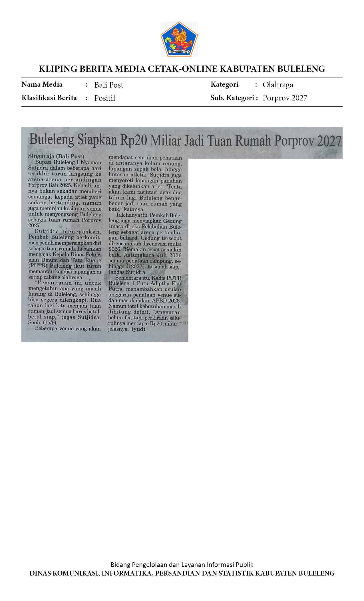 BULELENG SIAPKAN RP 20 MILIAR JADI TUAN RUMAH PORPROV 2027