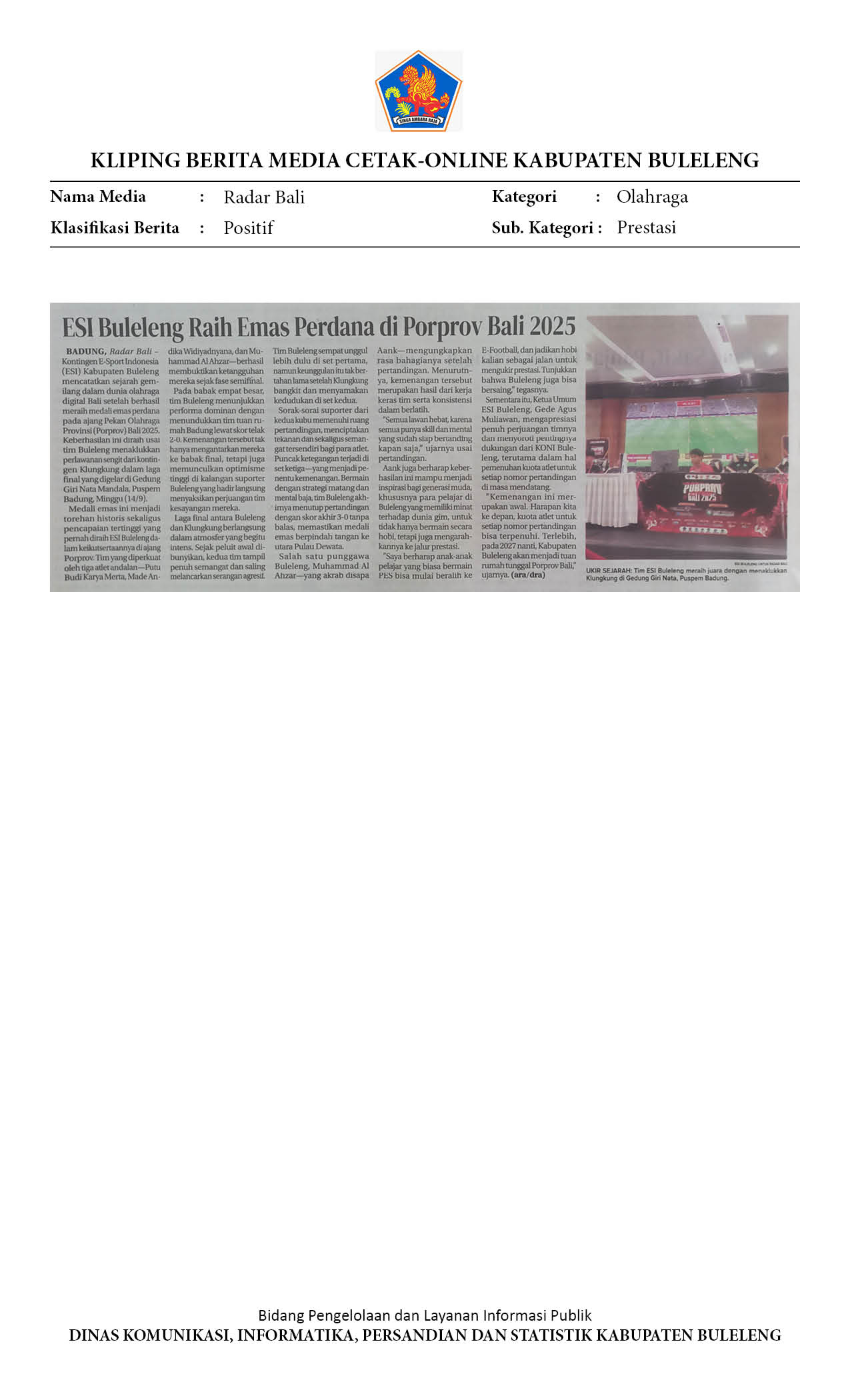 ESI BULELENG RAIH EMAS PERDANA DI PORPROV BALI 2025