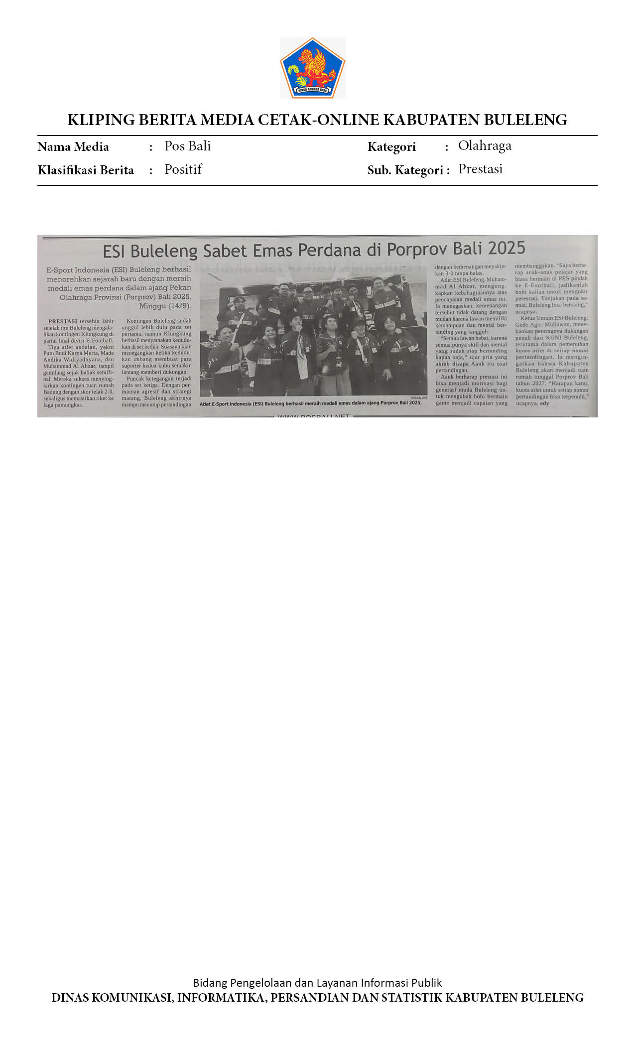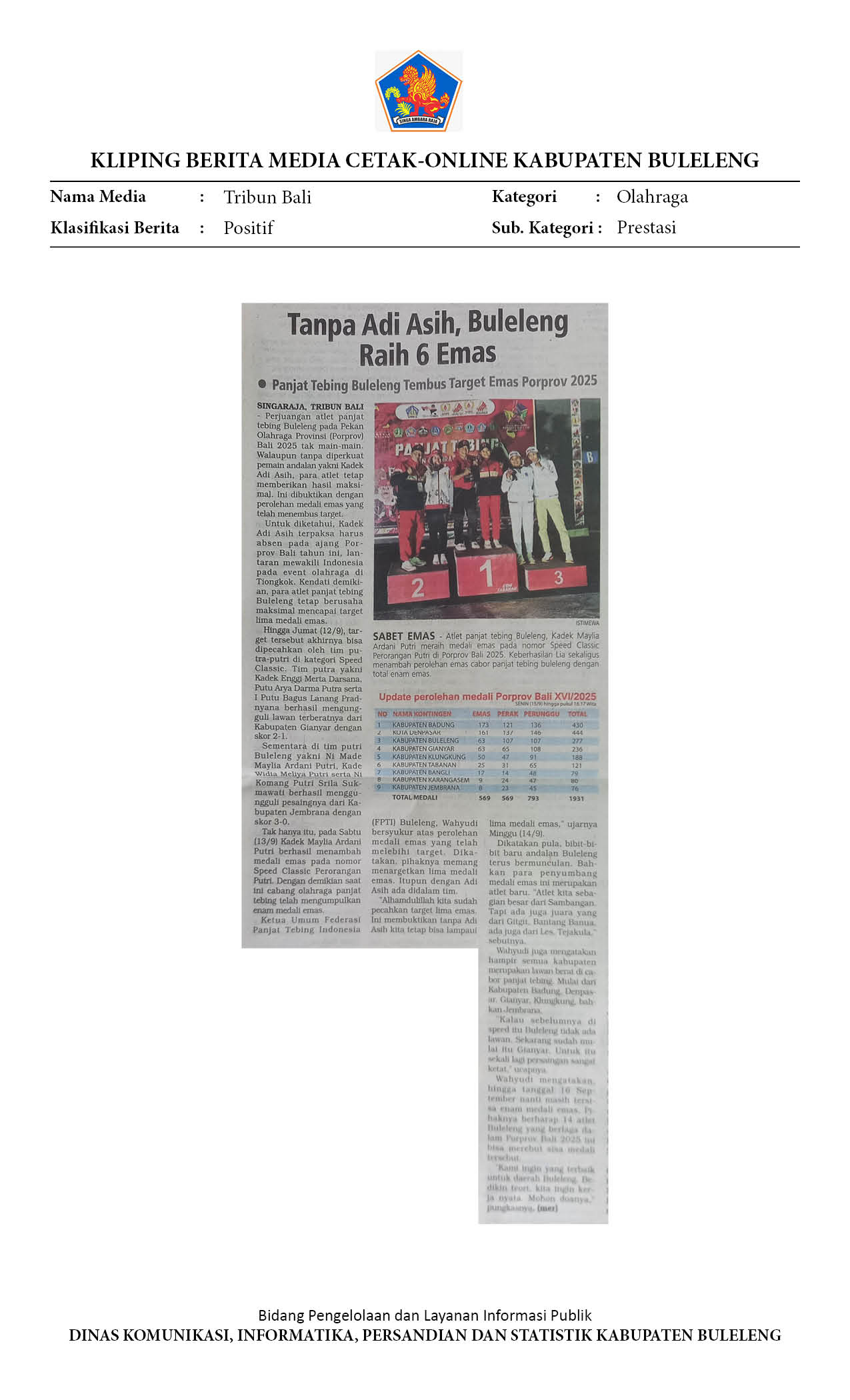 Kliping Kategori Olahraga Edisi 16 September 2025