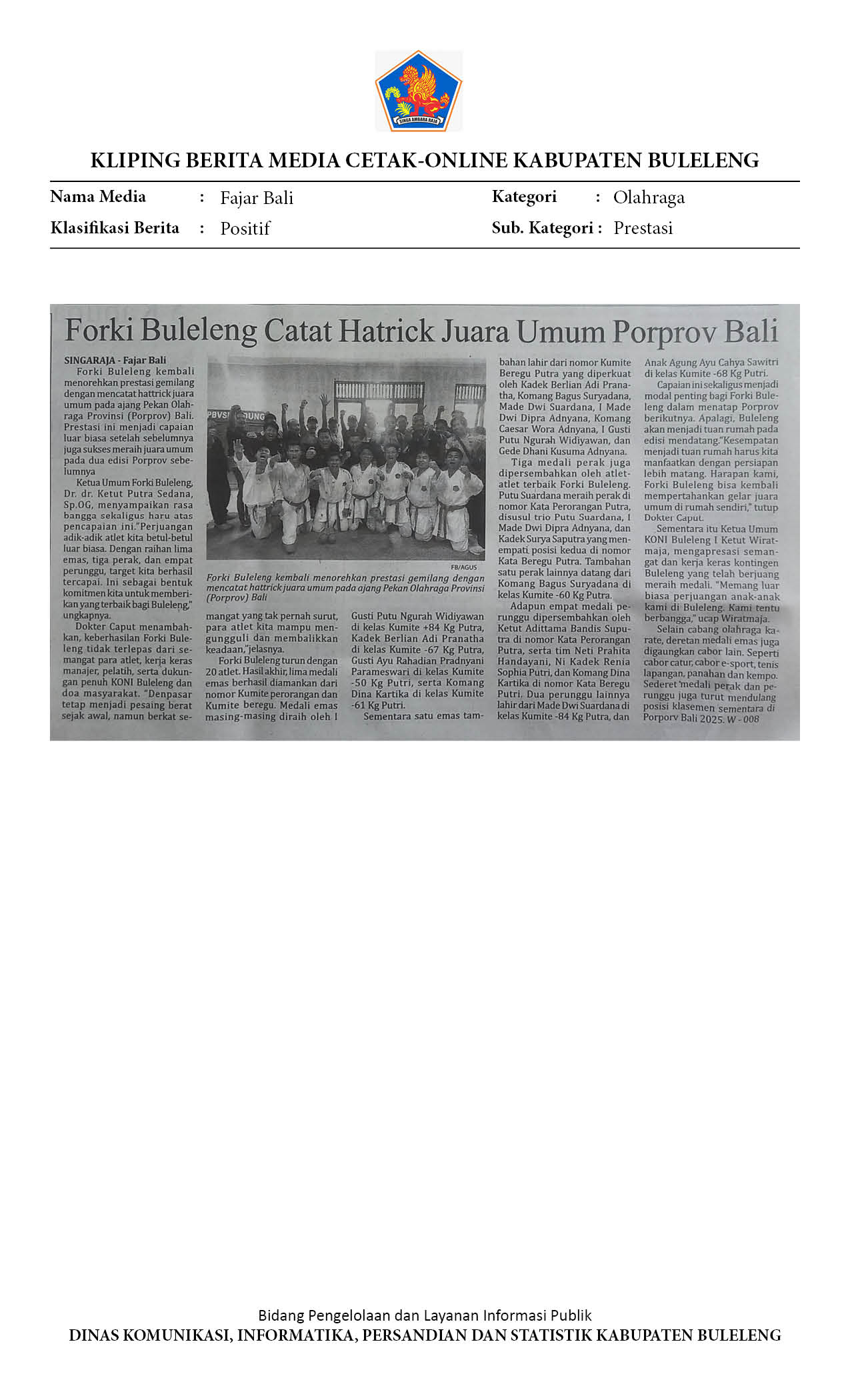 FORKI BULELENG CATAT HATRICK JUARA UMUM PORPROV BALI