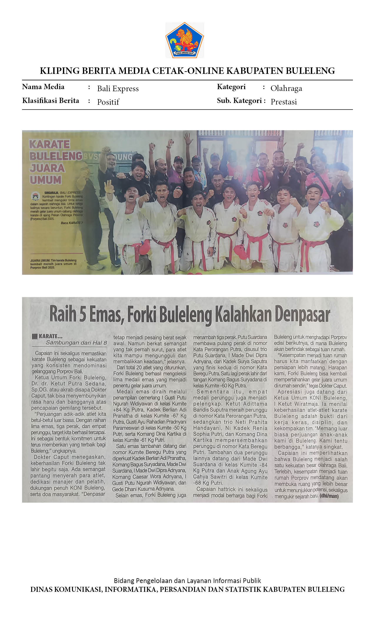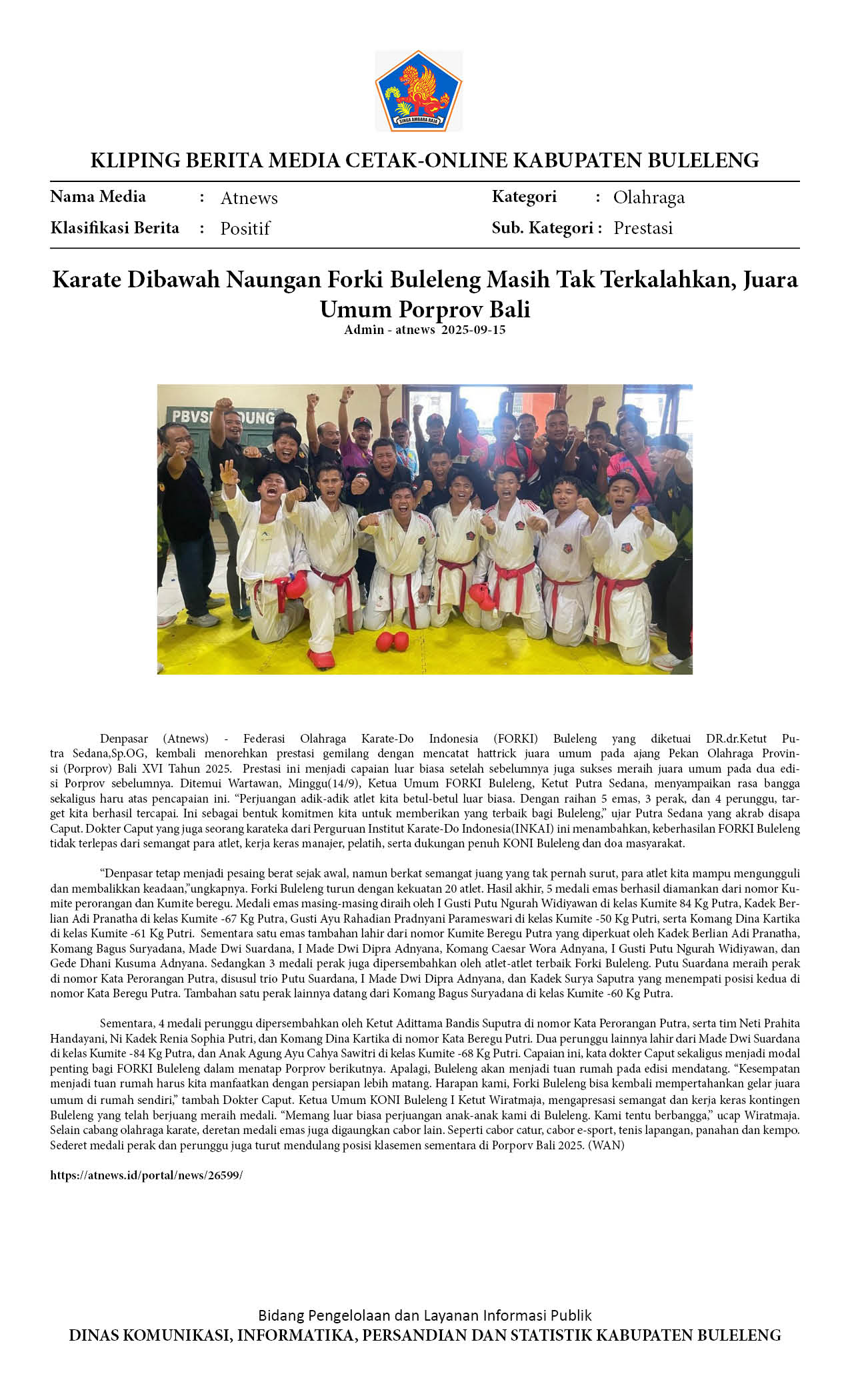 KARATE DIBAWAH NAUNGAN FORKI BULELENG MASIH TAK TERKALAHKAN, JUARA UMUM PORPROV BALI