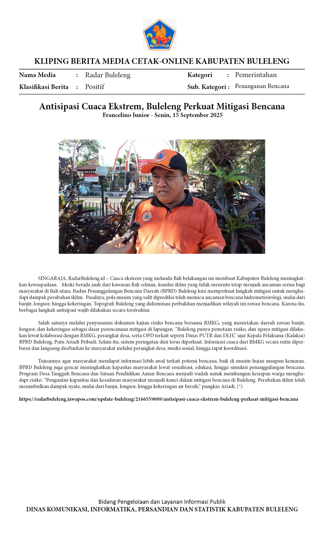 ANTISIPASI CUACA EKSTREM, BULELENG PERKUAT MITIGASI BENCANA