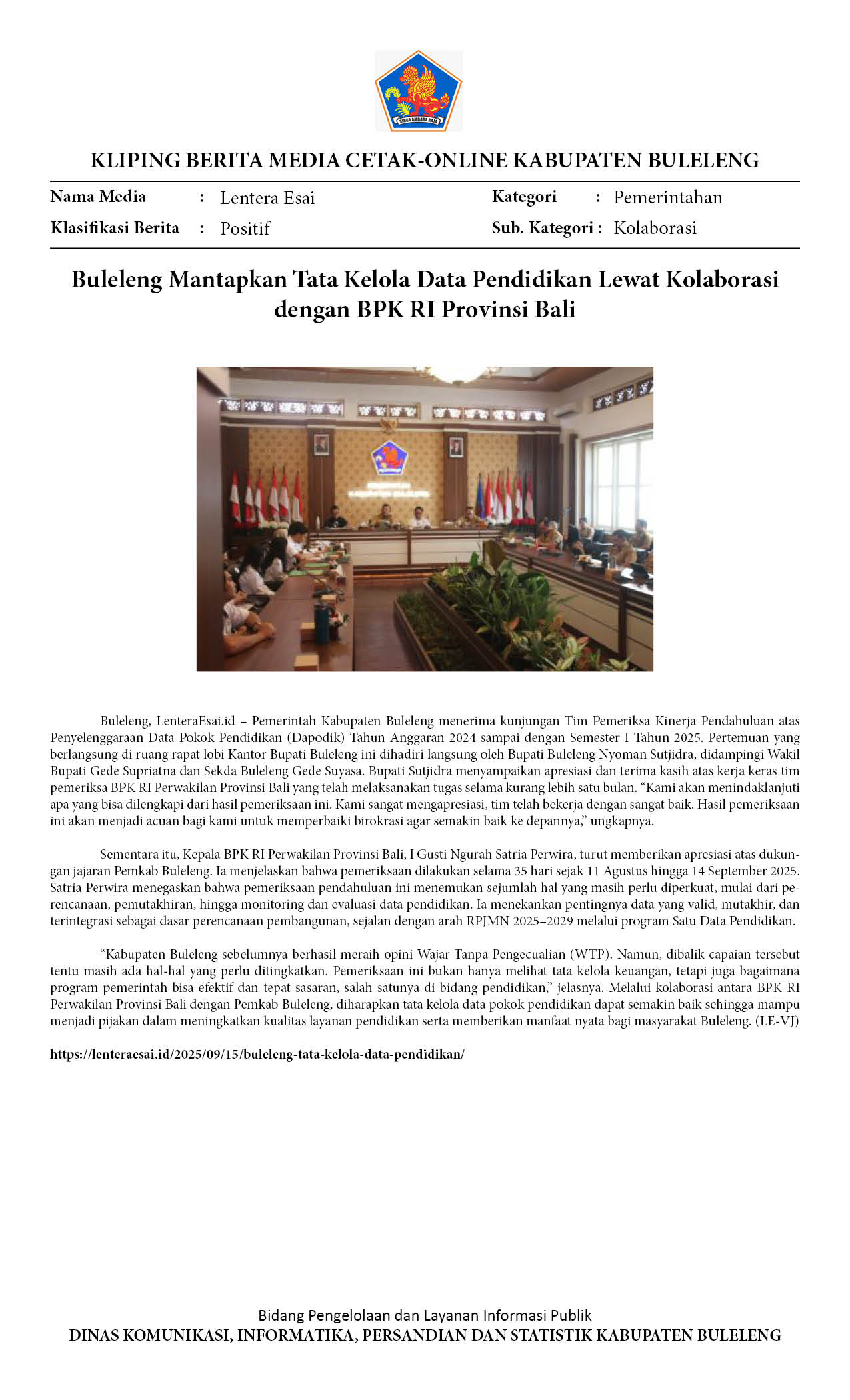 BULELENG MANTAPKAN TATA KELOLA DATA PENDIDIKAN LEWAT KOLABORASI DENGAN BPK RI PROVINSI BALI