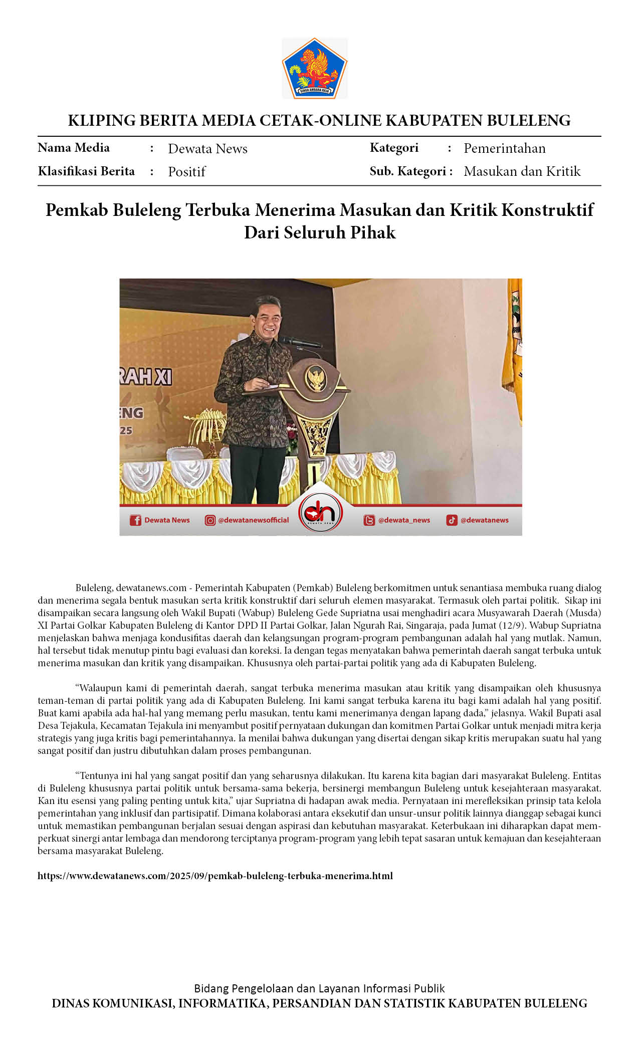 PEMKAB BULELENG TERBUKA MENERIMA MASUKAN DAN KRITIK KONSTRUKTIF DARI SELURUH PIHAK
