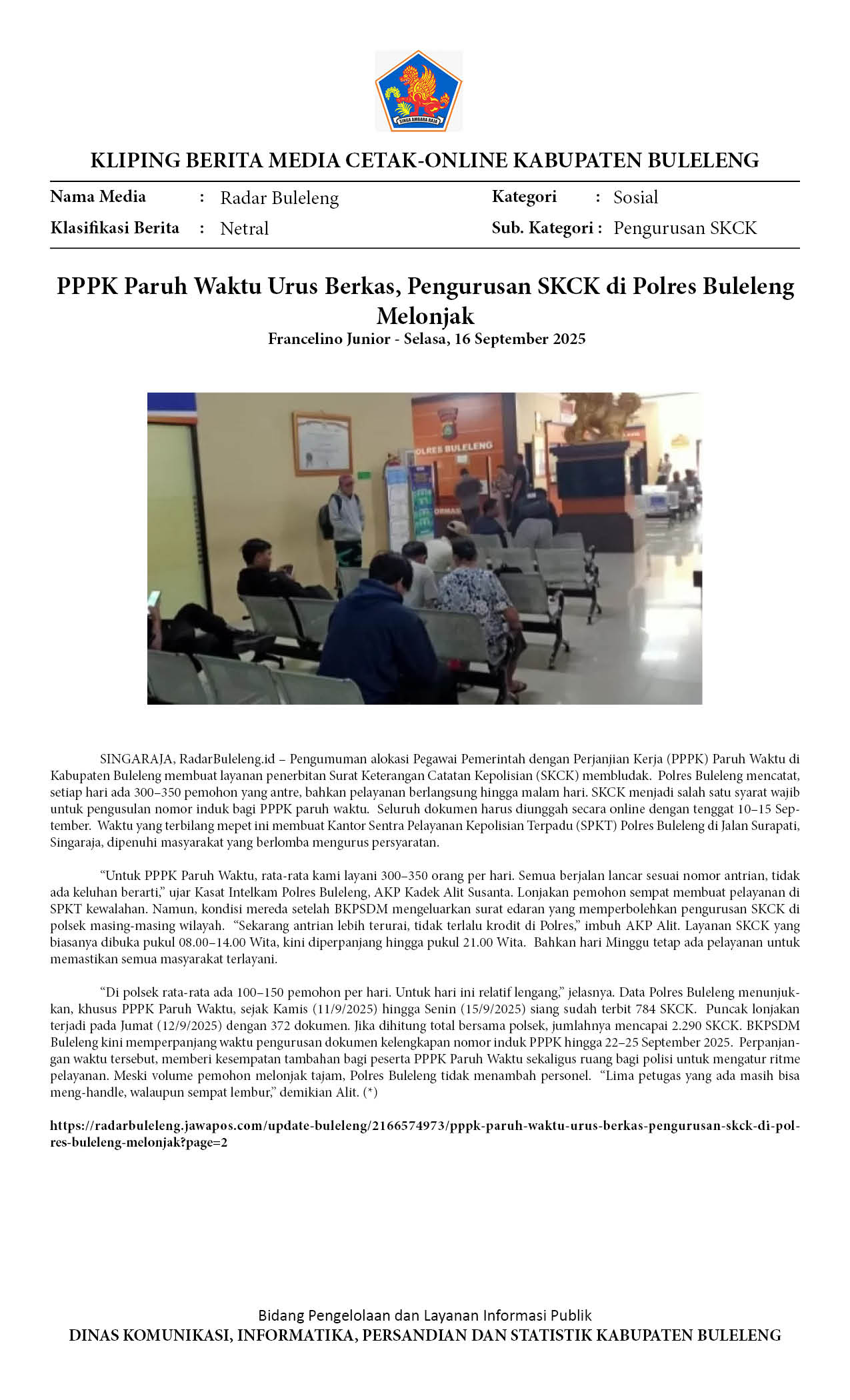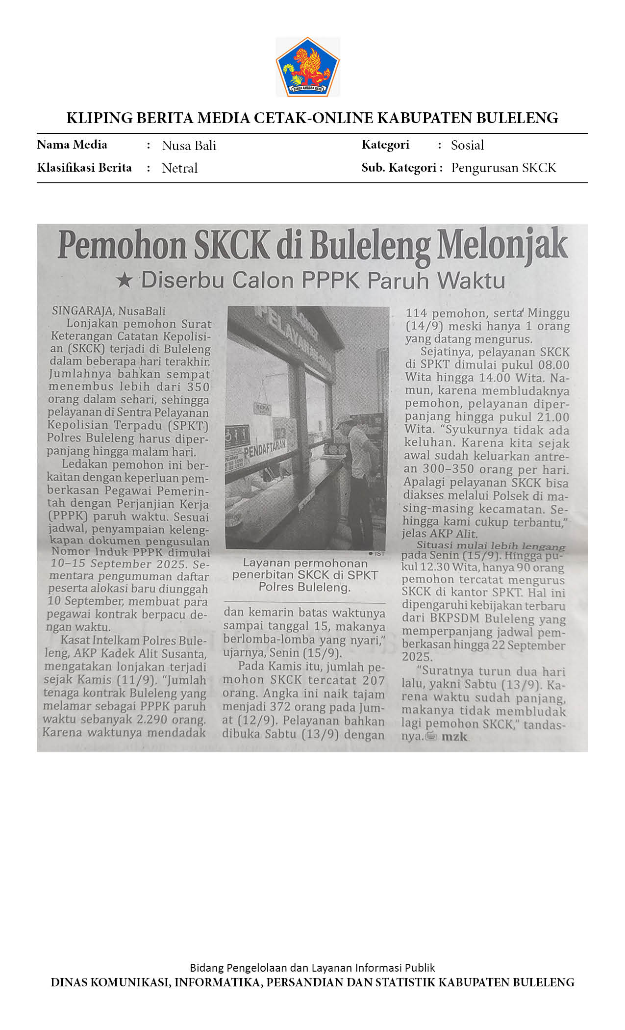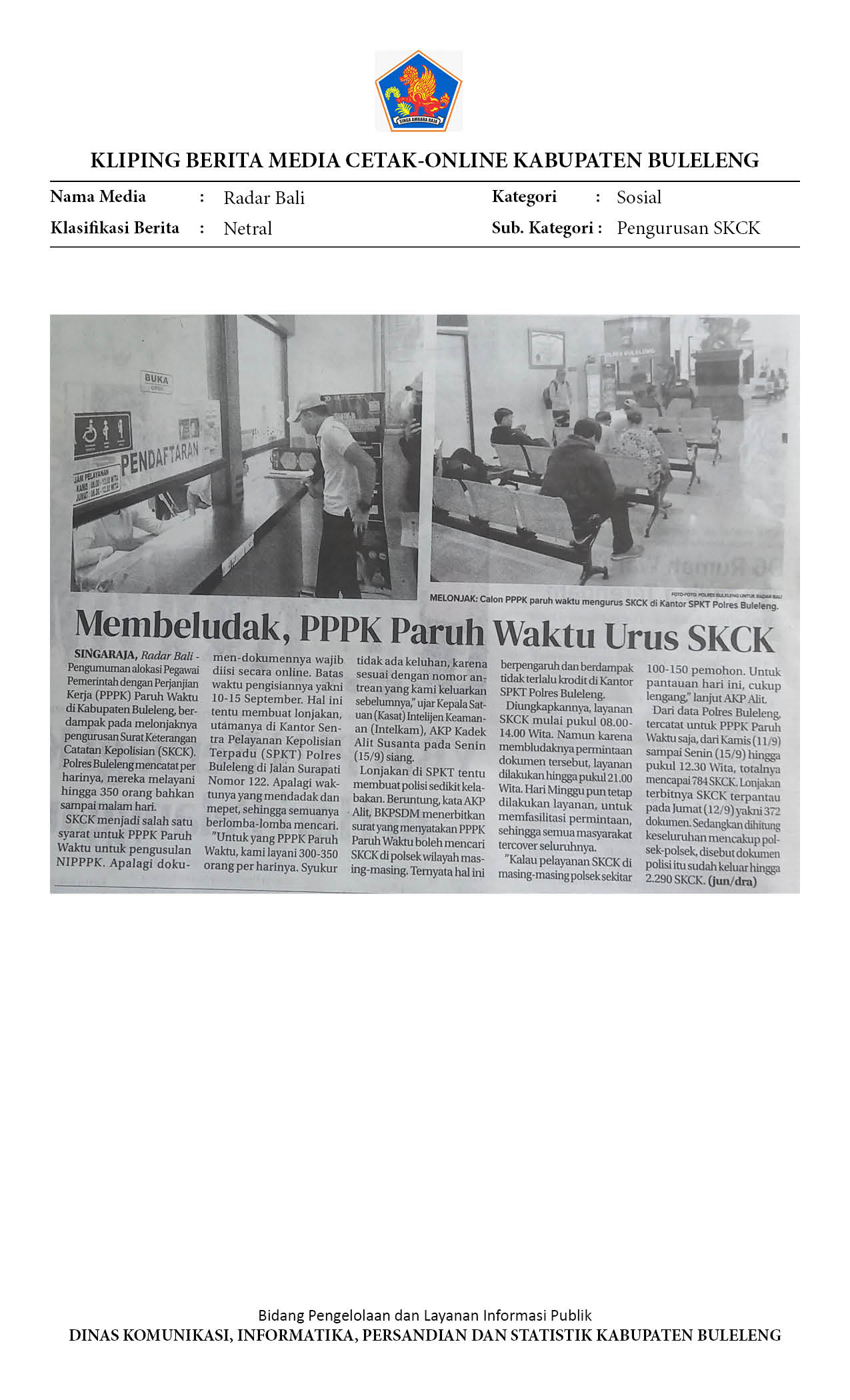 PPPK PARUH WAKTU URUS BERKAS, PENGURUSAN SKCK DI POLRES BULELENG MELONJAK