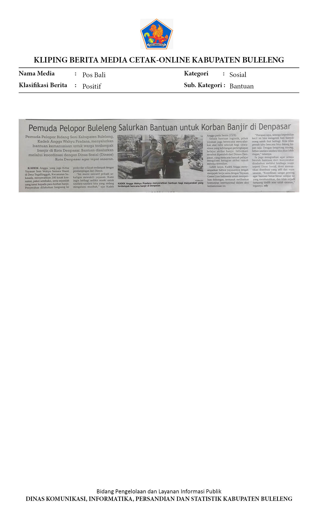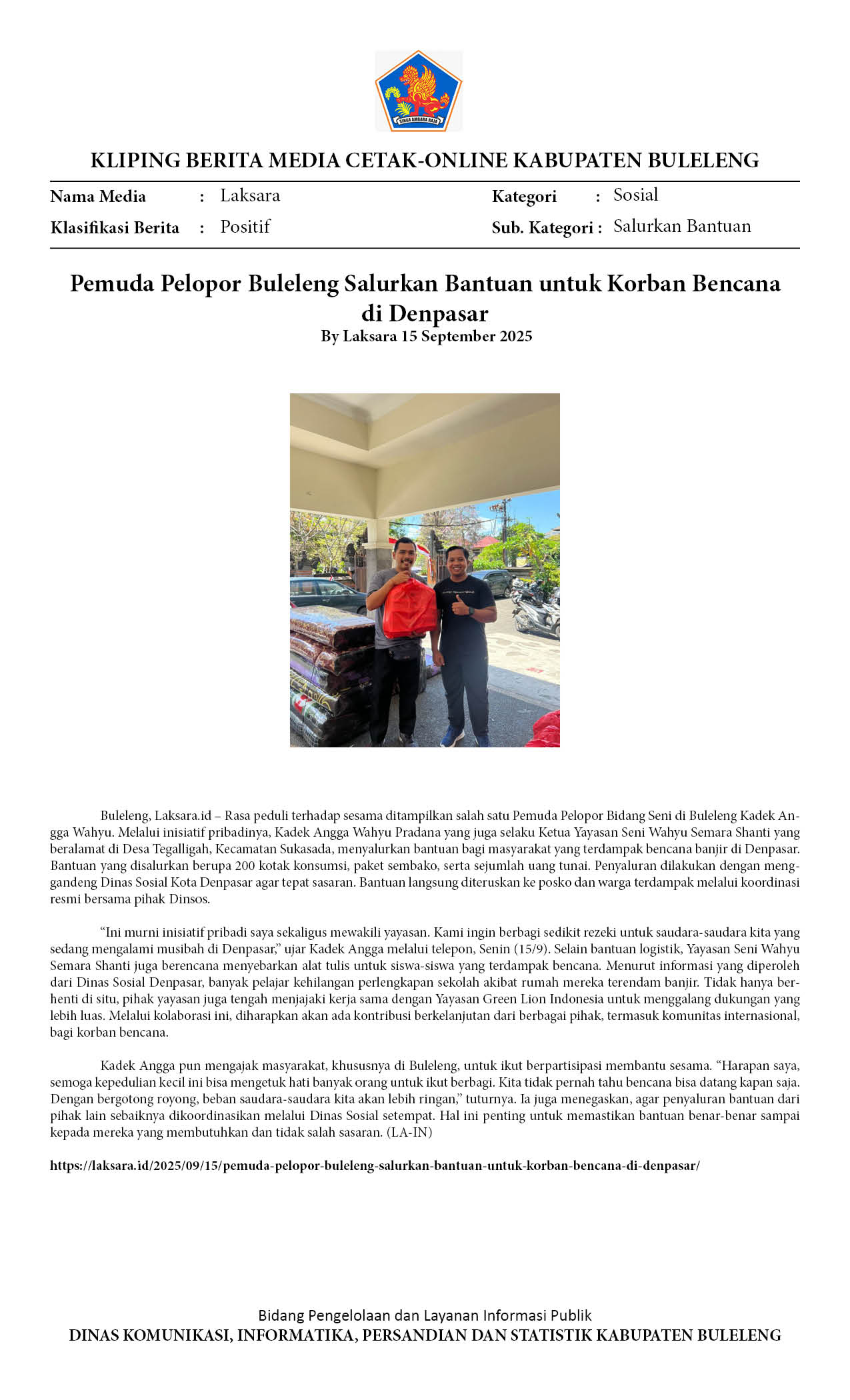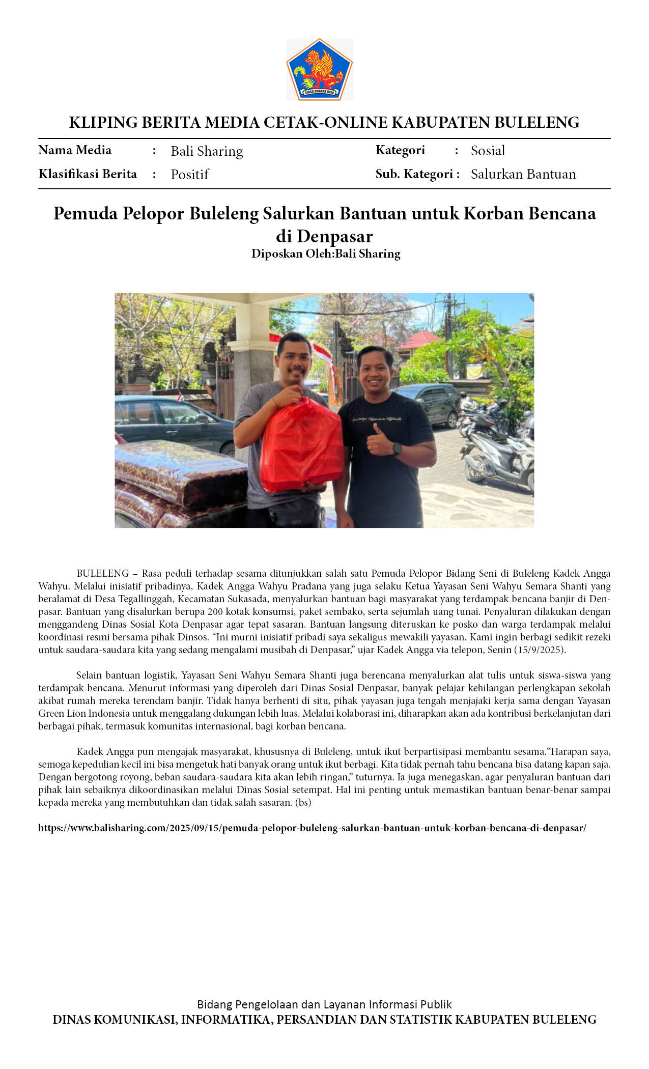PEDULI KASIH, PEMUDA PELOPOR BULELENG SALURKAN BANTUAN BENCANA BANJIR
