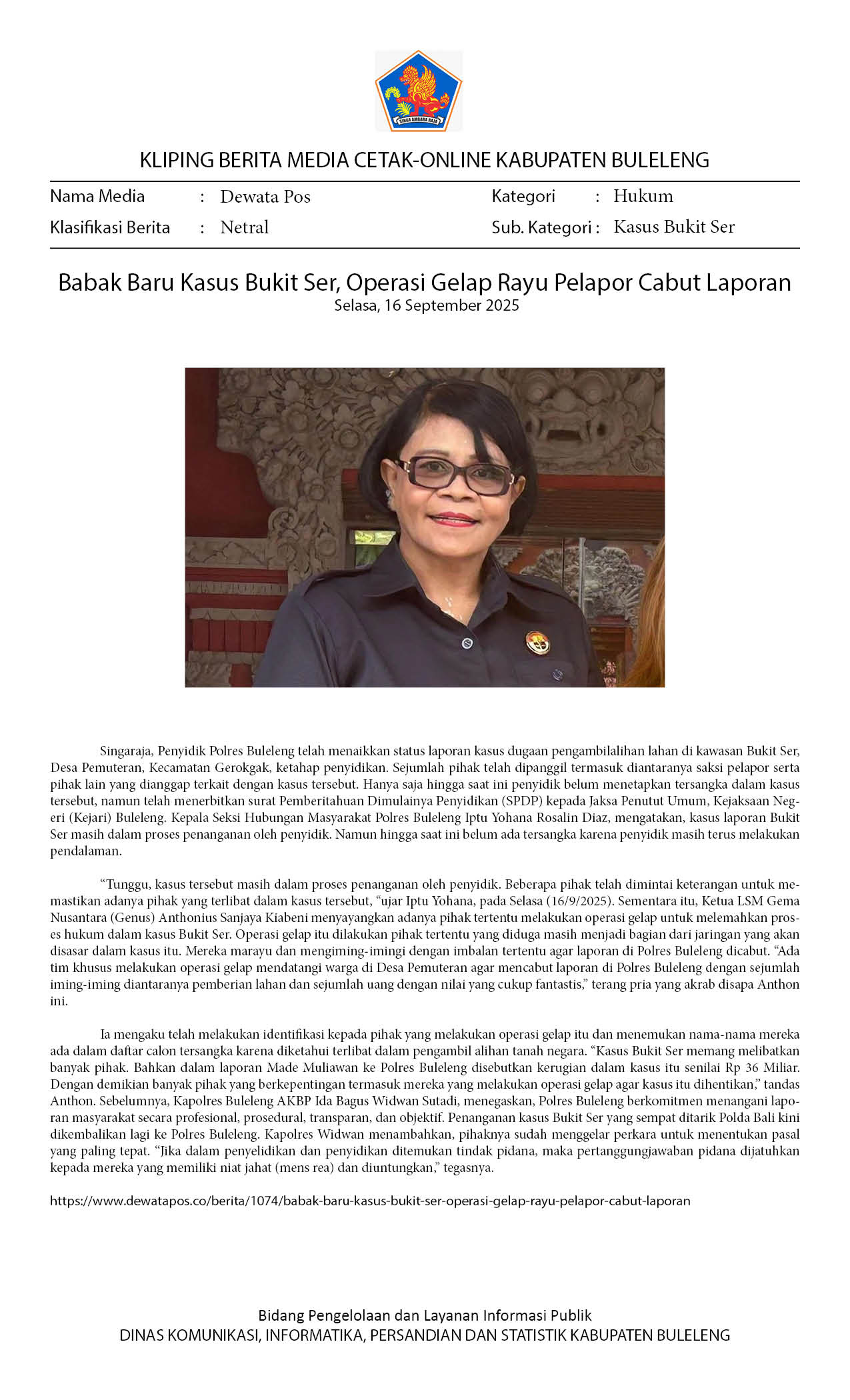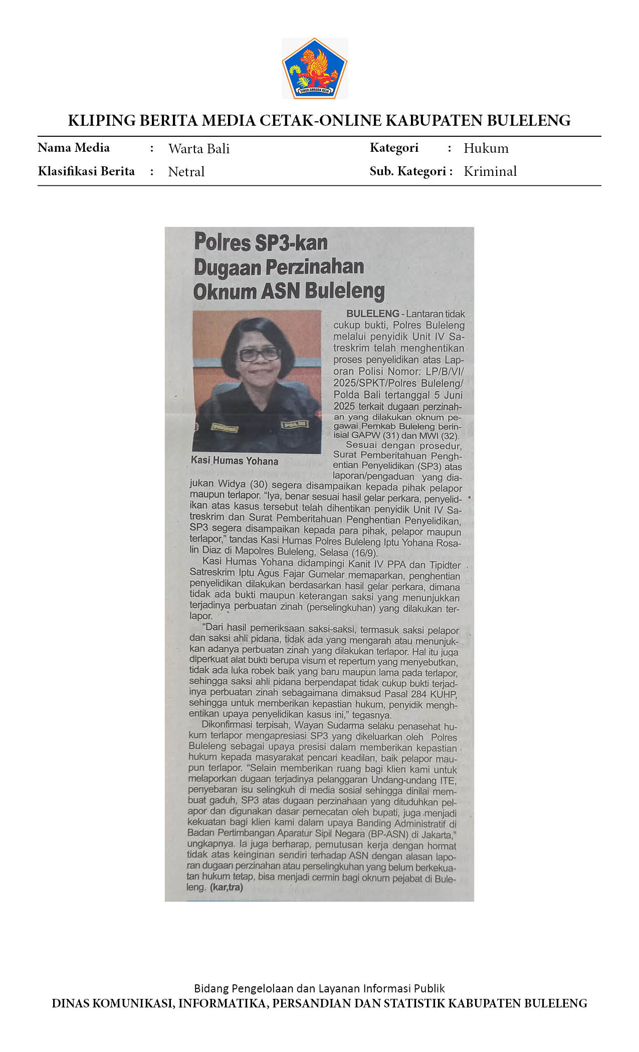 POLRES SP3-KAN DUGAAN PERZINAHAN OKNUM ASN BULELENG